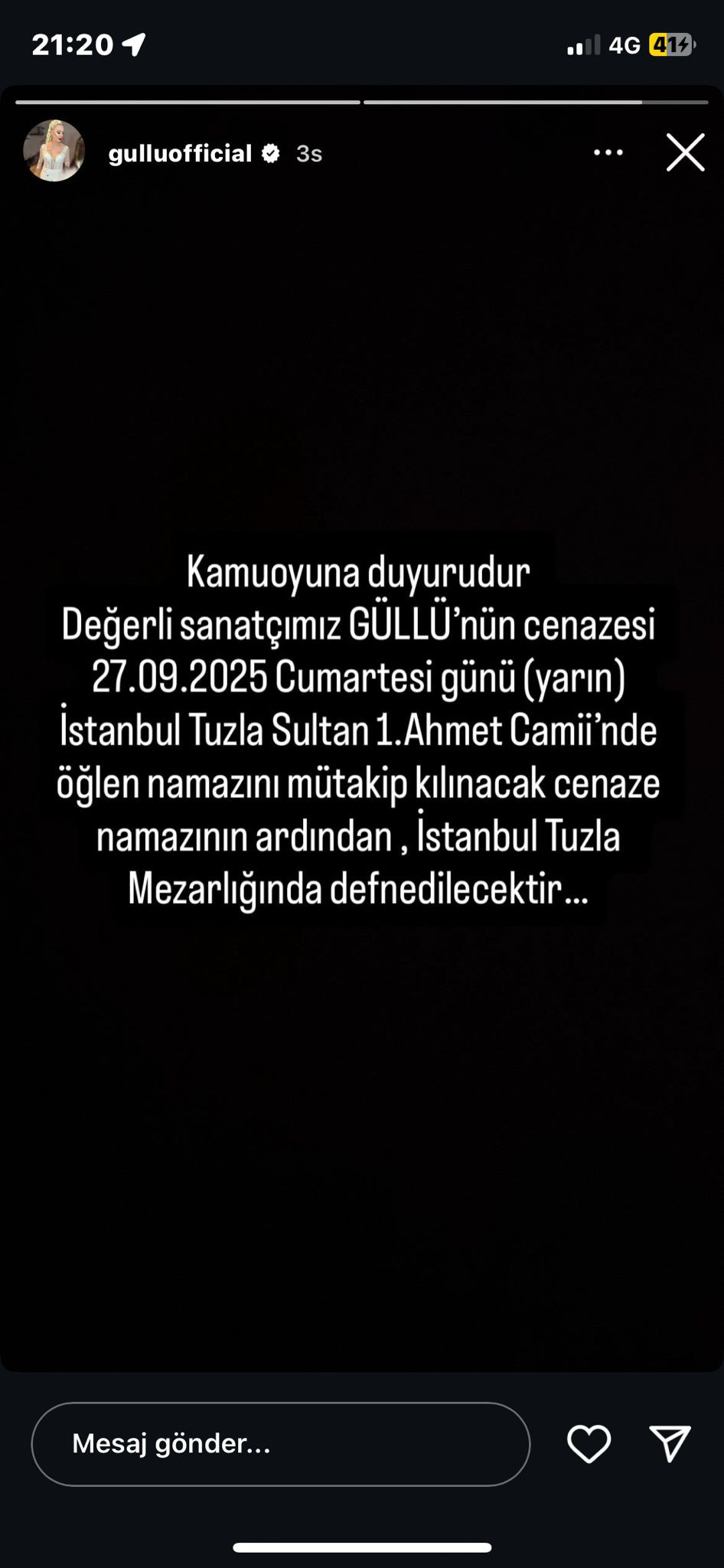 Sağlık ekiplerinin yaptığı tüm müdahalelere rağmen arabeskin sevilen ismi Güllü’nün hayatını kaybettiği öğrenildi. Güllü’nün cenazesi, Yalova Eğitim ve Araştırma Hastanesi morguna kaldırıldı.