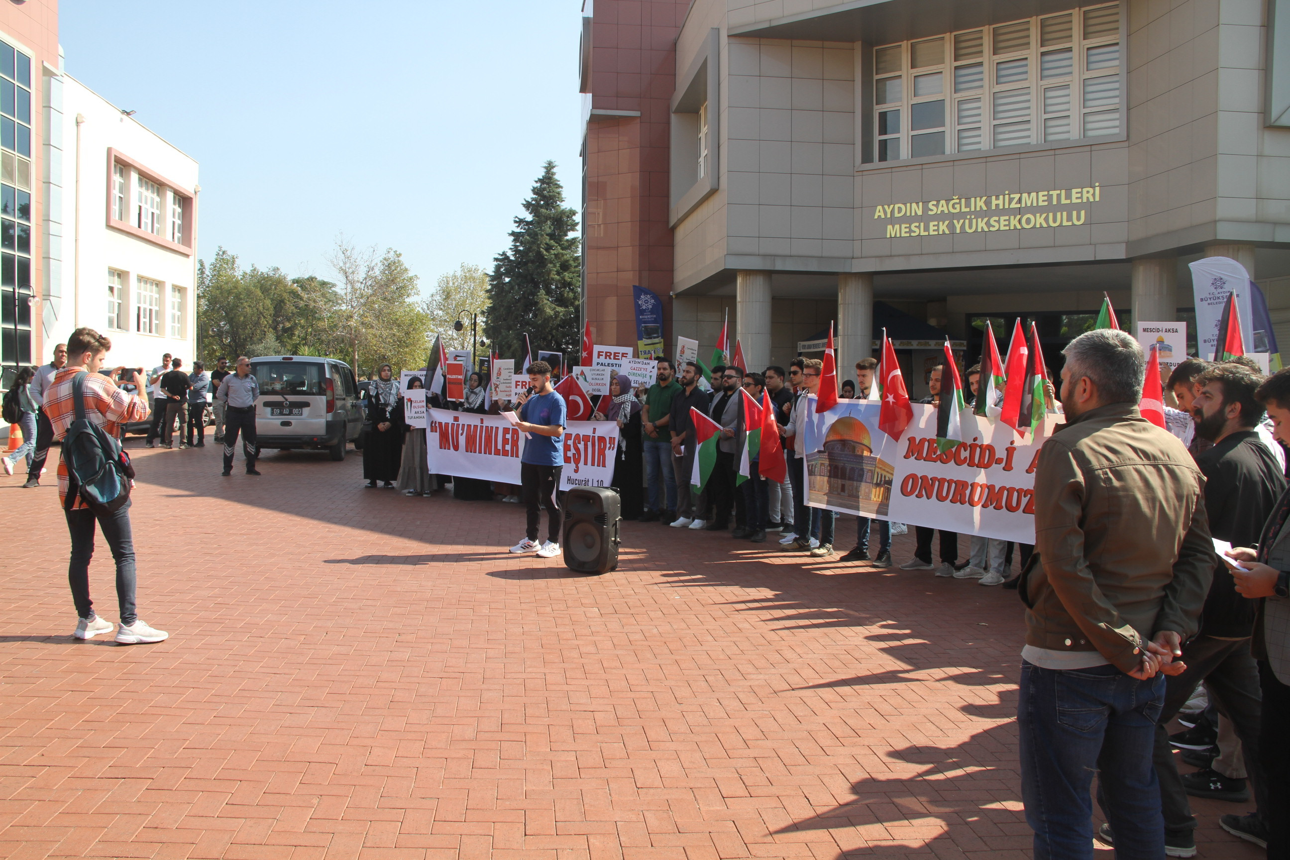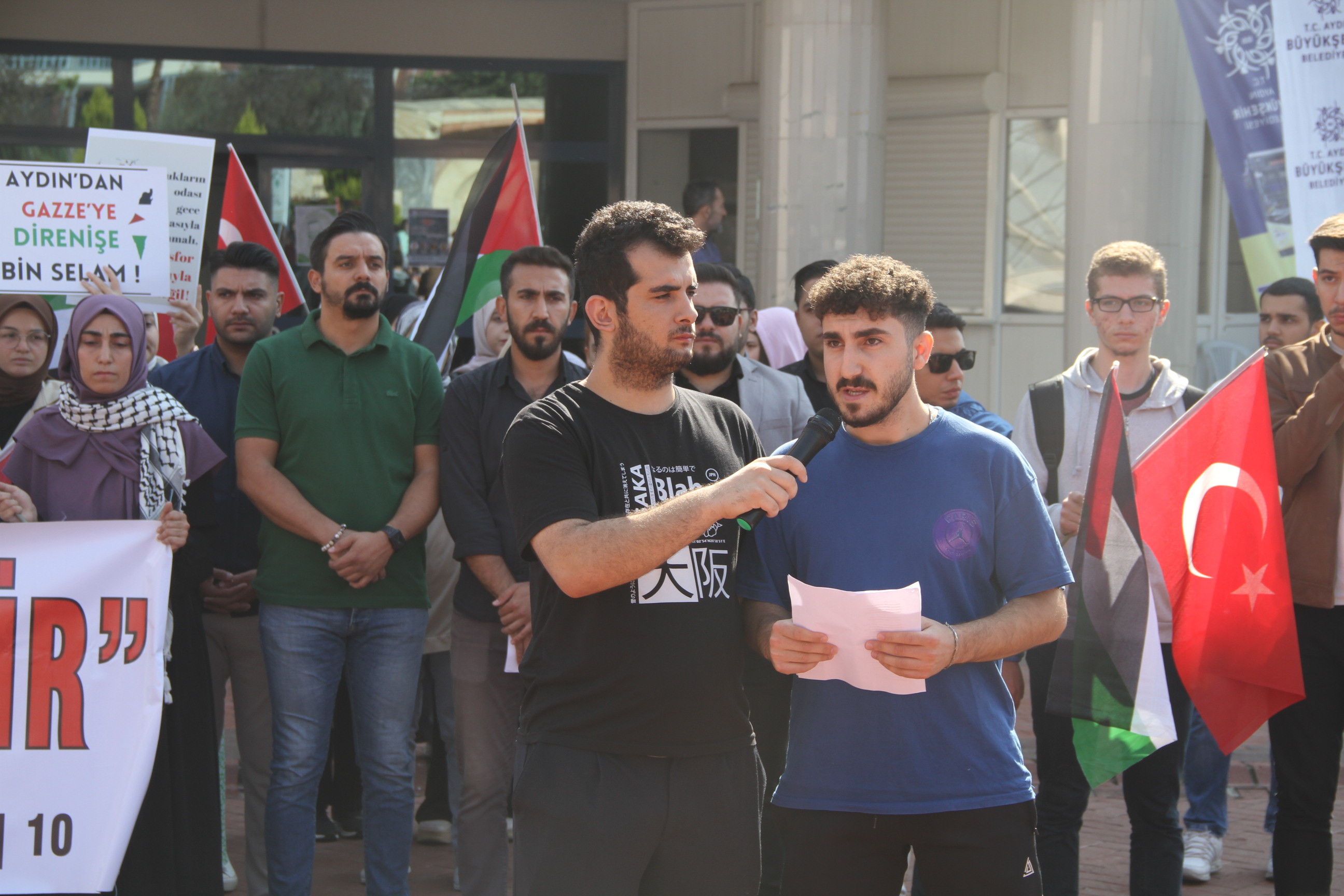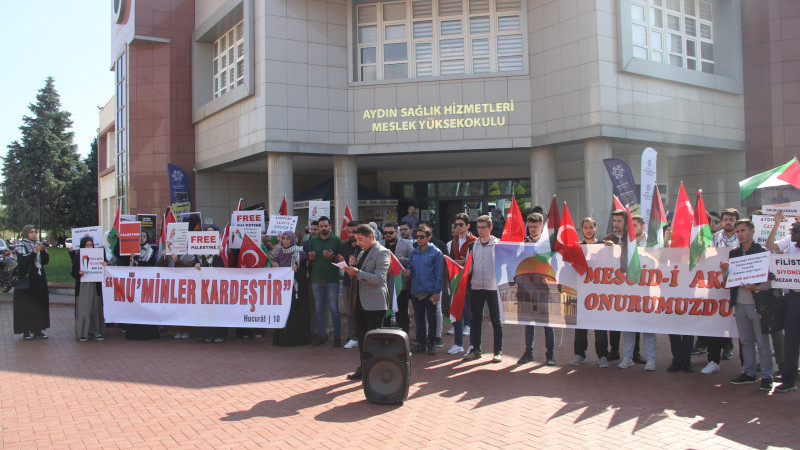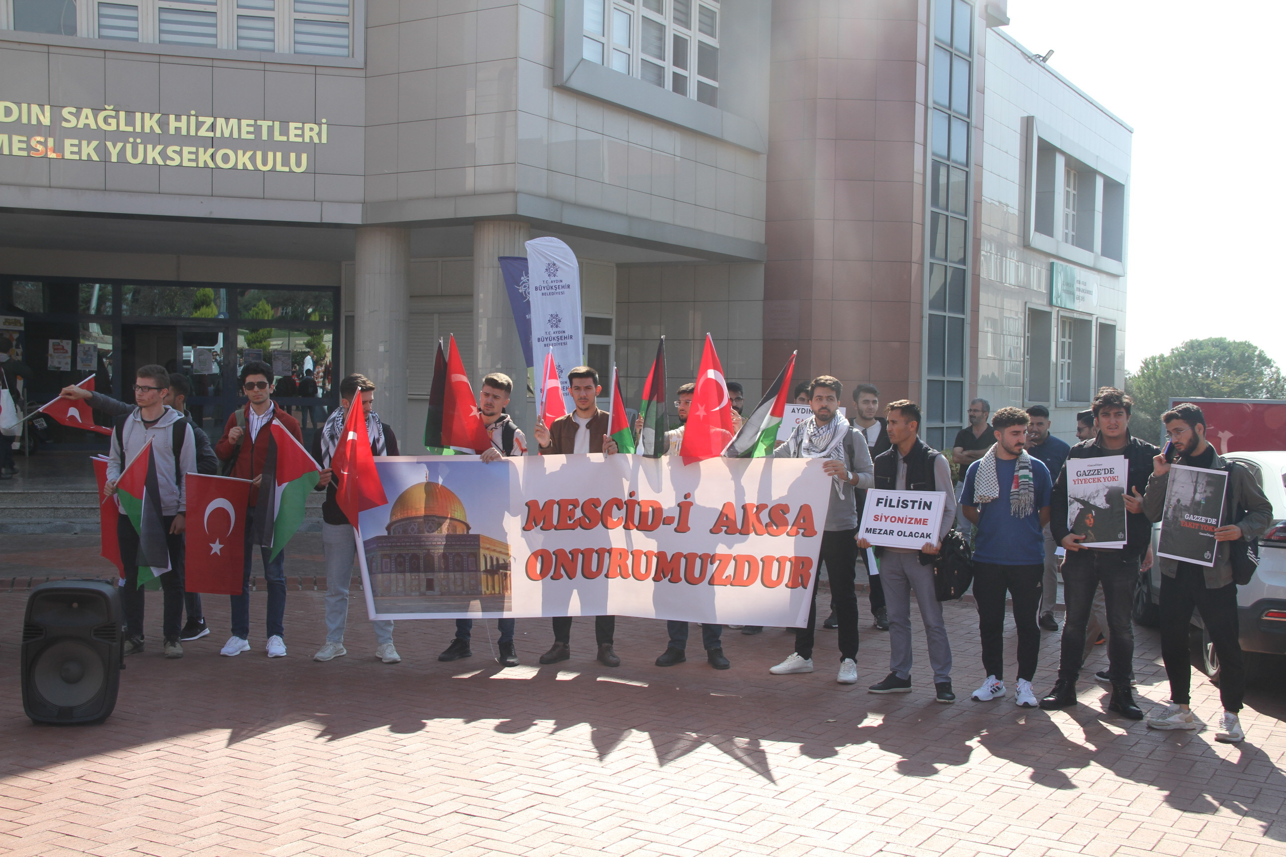 Adnan Menderes Üniversitesi gençleri, İsrail'in Gazze'ye yönelik saldırılarına karşı protesto düzenledi. Sivil toplum ve siyasi temsilciler de destek verdi. Gençler, Gazze'deki acılara dikkat çekerek protesto düzenlendi.