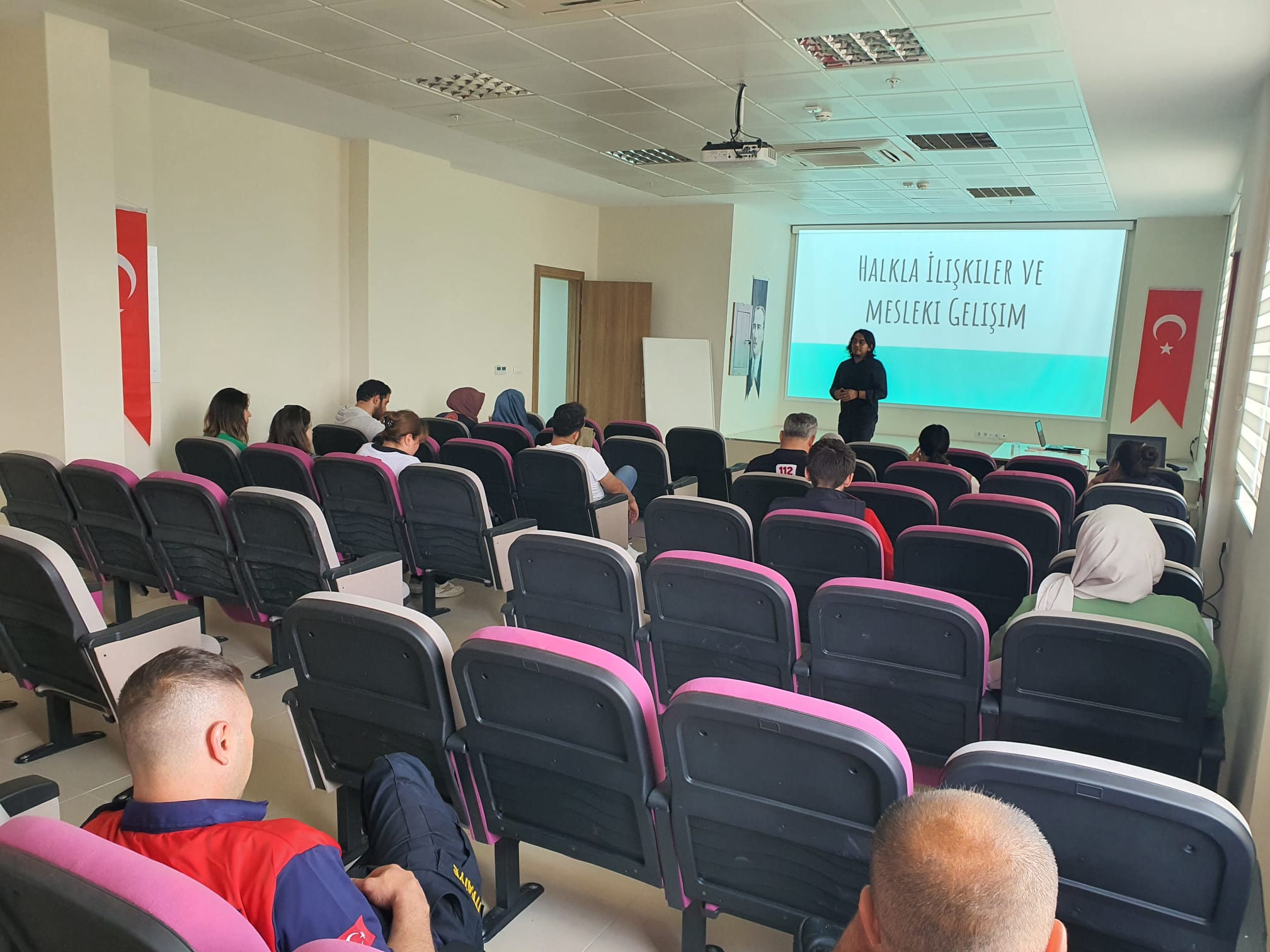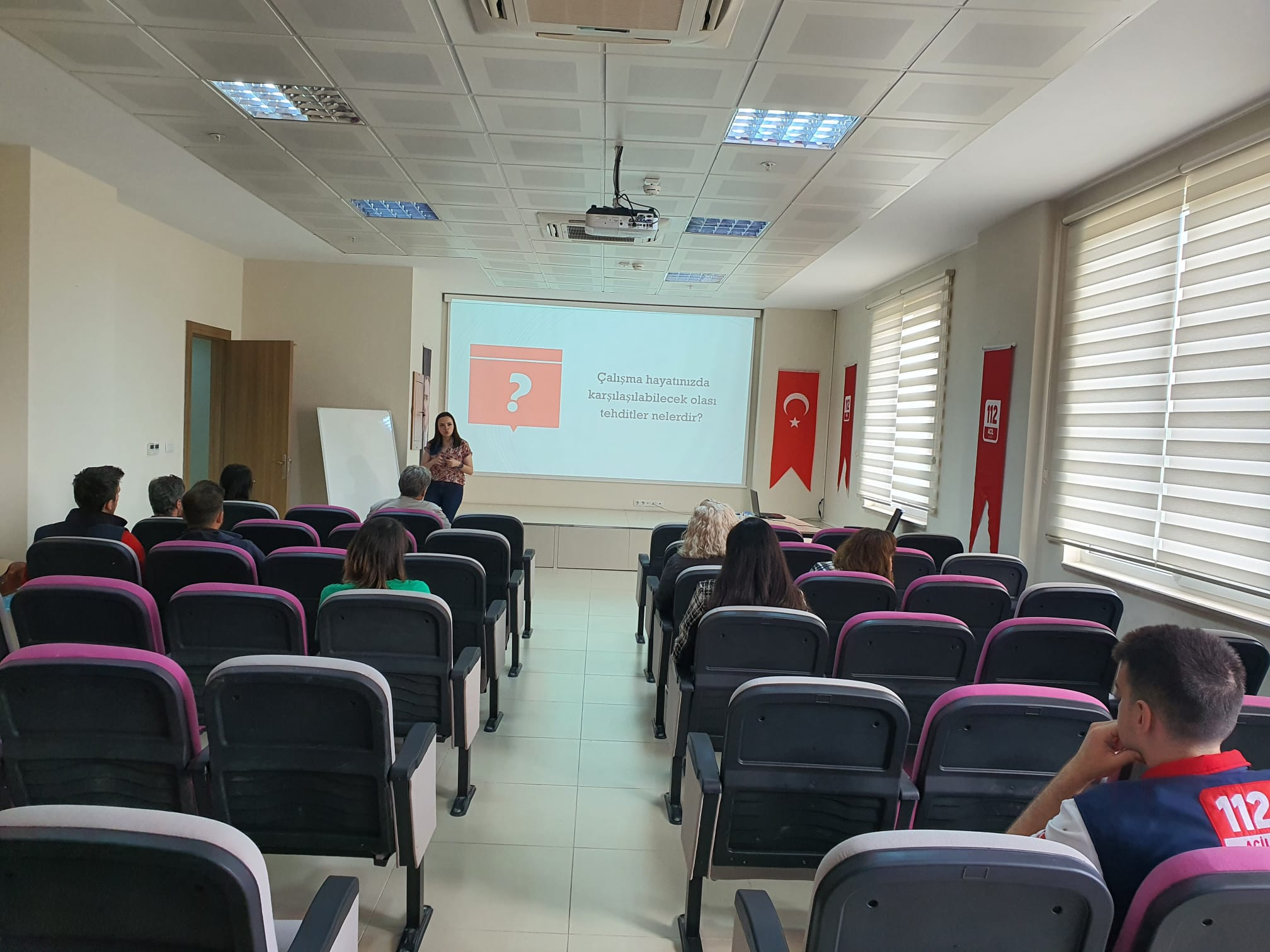 Acil Çağrı Hizmetlerinin etkili, verimli, kesintisiz ve koordinasyon içerisinde yürütülebilmesini sağlamak adına Üniversitemiz akademisyenlerinden Prof. Dr. Hacer Harlak ve Arş. Gör. Begüm Açık Yavuz “İnsan İlişkileri ve İletişim Teknikleri, Doç. Dr. Tuncay Saygın “Etkili ve Güzel Konuşma Teknikleri”, Doç. Dr. Cennet Şafak Öztürk ve Arş. Gör. Merve Demir “Problem Belirleme ve Çözme Teknikleri- Stres Yönetimi”, Dr. Öğr. Üyesi Hatice Öner “Mağdur Psikolojisi”, Dr. Öğr. Üyesi Fulya Torun “Bilgi Gizliliği ve Güvenliği”, Dr. Öğr. Üyesi Büşra Şahin “İlk ve Acil Yardım Eğitimi”, Öğr. Gör. Sait Paşa “Temel Hukuk”, Öğr. Gör. Mehmet Atik “Grup Çalışması”, Öğr. Gör. Berkin Hanaylı “Çağrı Alma, Analiz ve İşlem Basamakları”, Arş. Gör. Kudret Akın Toker “Halkla İlişkiler ve Mesleki Gelişim” konularında katılımcılara bilgi verildi.
