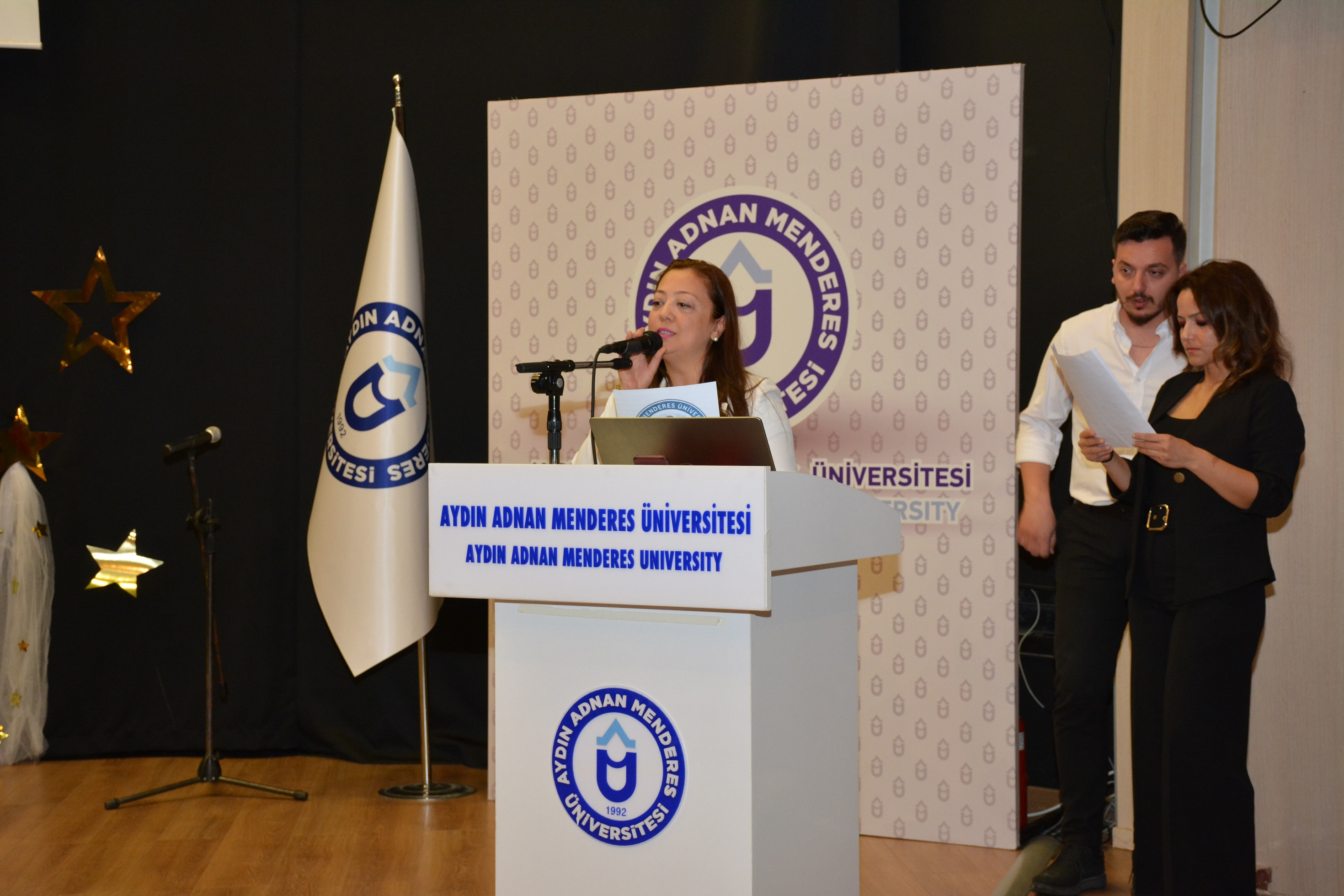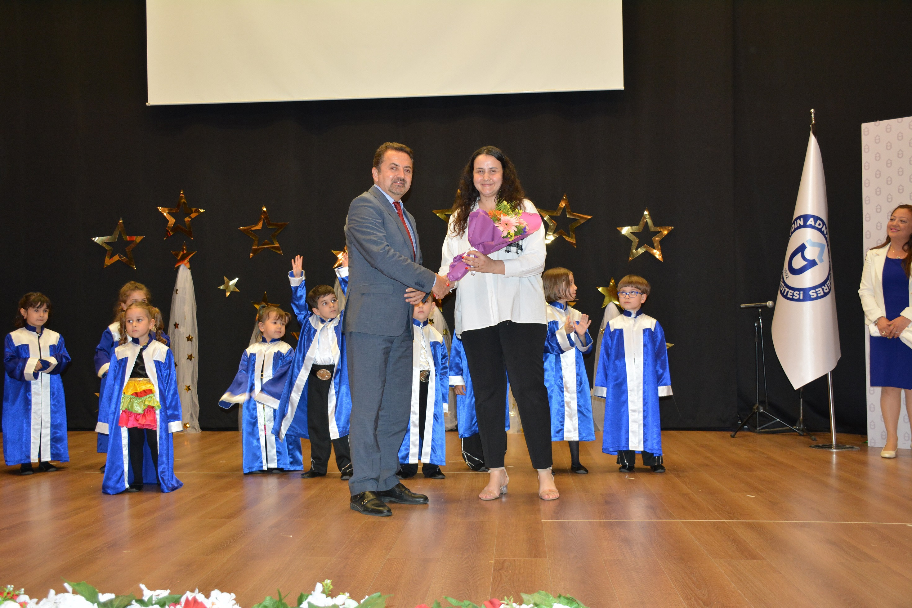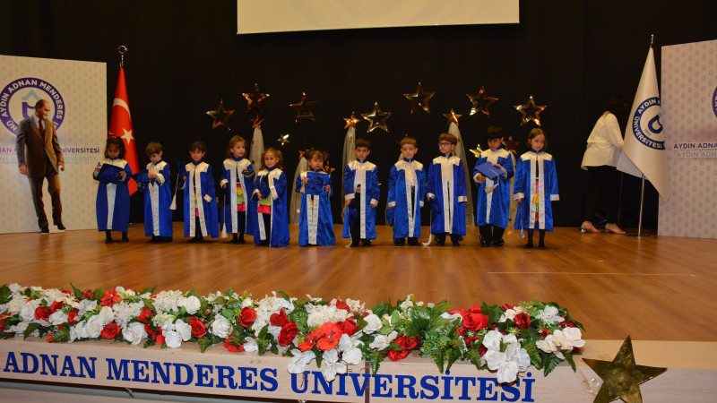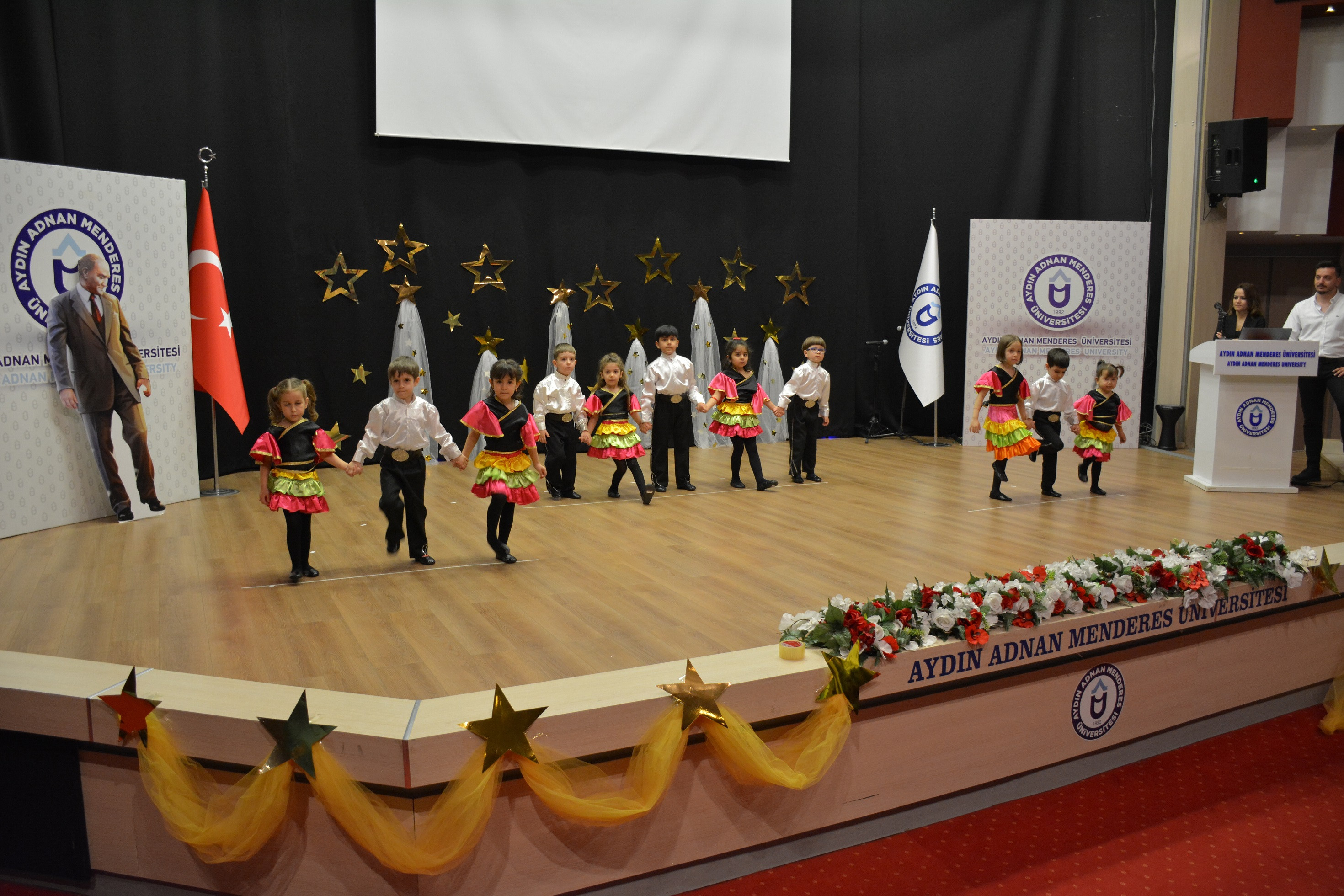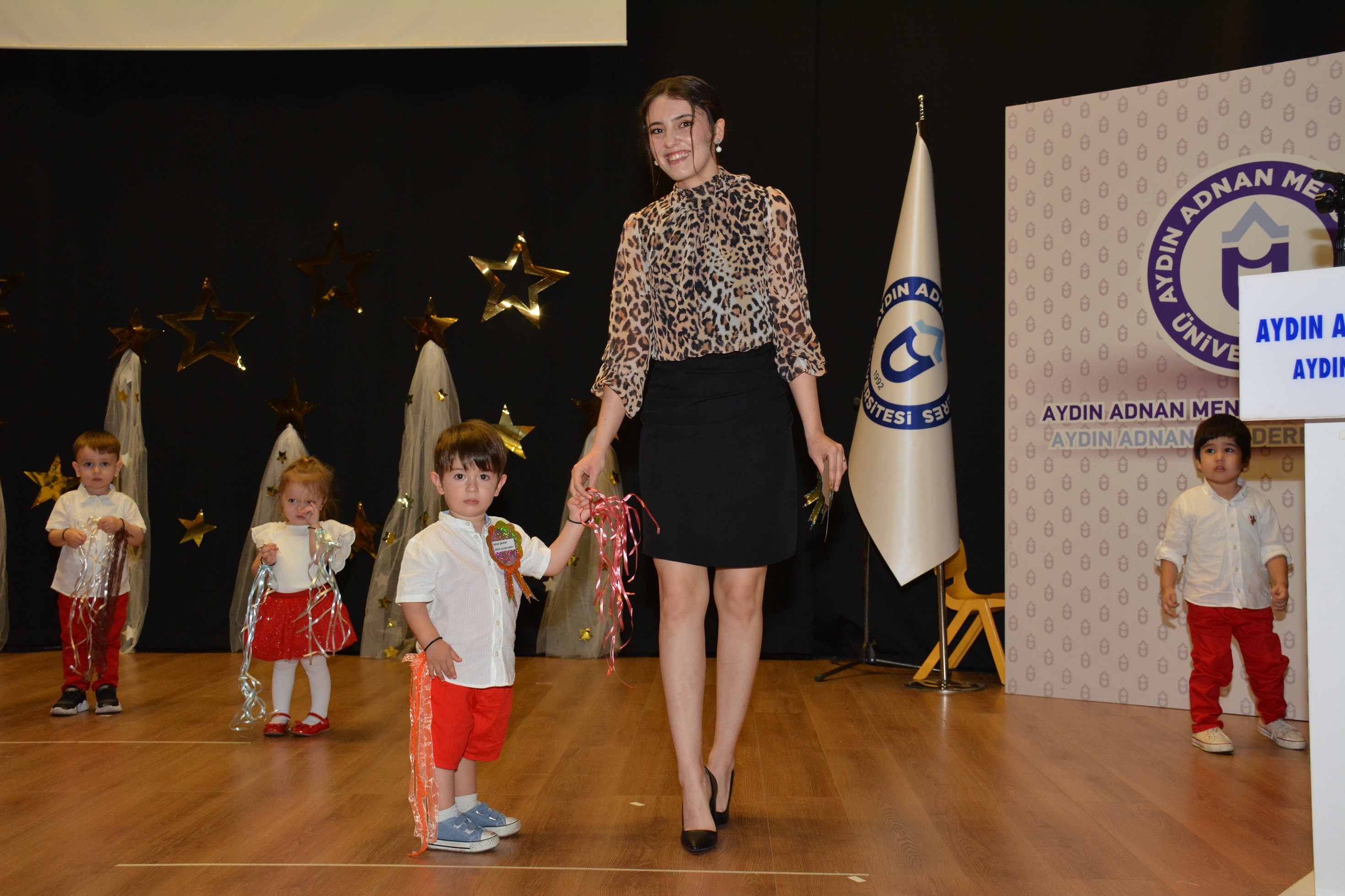 Saygı Duruşu ve İstiklal Marşı ile başlayan programda, günün anlam ve önemini belirten konuşmayı Üniversitemiz Anaokulu Müdürü-Eğitim Koordinatörü Öğr. Gör. Sibel Güldalı Dereli yaptı. Öğr. Gör. Dereli konuşmasında, “Bu yıl eylül ayında küçük bir aile olarak başladığımız bu yolculuğu öğrenci katılımının artmasıyla büyük bir aile olarak tamamlamış olmanın haklı gururunu yaşıyoruz. Sevgili anne ve babalar, çocuğunuzu bizlere büyük heyecanla emanet ettiniz, çocuklarımızın yüreklerinde de aynı sevinç ve heyecan vardı. Bizler ADÜ Anaokulu olarak emanet ettiğiniz değerli varlıklara gücümüz yettiğince önce sevgi ve ilgimizi daha sonra bilgimizi sunduk. Mezun olan öğrencilerimiz için ayrılık vaktidir. Eğitim yılı içerisinde yardım ve desteklerini esirgemeyen ve çocukların eğitimine katkıda bulunan tüm anne ve babalara teşekkür ederim.” dedi.