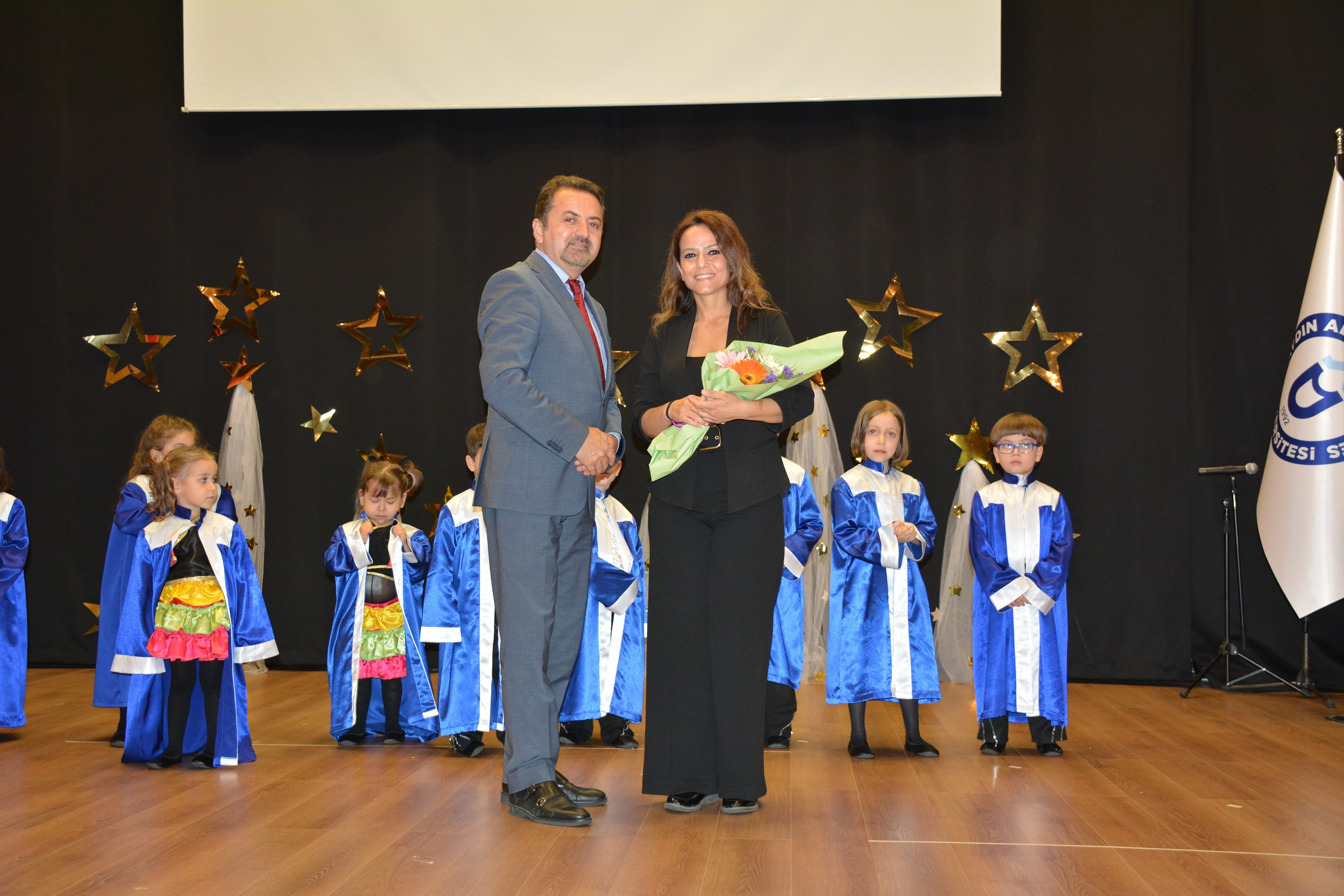 Öğrencilerin yıl boyunca sosyal, dil ve psikomotor gelişim alanlarında kazandıkları becerilerin sergilendiği törene, Üniversitemiz Genel Sekreter V. Dr. Öğr. Üyesi Ahmet Fatih Hacıyusufoğlu, akademik ve idari personel ile veliler katıldı.
