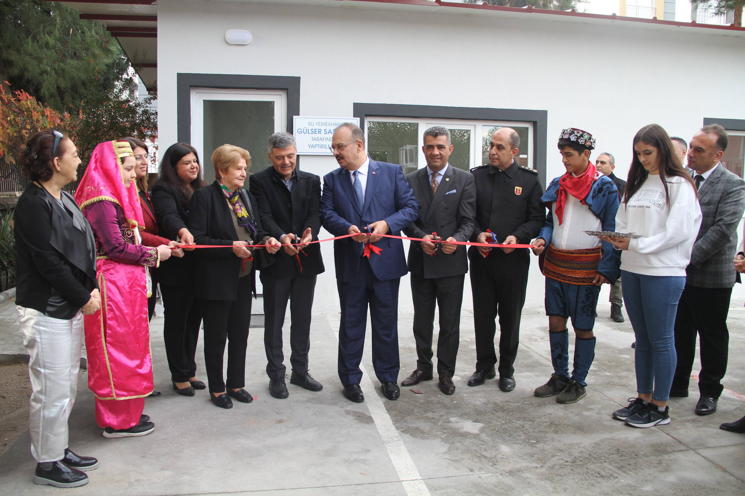 Etkinlik kapsamında, okulda verilen eğitimlerin kalitesini artırmak ve öğrencilere daha iyi bir öğrenme ortamı sunmak amacıyla hizmete giren yeni yemekhane de açıldı. Açılış törenine, Sayın Vali Canbolat, Okul Müdürü Huriye Oktay ve İl Milli Eğitim Müdürü Süleyman Ekinci katılım gösterdi. Törende, Vali Canbolat, okul müdürü ve il milli eğitim müdürü ile birlikte, açılış kurdelesini keserek yeni yemekhanenin resmi açılışını gerçekleştirdi.