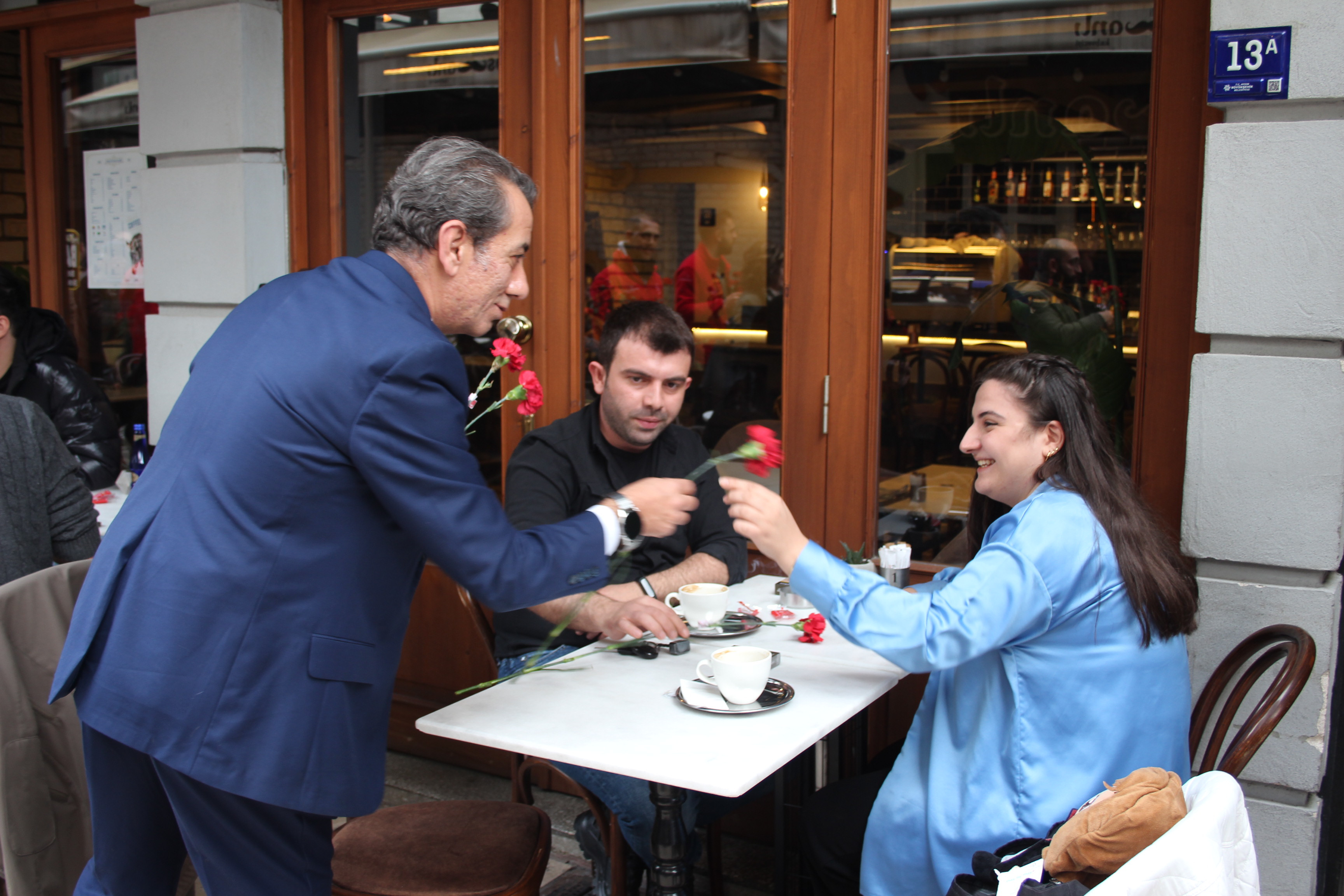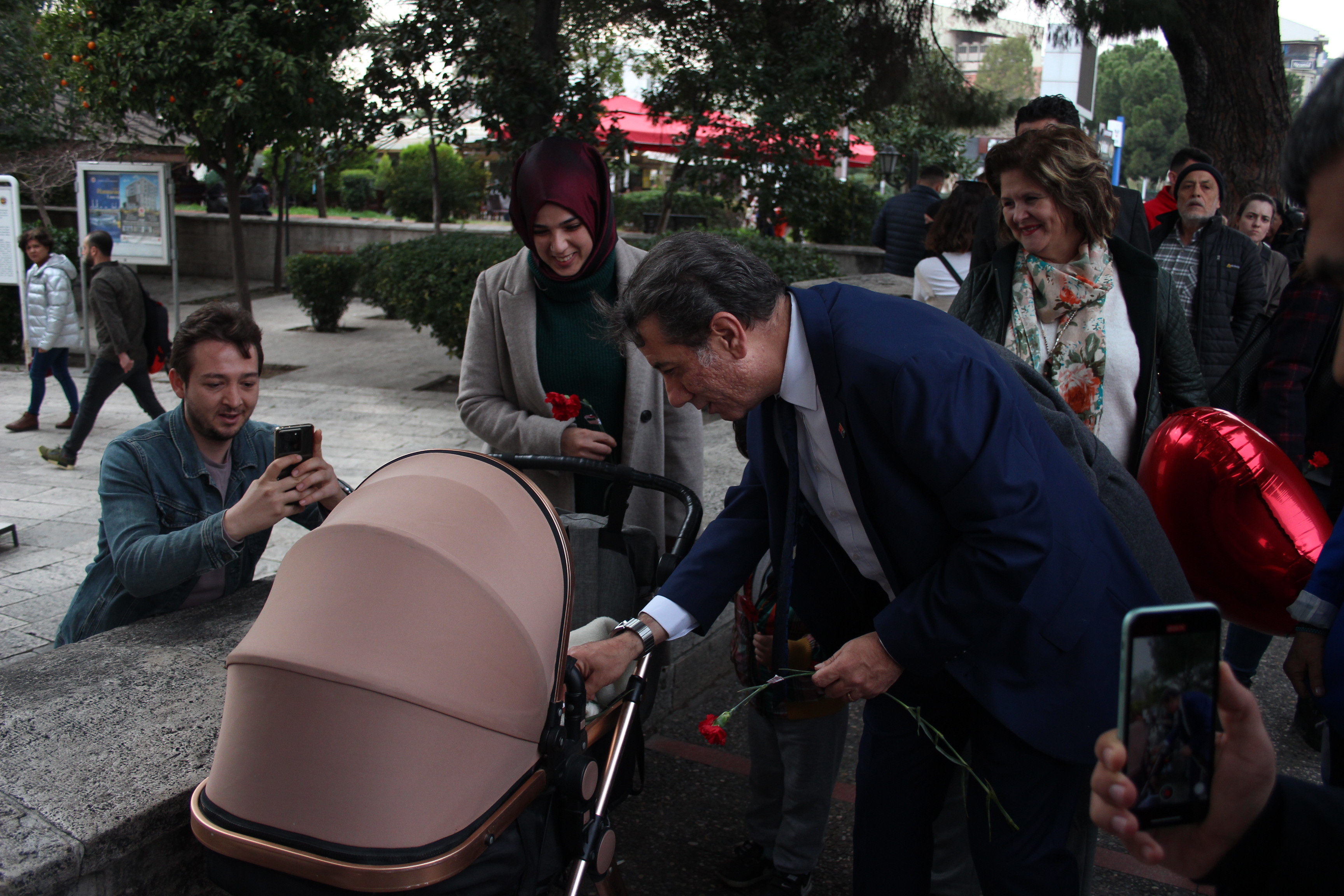 Cumhuriyet Halk Partisi Efeler Belediye Başkan Adayı Anıl Yetişkin, 14 Şubat Sevgililer Günü'nde sevgi dolu bir jestle hareket ederek eşiyle birlikte Efeler ilçesindeki vatandaşlara çiçek takdim etti.