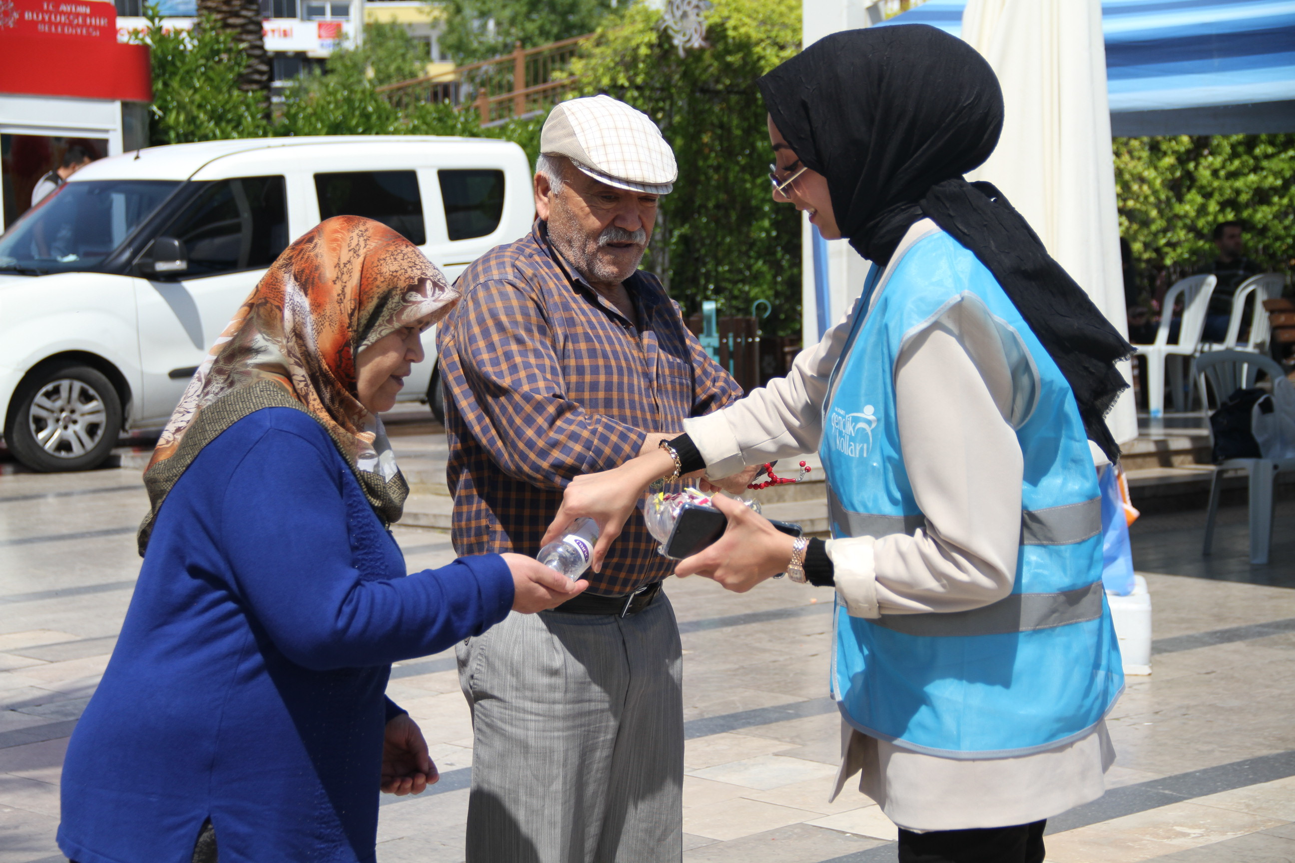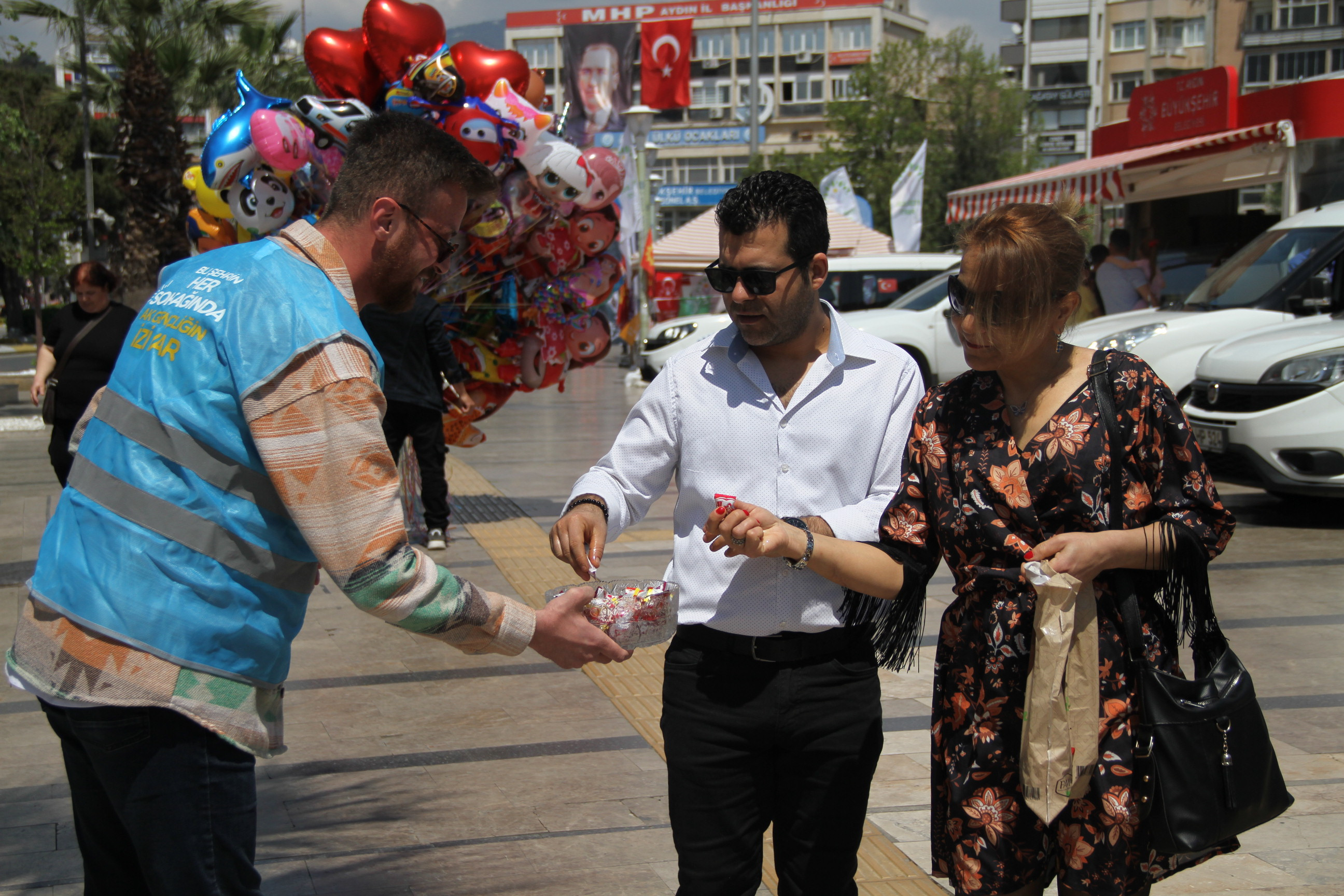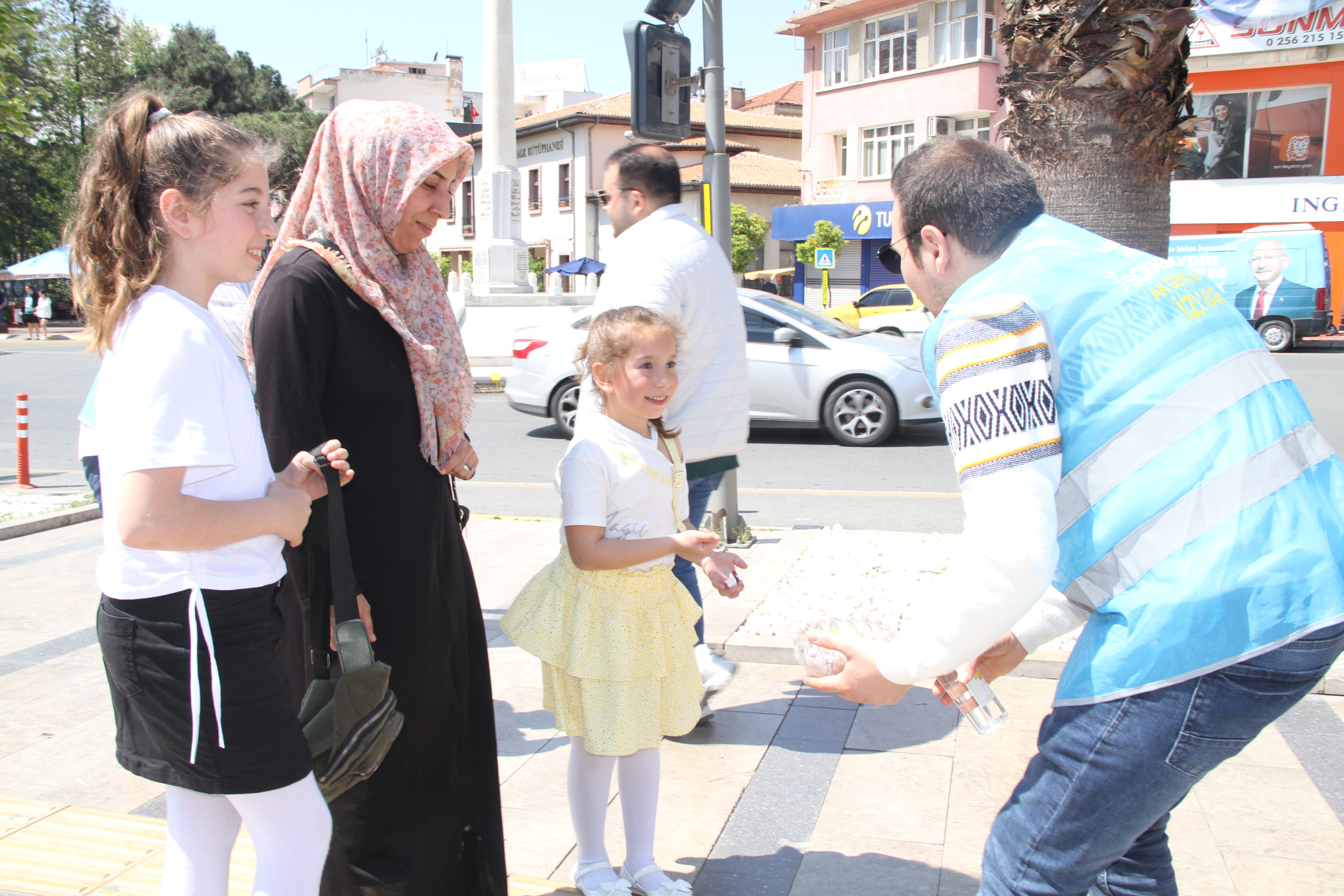 AK Parti Aydın İl Gençlik Kolları Kent Meydanı'nda stant çalışmalarında vatandaşın gönlüne giriyor.