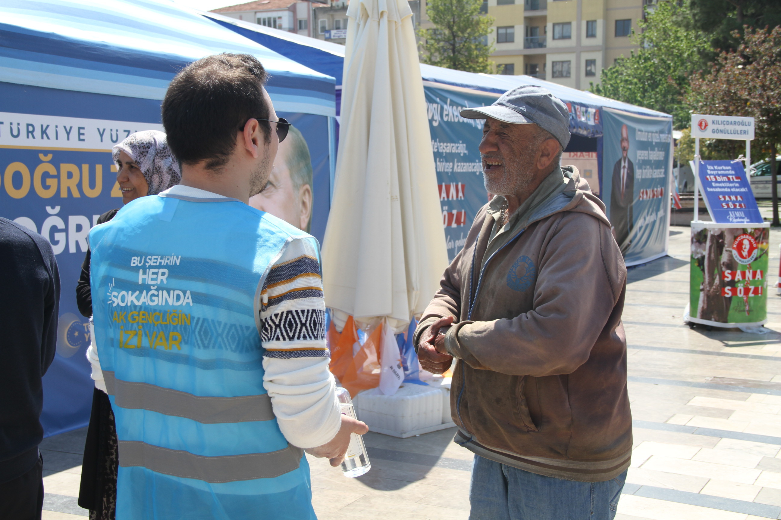 AK Gençlik stantı hergün erken saatlerde açarak vatandaşa broşur ve ikramlarda bulunuyor. Vatandaşlara temas ediyor. Gençlik Kolları üyelerinin vatandaş ile sıcak samimi muhabbetleri dikkatlerden kaçmıyor. AK Gençliğin heyecanı vatandaşlarda olumlu bir izlenim olarak yansıyor. Gençlerin ve vatandaşların Cumhurbaşkanı Recep Tayyip Erdoğan'ı tekrar seçileceği ve Meclise en az 5 milletvekili hedefine ulaşacaklarına inançları tam.