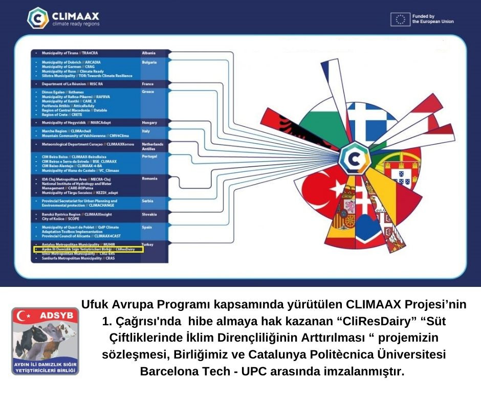 Aydın İli Damızlık Sığır Yetiştiricileri Birliği, iklim değişikliğine karşı süt çiftliklerinin direncini artırmayı hedefleyen “CliResDairy” projesiyle Avrupa Birliği’nden hibe aldı.