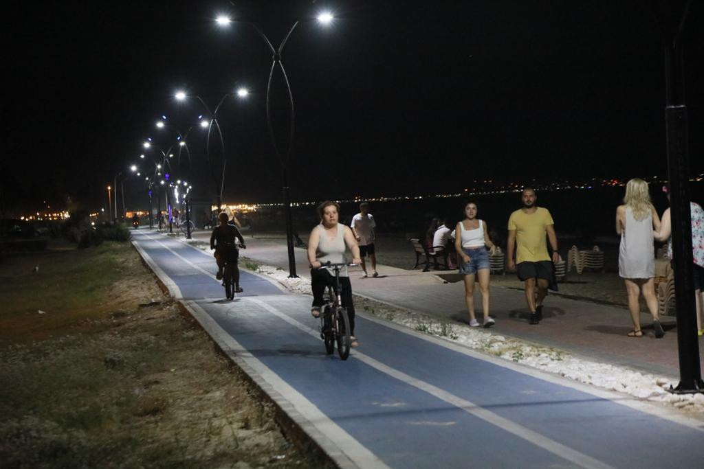 Aydın Büyükşehir Belediyesi, kent genelindeki sahillerde hayata geçirdiği yürüyüş ve bisiklet yollarıyla vatandaşların beğenisini ve takdirini kazanmaya devam ediyor. Özellikle Kuşadası Sevgi Plajı Yürüyüş ve Bisiklet Yolu, modern ve estetik yapısı, gece aydınlatması ve yaklaşık 20 kilometrelik parkuruyla her yaş grubundan vatandaşın ilgisini çekiyor. Geniş ve güvenli yapısı sayesinde 7'den 70'e herkesin kullanabileceği bu yollar, güzel sahil manzarası eşliğinde keyifli yürüyüşler ve bisiklet turları için ideal bir ortam sunuyor.
