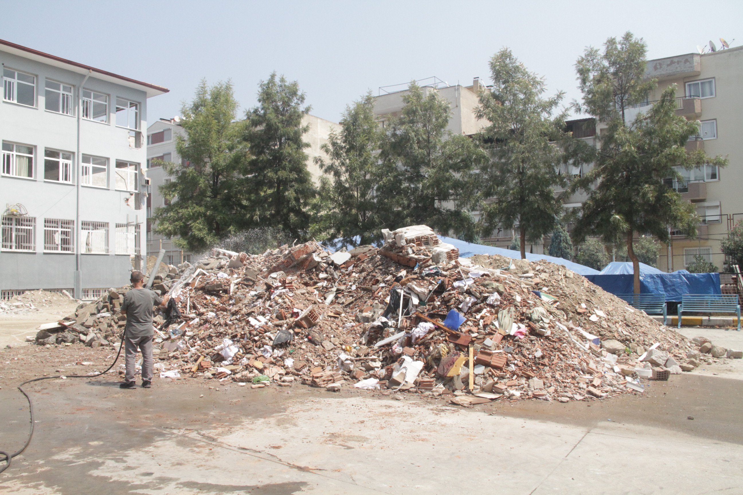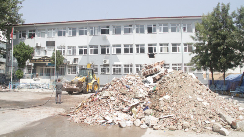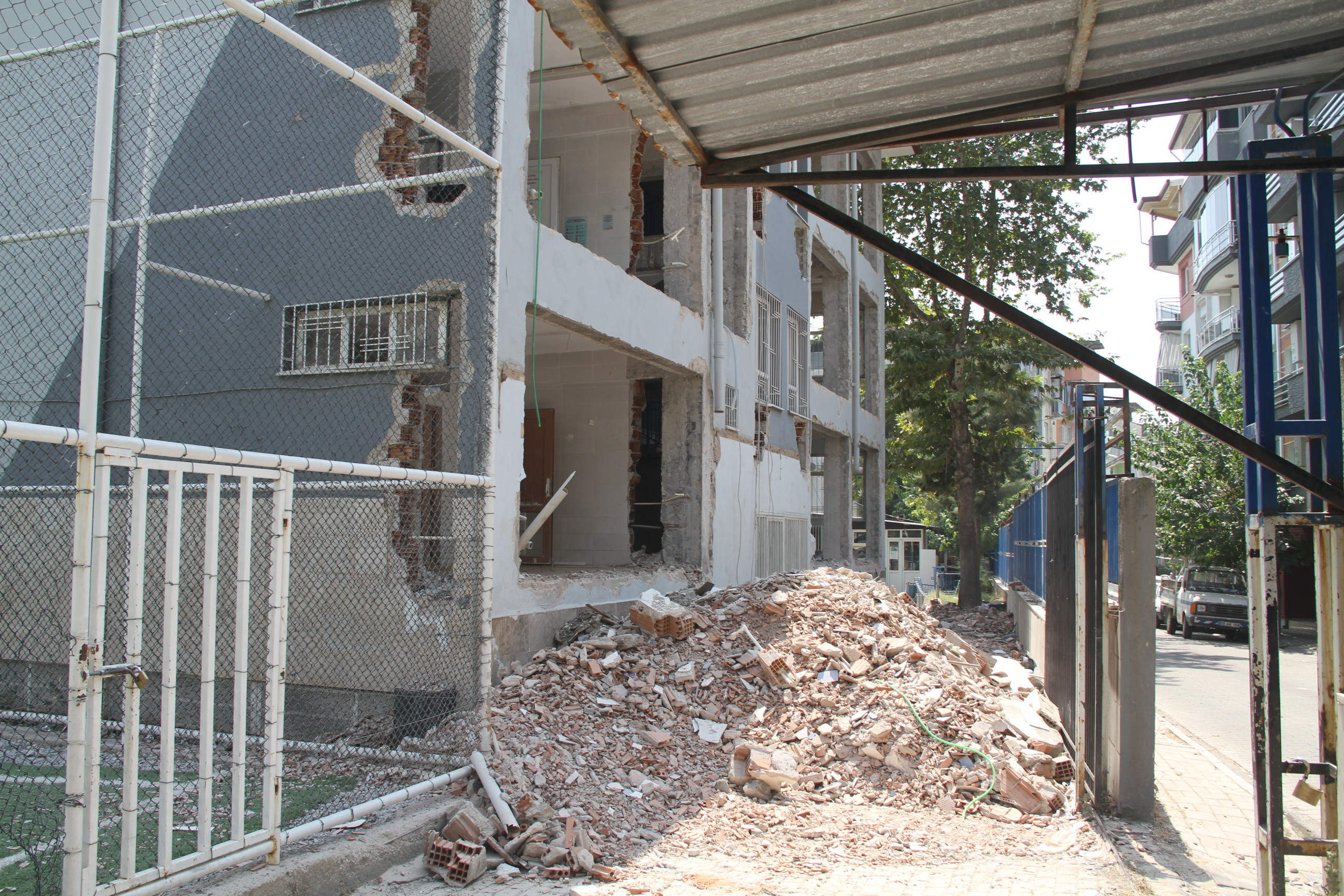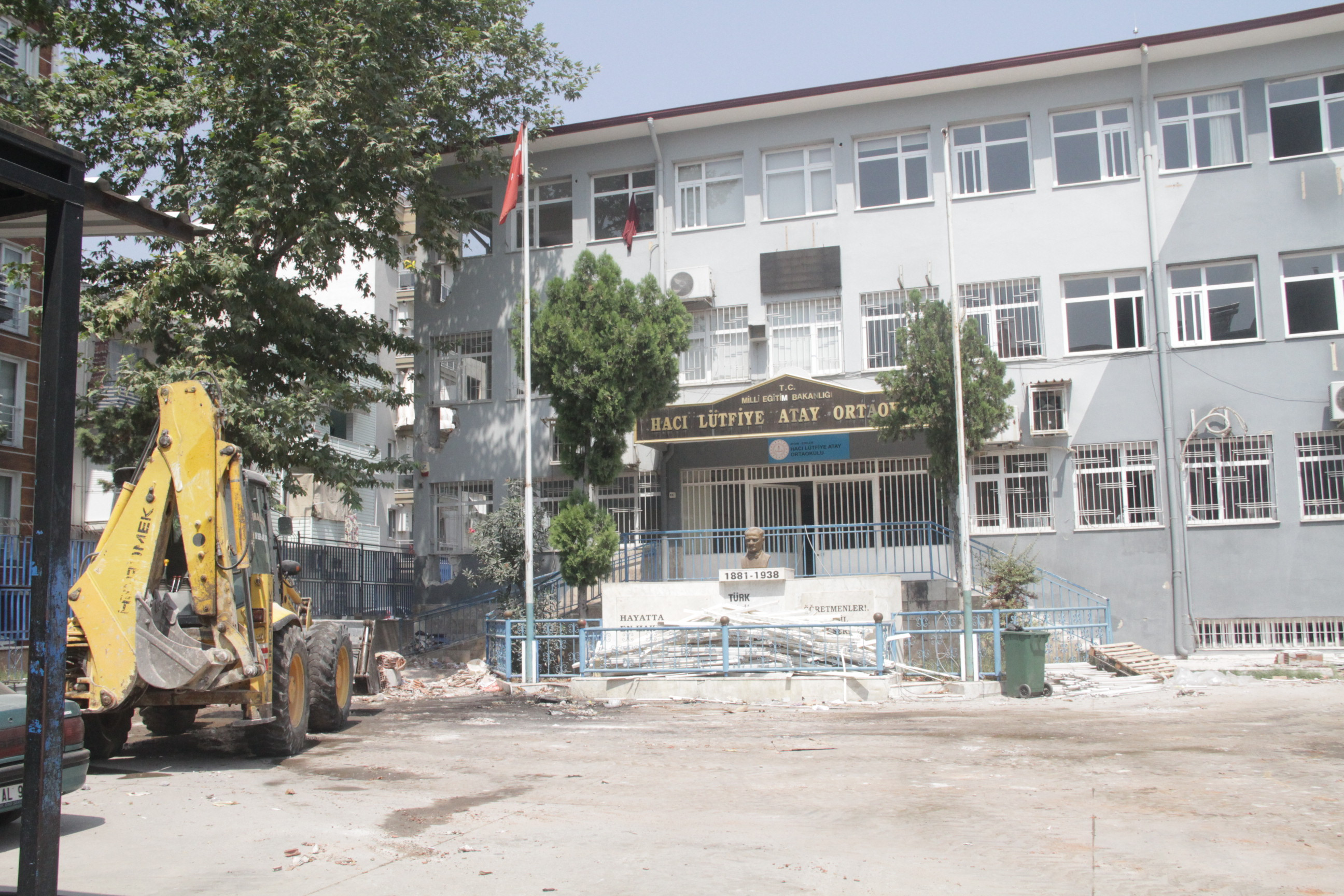 Aydın Efeler'deki Hacı Lütfiye Atay Ortaokulu'da Güçlendirme ve Yenileme Çalışmaları Yapılmaktadır.
