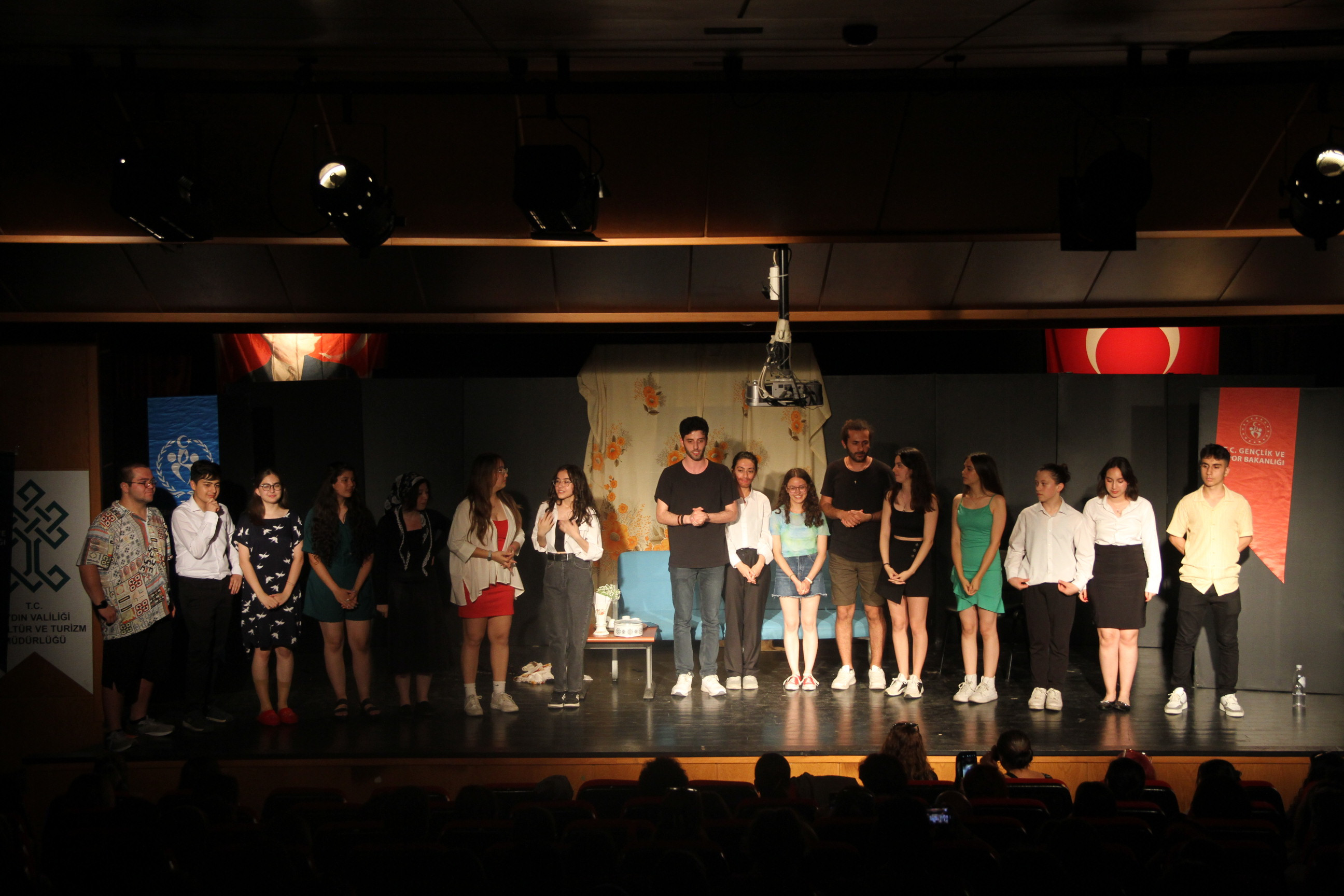 Aydın Gençlik Spor Müdürlüğüne bağlı Aydın Gençlik Merkezi, sene sonuna yaklaşırken gençleri unutulmaz bir tiyatro deneyimiyle buluşturmaya devam ediyor. 20 Haziran 2023 Salı akşamı Aydın Kültür Merkezi Hidayet Sayın Sahnesi Alt Salonu'nda gerçekleşen ücretsiz tiyatro etkinliği, gençler arasında büyük ilgi ve beğeni topladı.