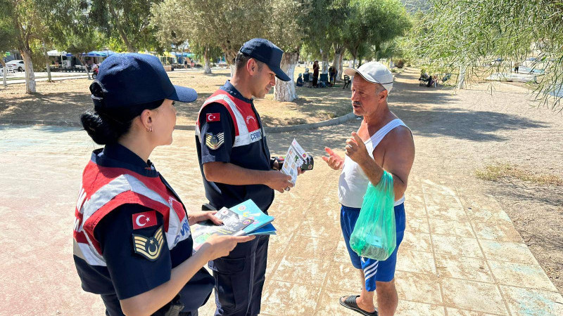 Aydın İl Jandarma Komutanlığı, yaz sezonunun zirve yaptığı Didim ilçesinde, orman yangınlarına karşı vatandaşları bilinçlendirmek amacıyla geniş çaplı bir farkındalık kampanyası başlattı. “Her Şey Elimizde” mottosuyla gerçekleştirilen bu çalışmada, jandarma ekipleri, bölgede umuma açık alanlarda bulunan vatandaşları kamp alanları dışında kamp yapmama, mangal yakmama ve ormanlık alanlara 31 Ekim 2024 tarihine kadar girişin yasak olduğunu belirten bilgilendirmeler yaptı.