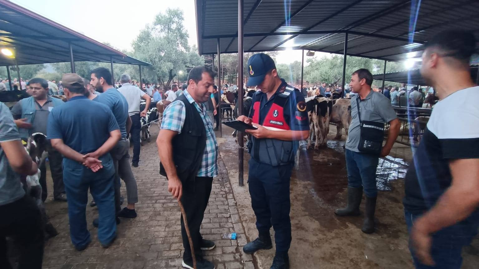 Aydın İl Jandarma Komutanlığı, Efeler ilçesi Dalama Mahallesi'nde bulunan hayvan pazarında çalıntı ihtimaline karşı büyük bir önlem almış durumda.