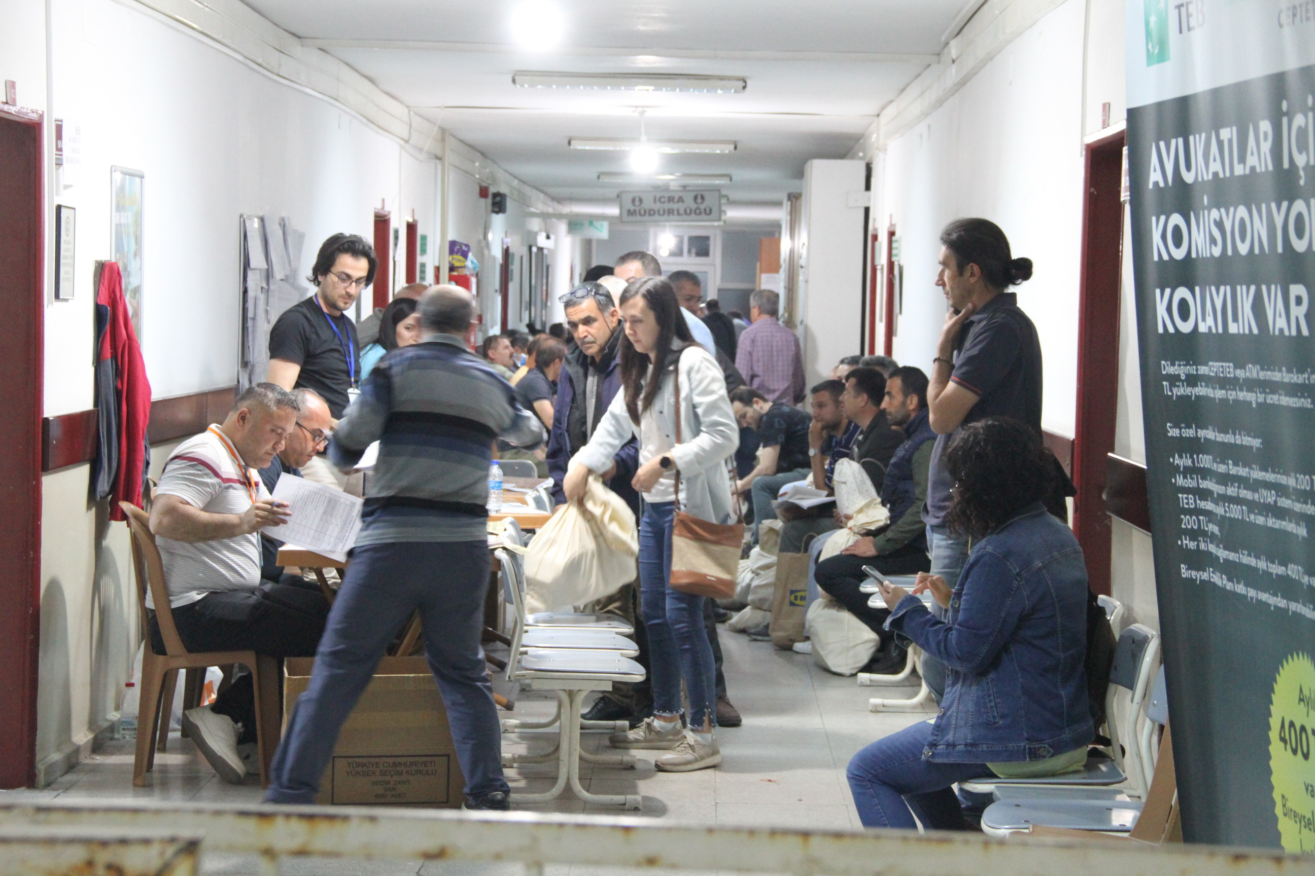 Aydın il Seçim Kuruluna Seçmenin Kullandığı Oy Pusulaları Gönderilmek Üzere, Aydın Adliyesi Önünde Upuzun Kuyruk Oluştu. Aydın Adliyesi içerisinde Kalabalık da Oluştur.