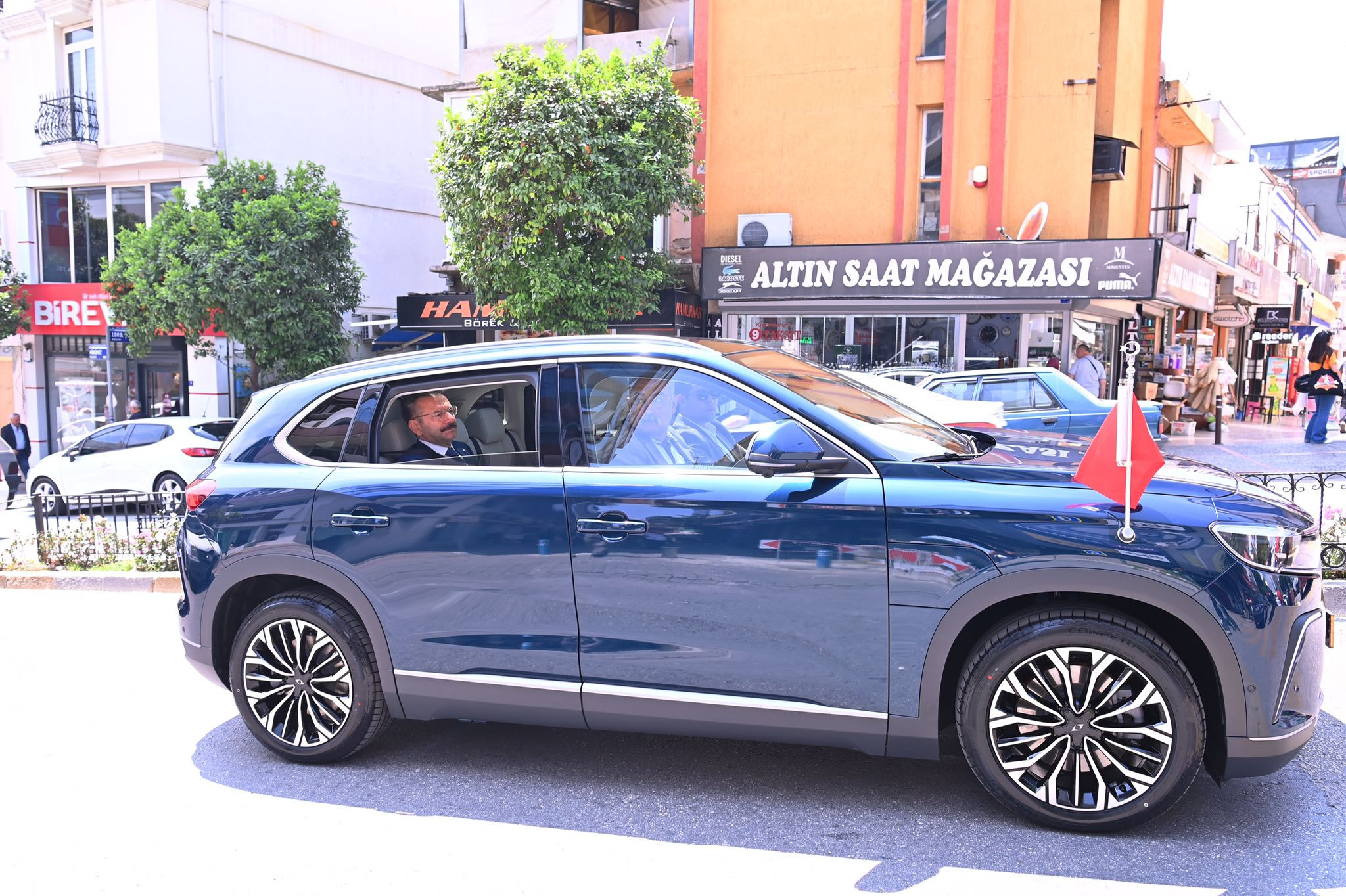 Vali Hüseyin Aksoy'un yeni makam aracına Aydın'da büyük ilgi. Yerli ve milli aracımız TOGG Aydın'da sayın Hüseyin Aksoy'un makam aracı olarak getirildi. Vali Hüseyin Aksoy Aydın Kent Meydanı olmak Üzere Aydın'ın çeşitli yerlerinde tur attı. Ve Sayın Hüseyin Aksoy valikonağı civarında makam aracıyla dolaştı. Aydın Valiliği önüne park edilen 09 0001 plakalı Togg marka makam otomobiliyle vatandaşlar da hatıra fotoğrafı çektirdi. Aydın'a getirilen TOGG'un "Gemlik" rengi TOGG olduğunu belirtti.
