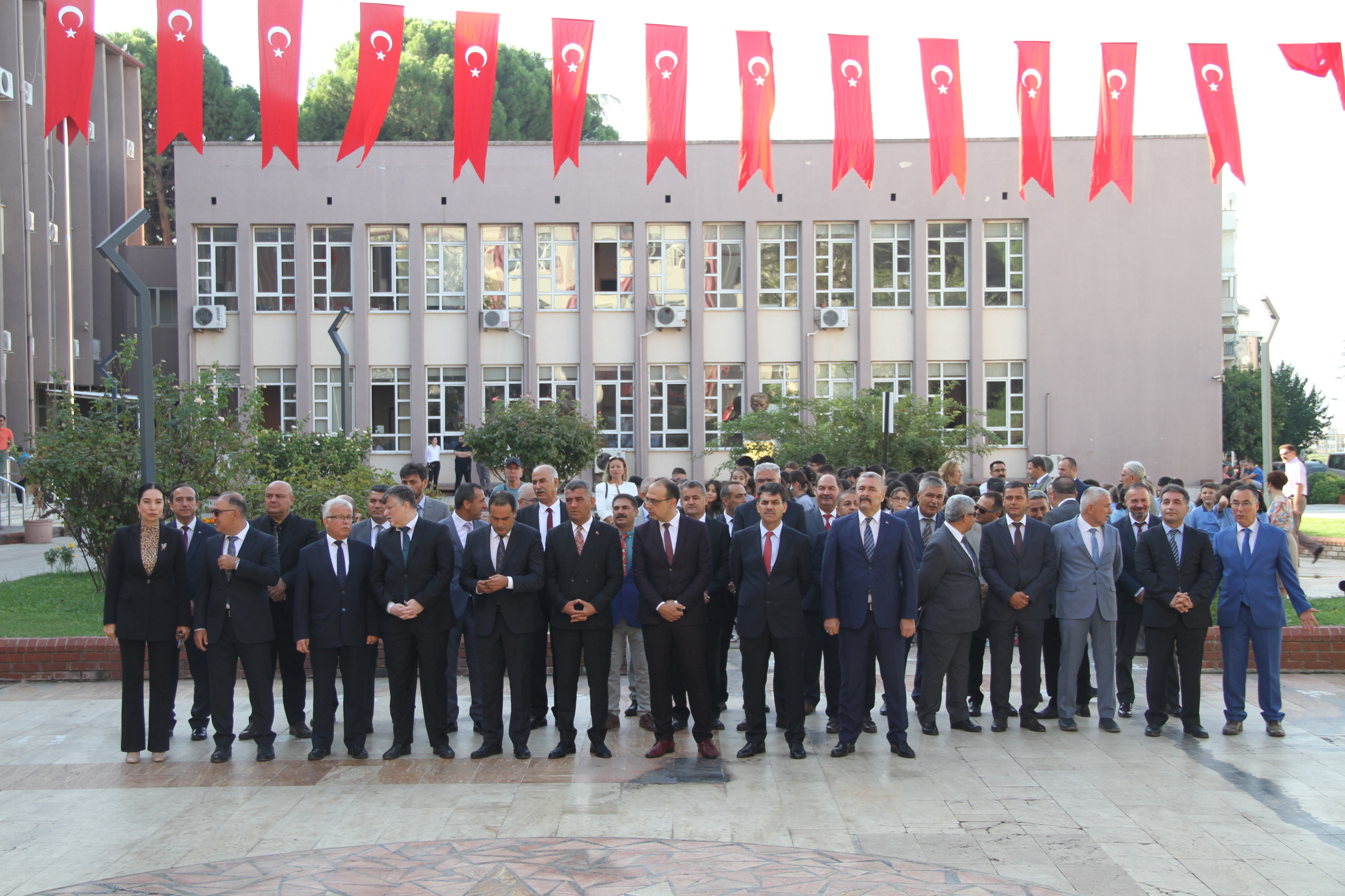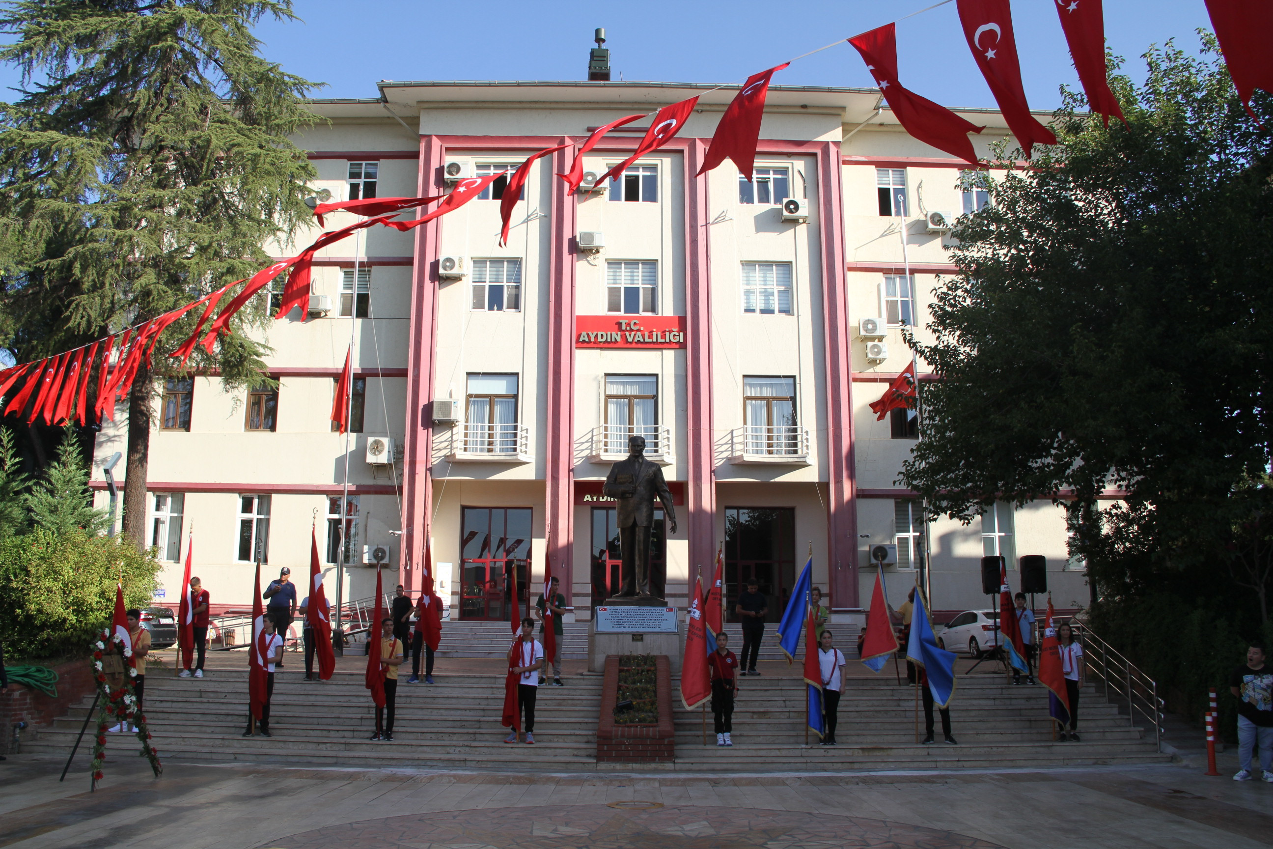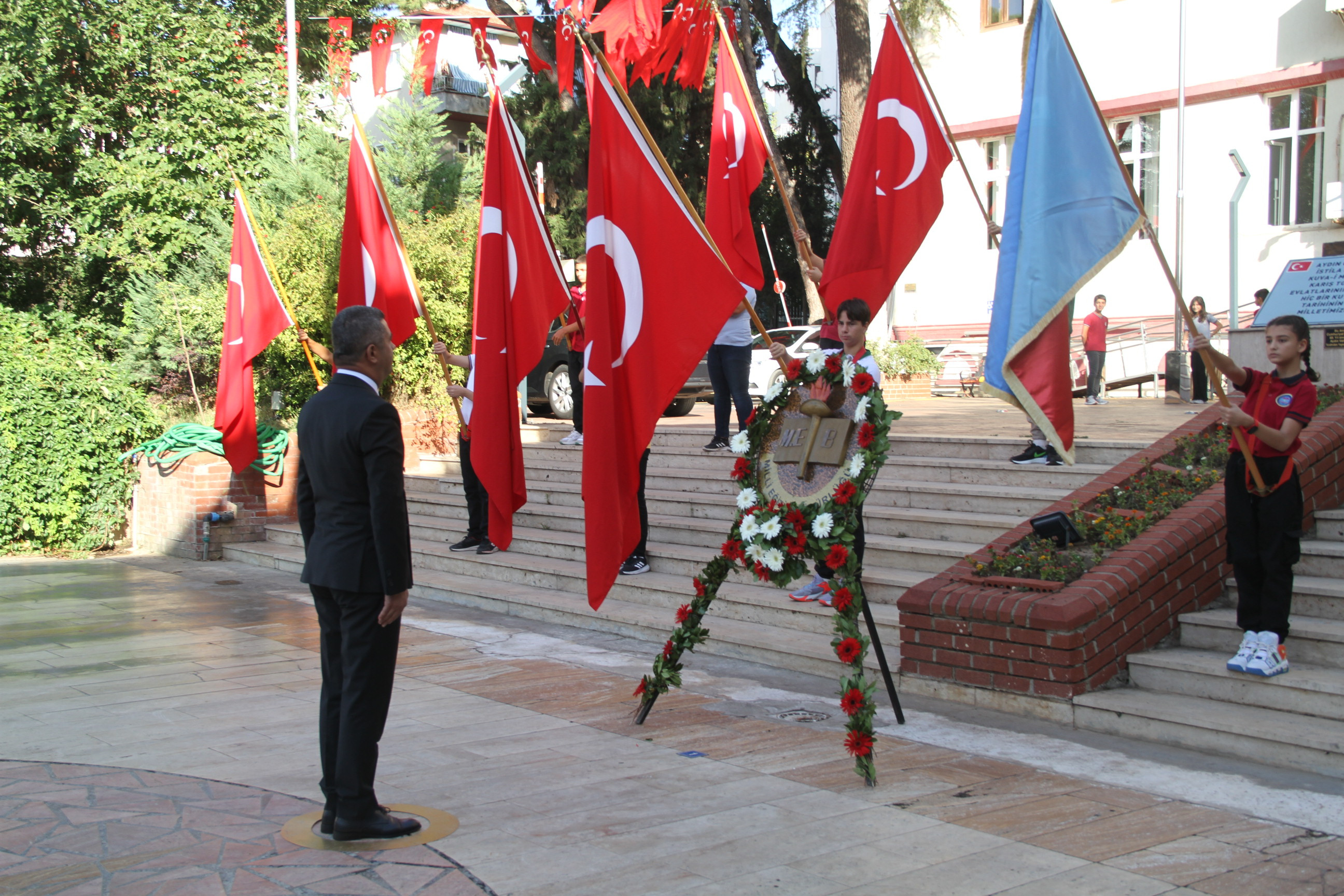 Aydın ilinde 2023-2024 Eğitim-Öğretim Yılı'nın başlamasıyla birlikte, Milli Eğitim Müdürlüğü tarafından özenle hazırlanan bir dizi etkinlik gerçekleştirildi. Bu coşkulu başlangıç, Aydın Valiliği önünde düzenlenen Atatürk Çelenk Sunma Töreni ile kutlandı. Tören, ilin önde gelen isimlerinin katılımıyla gerçekleşirken, Aydın Vali Yardımcısı İlker ARIKAN, Aydın İl Jandarma Komutanı Ali Naci ALDEMİR, Aydın Vali Yardımcısı Dr. Mehmet GÖDEKMERDAN, Koçarlı Kaymakamı Ersin TEPELİ, Adnan Menderes Üniversitesi Rektörü Bülent kent, Aydın il Milli Eğitim Müdür Yardımcısı Gülfidan KENDİRLİOĞLU, il Milli Eğitim Müdür Yardımcısı Sabri ACAR, Aydın Baro Başkanı Av. Anıl Yetişkin, AK Parti Efeler ilçe Başkanı Oğuz Kendirlioğlu ve de AK Parti Kadın Kolları Efeler İlçe Başkanı Hümeyra Ege ve birçok saygıdeğer konuk törende yer aldılar.