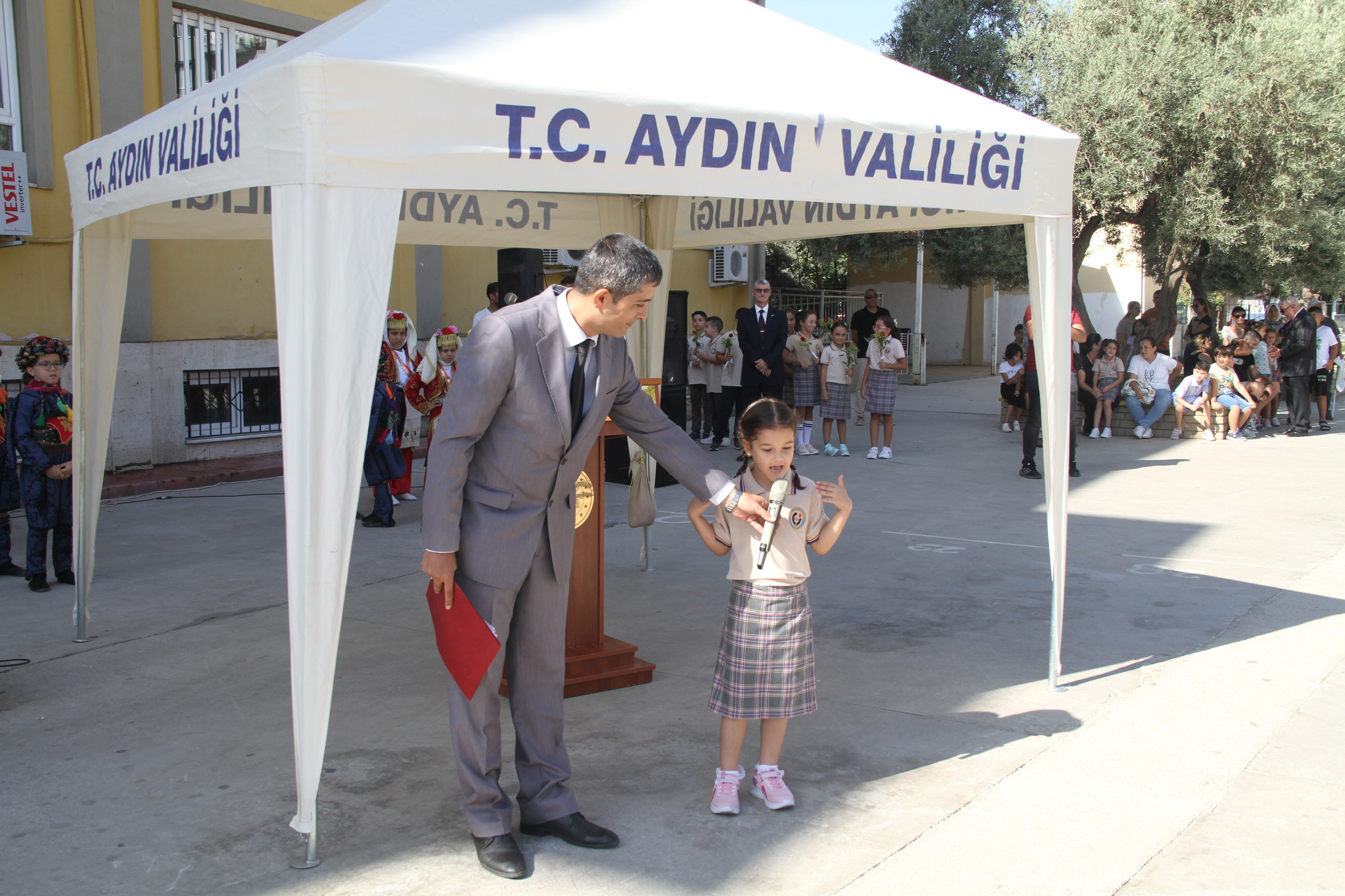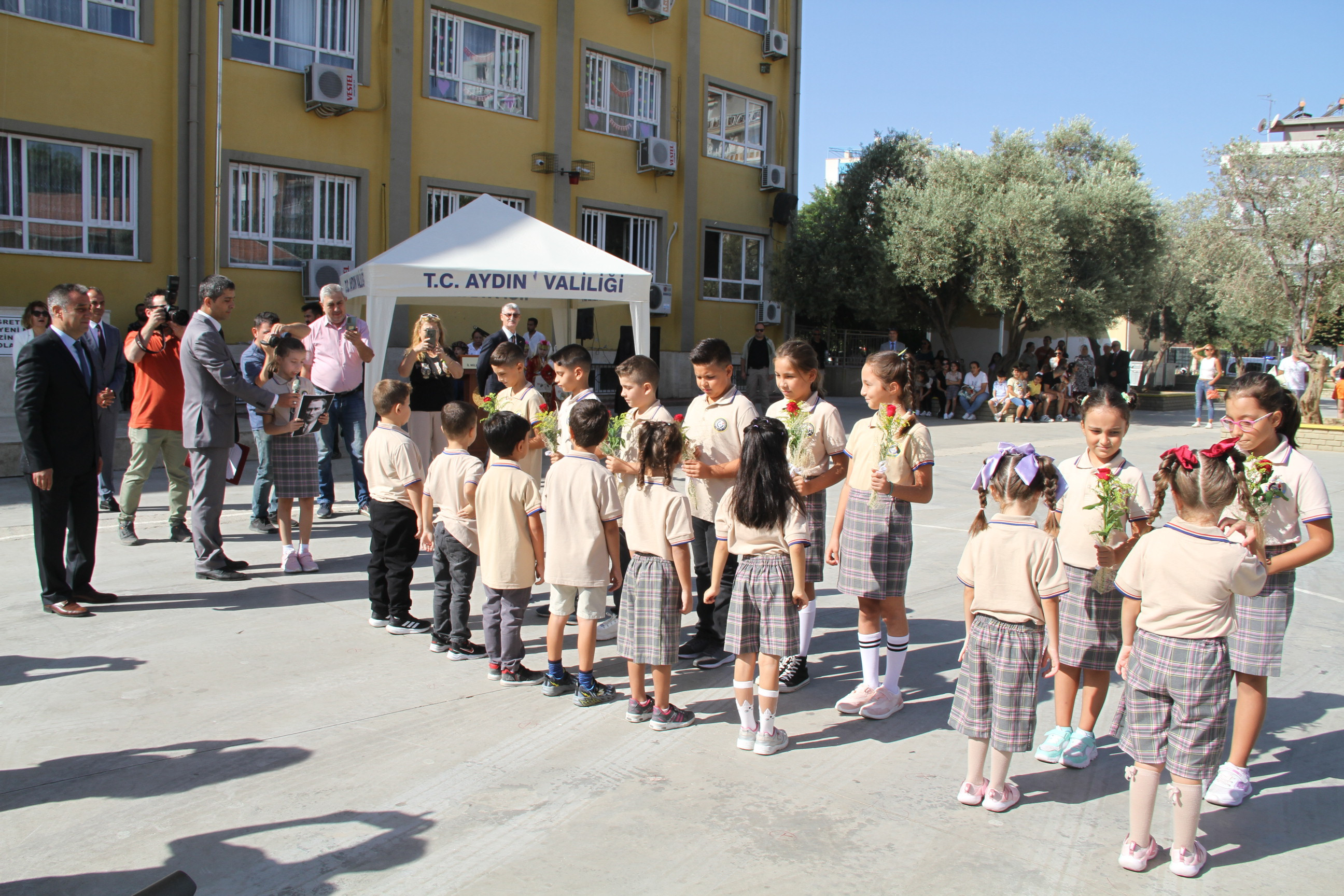 Aydın İl Milli Eğitim Müdürü Süleyman EKİCİ ve Aydın Valisi Yakup Canbolat törende konuşmalar yaparak, yeni eğitim-öğretim yılına olan inançlarını ve beklentilerini dile getirdiler. İl Milli Eğitim Müdürü Ekici, "İlimiz genelinde 822 okul ve kurumda toplam 16 bin 363 öğretmen ve 190 bin 569 öğrenci ile 2023-2024 eğitim ve öğretim yılına başlıyoruz. Geleceğimizin teminatı öğrencilerimizin bu eğitim ve öğretim yılını verimli bir şekilde geçireceklerine inancımız sonsuzdur." dedi.