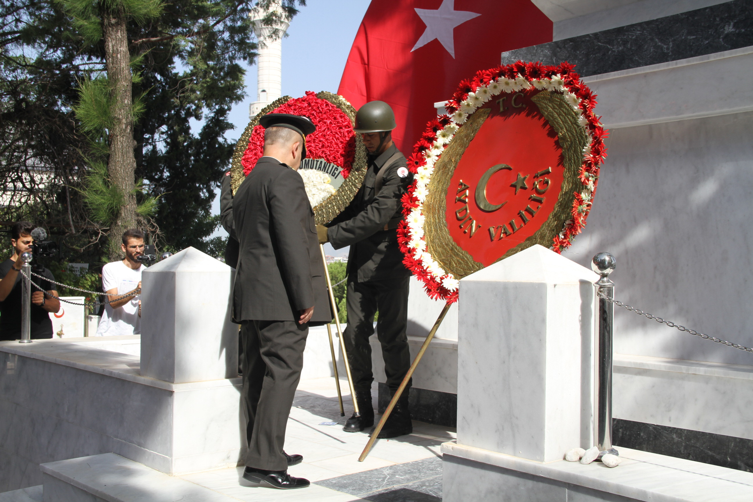 Sabah saat 10.00'da gerçekleştirilen çelenk sunma töreniyle başlayan etkinlikler, Aydın'ın farklı kurum ve kuruluşlarının katılımıyla gerçekleşti. Valilik Makamı, Garnizon Komutanlığı, Aydın Büyükşehir Belediye Başkanlığı, Aydın Şehit Aileleri ve Gazileri Dayanışma Derneği, Aydın Şehit Aileleri ve Malul Gazileri Yardımlaşma Derneği tarafından sunulan çelenkler, şehitlerimizin anısına bir saygı duruşu niteliğindeydi. Saygı duruşunun ardından İstiklal Marşı'nın gür bir sesle okunmasıyla birlikte duygusal bir atmosfer oluştu. Aydın Valisi Sayın Hüseyin Aksoy, Şehitlik Defteri'ni imzalayarak şehitlerimizin aziz hatırasını onurlandırdı. Aynı şekilde İl Müftüsü de dualarla tüm şehitlerimiz için Allah'tan rahmet diledi. Protokol üyeleri, şehitlerimizin kabirlerine çiçek bırakarak anma törenini sürdürdü.