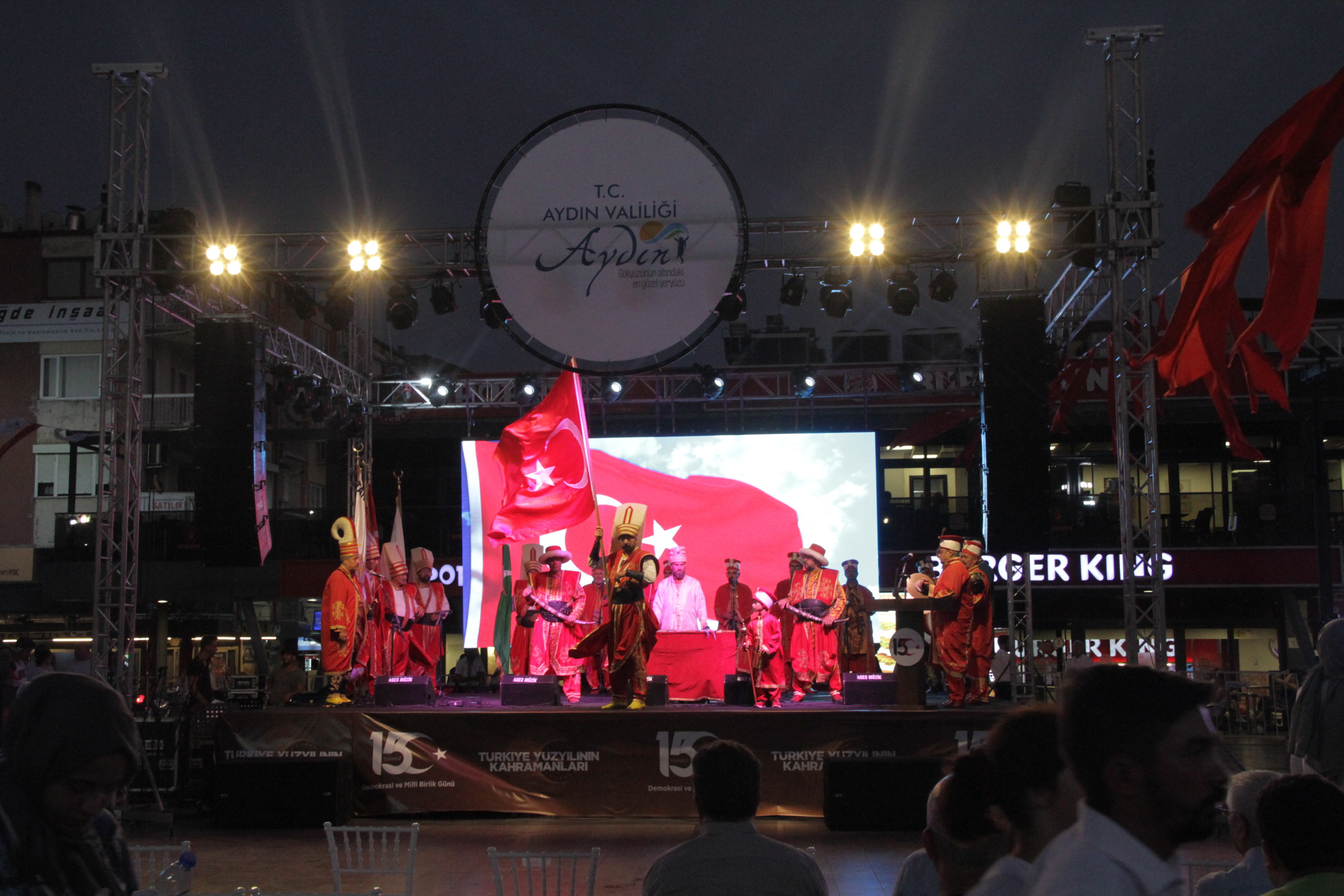Aydın'da düzenlenen 15 Temmuz etkinlikleri, Mehteran Takımı ve Sema gösterileri eşliğinde 15 Temmuz videolarının izlenmesiyle son buldu. Bu coşkulu kutlama, Aydınlıların birlik ve beraberlik ruhunu bir kez daha pekiştirdiği anlamlı bir etkinlik oldu. Aydın halkı, demokrasiye ve vatan sevgisine olan inancını bu etkinliklerle bir kez daha gösterdi. 15 Temmuz Demokrasi ve Milli Birlik Günü, Türkiye'nin birlik ve beraberlik ruhunun simgesi haline gelmiş bir tarih olarak Aydın'da da yüreklerde yaşatıldı.