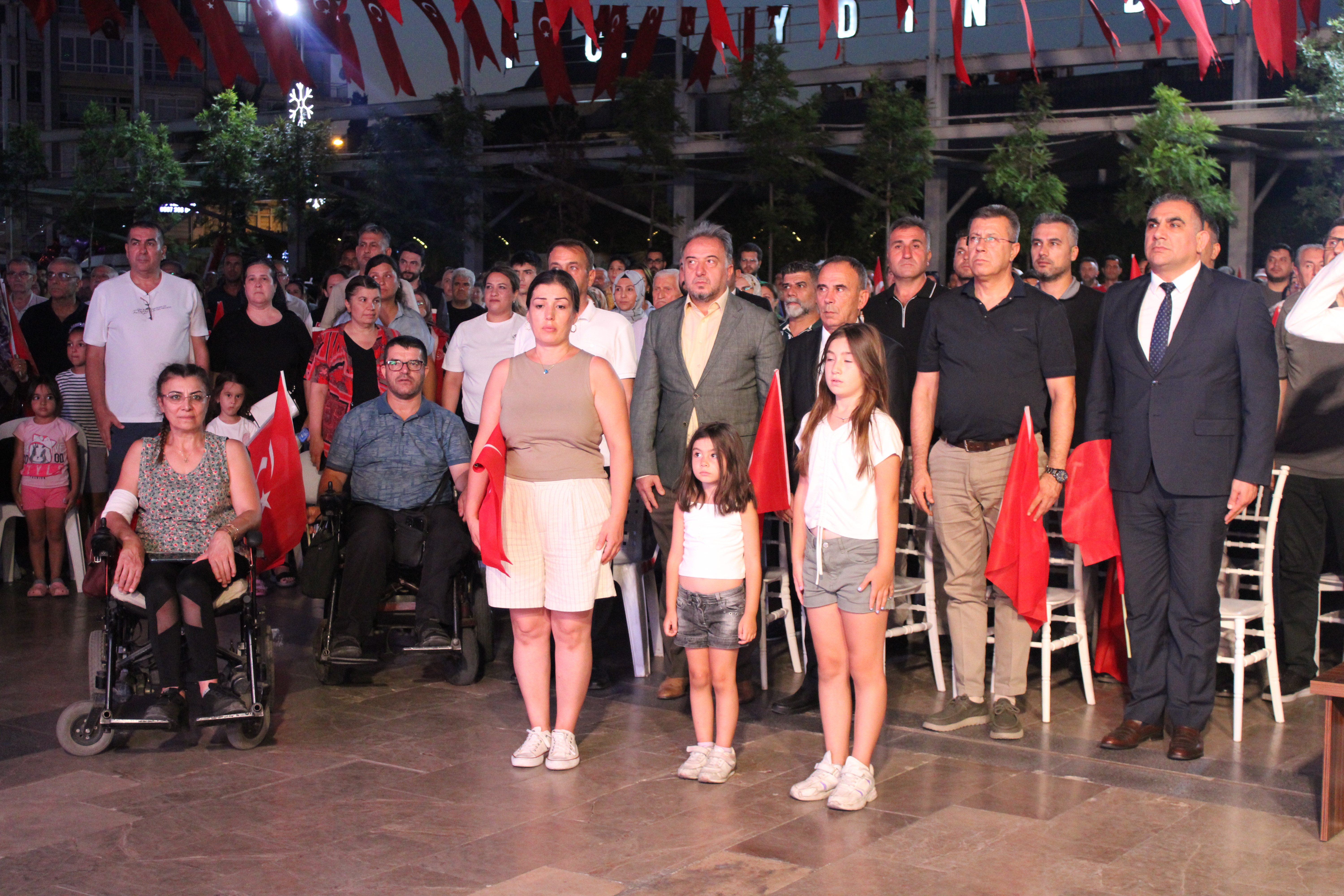 15 Temmuz Milli Birlik Günü etkinlikleri kapsamında Atatürk Kent Meydanı'nda düzenlenen program, Aydın Valisi Yakup Canbolat’ın katılımıyla saygı duruşu ve İstiklal Marşı ile başladı. Vali Canbolat’ın konuşmasının ardından, 15 Temmuz hain darbe girişiminde şehit düşen Nedip Cengiz Eker’in tanıtım videosu gösterildi.