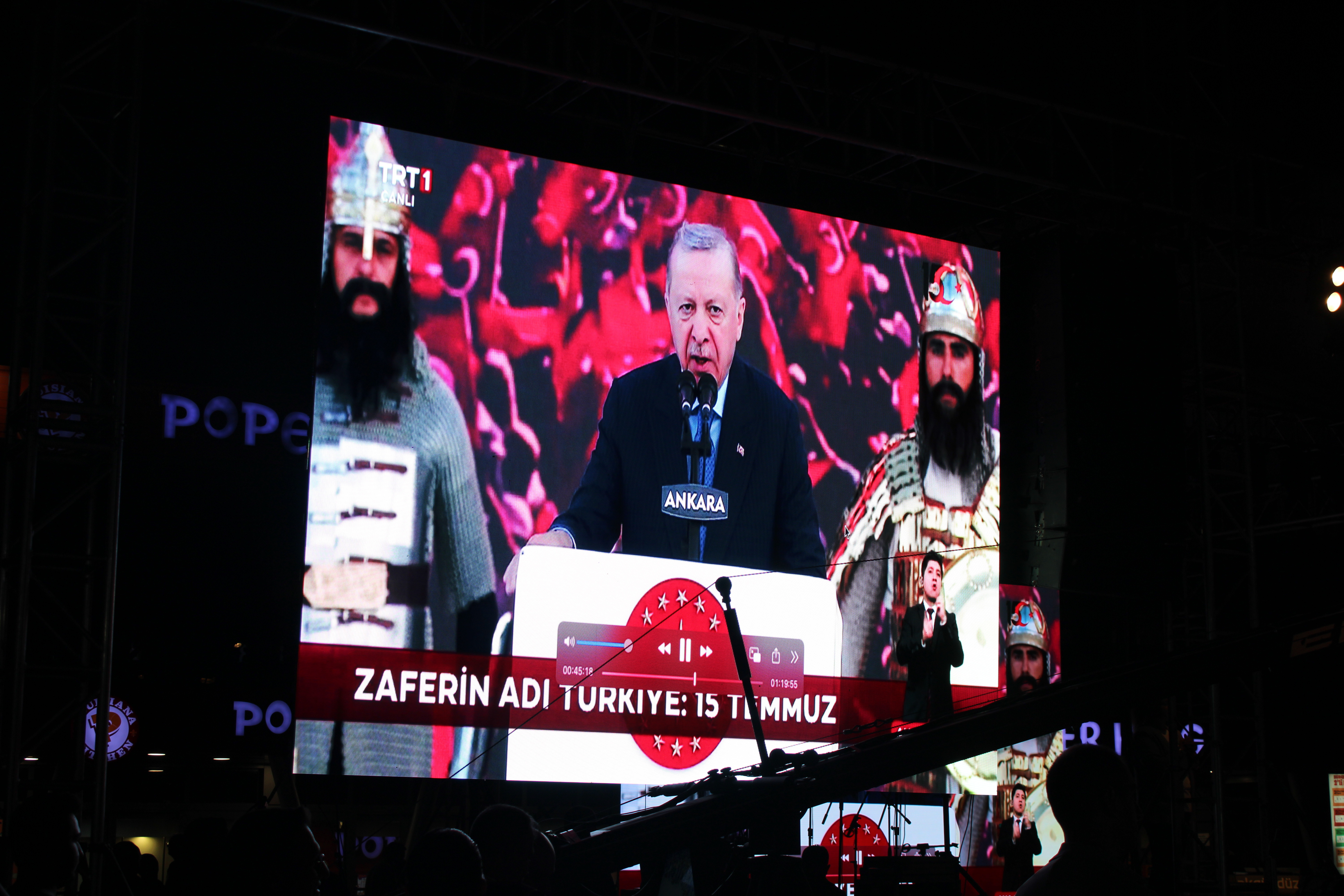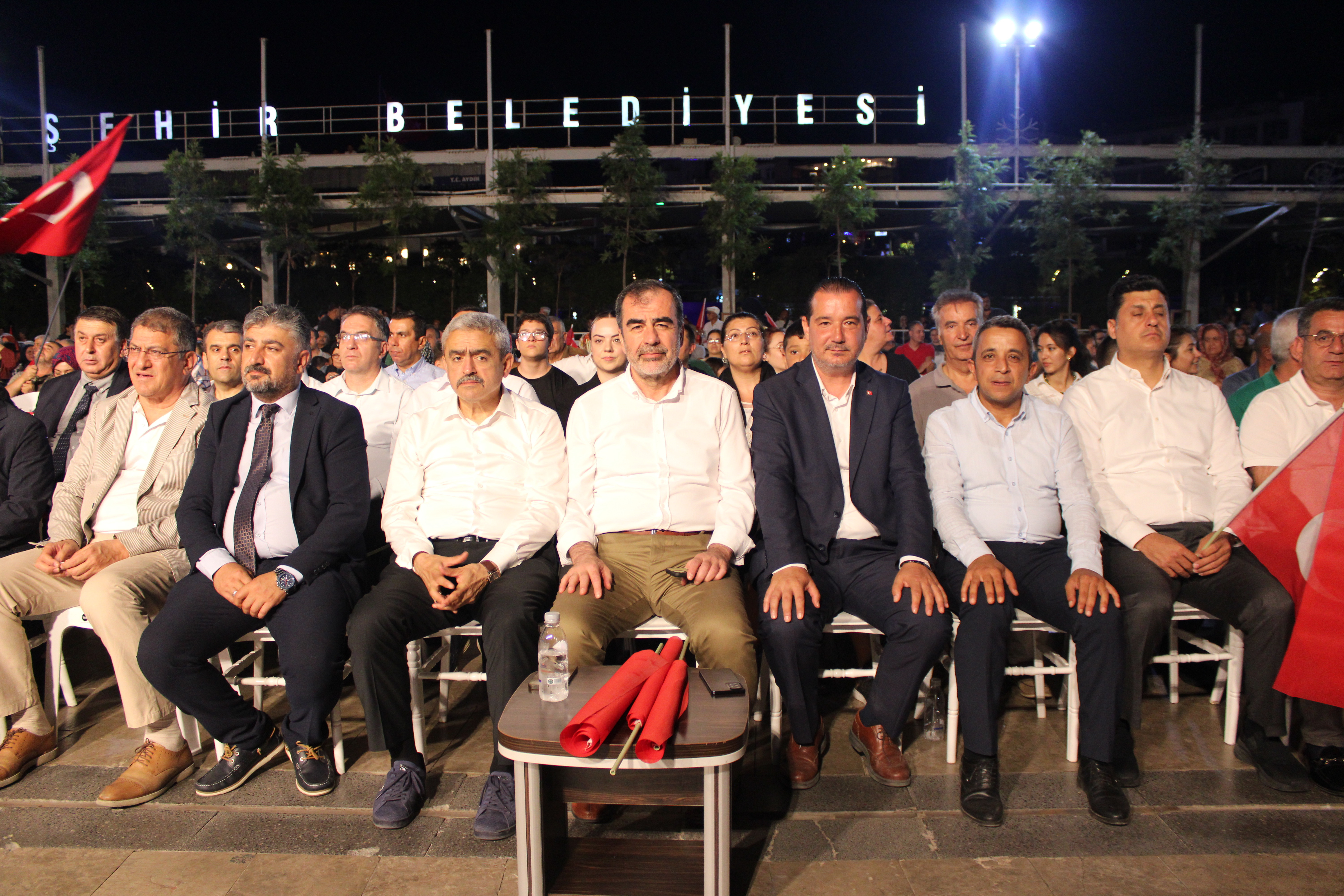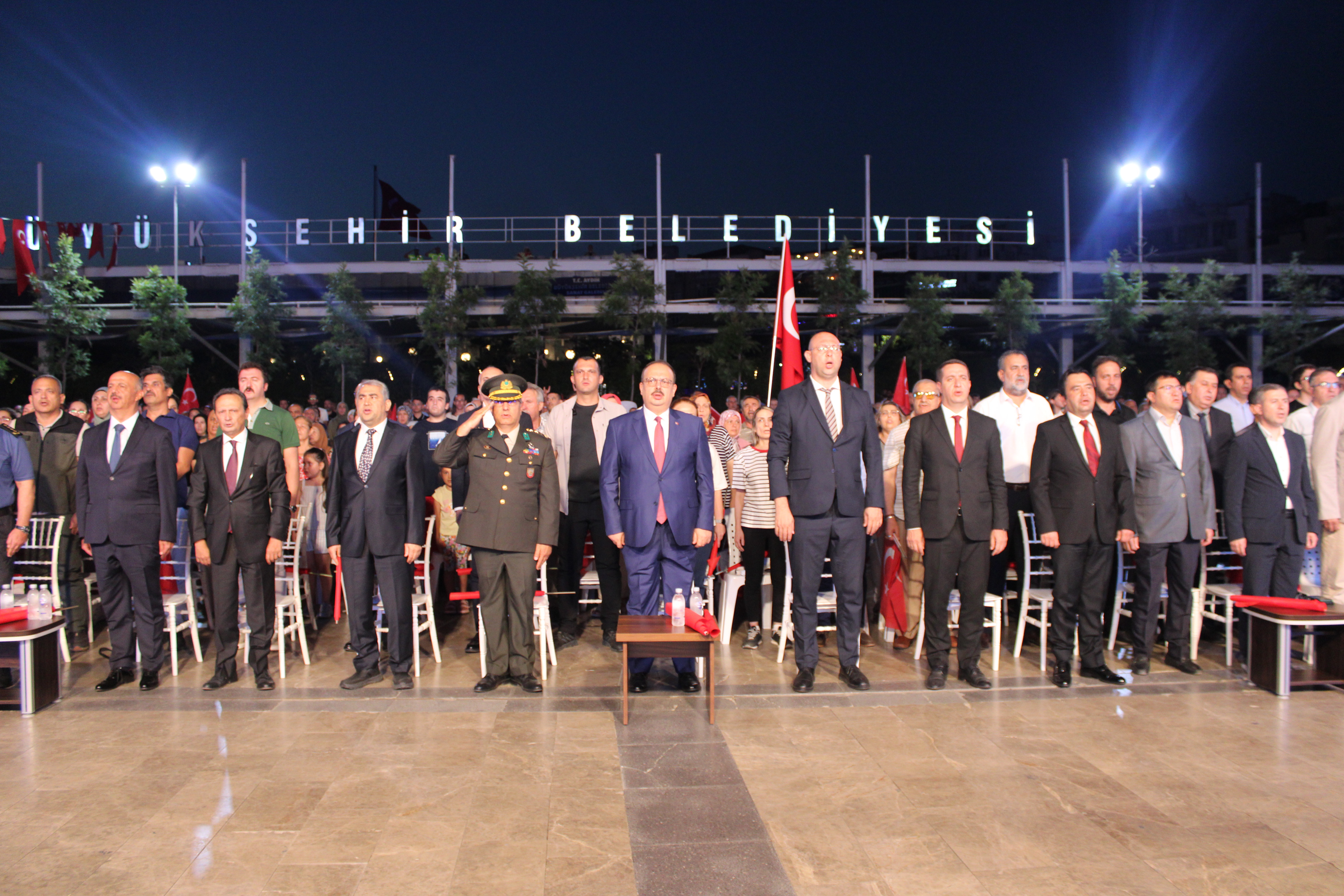 Akşam saatlerinde ise binlerce vatandaş Atatürk Kent Meydanı’nda düzenlenen programa akın etti. Programa Aydın Valisi Yakup Canbolat, Adnan Menderes Üniversitesi Rektörü Prof. Dr. Bülent Kent, İl Jandarma Komutanı Jandarma Albay Ali Naci Aldemir, kurum müdürleri, siyasi parti temsilcileri ve çok sayıda vatandaş katıldı.