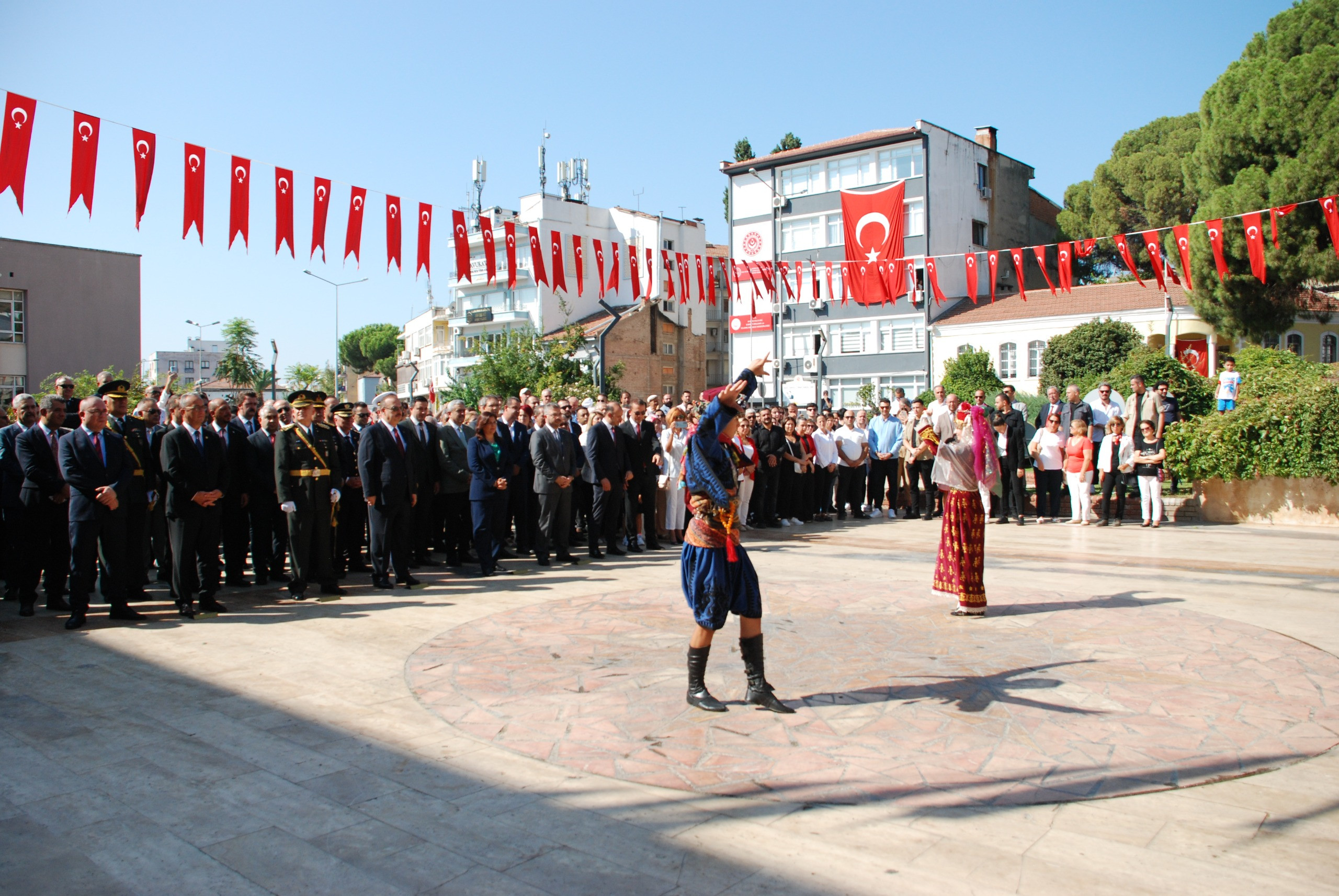 Vali Yakup Canbolat, Albay Hakkı Haktan Armağan ve Belediye Başkanı Özlem Çerçioğlu'nun Atatürk Anıtı'na çelenk koymasının ardından saygı duruşunda bulunuldu ve İstiklal Marşı hep bir ağızdan okundu. Öğrencilerin sergilediği halk oyunları gösterisi ise törene ayrı bir renk kattı.
