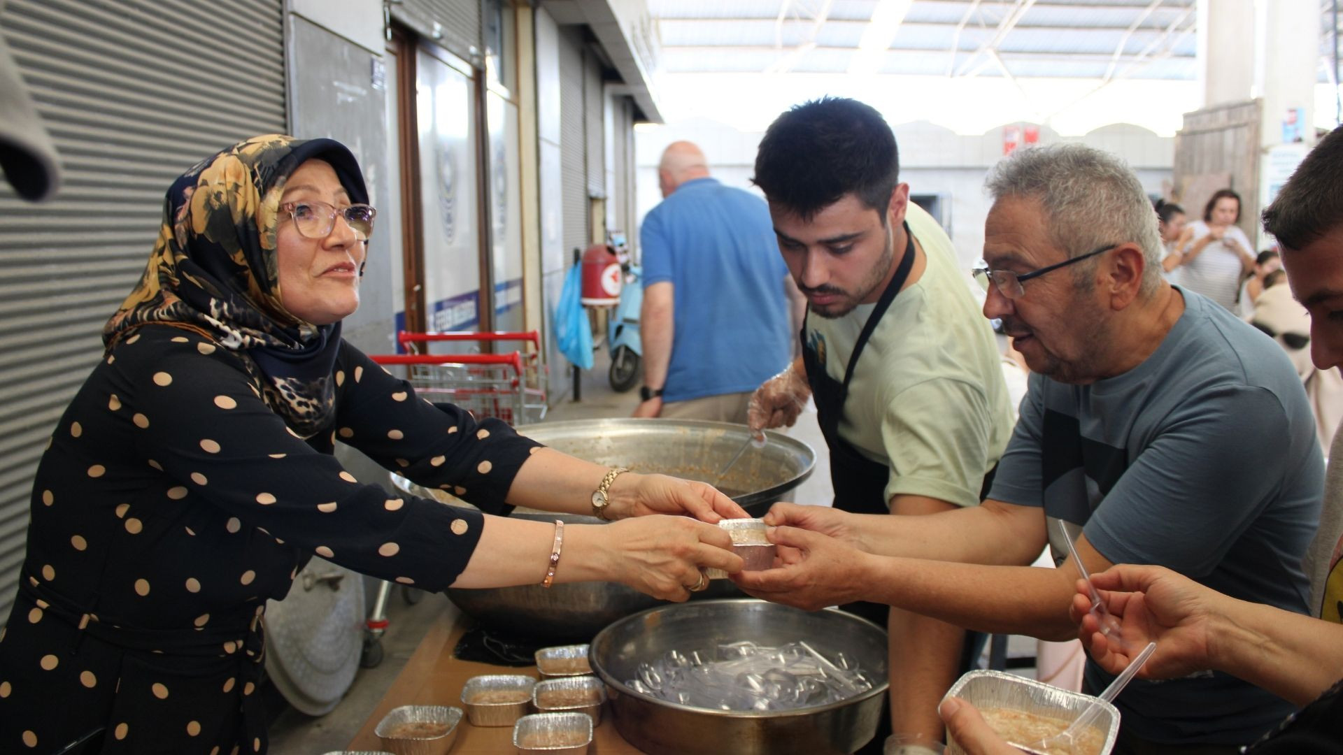 Fatih Mahallesi kapalı pazar yerinde gerçekleştirilen hayır etkinliği, Kur’an-ı Kerim tilaveti ve dualarla başladı. Yaklaşık 500 kişilik aşure, mahalleli kadınların el birliği ve imece usulüyle titizlikle hazırlanarak vatandaşlara ikram edildi.