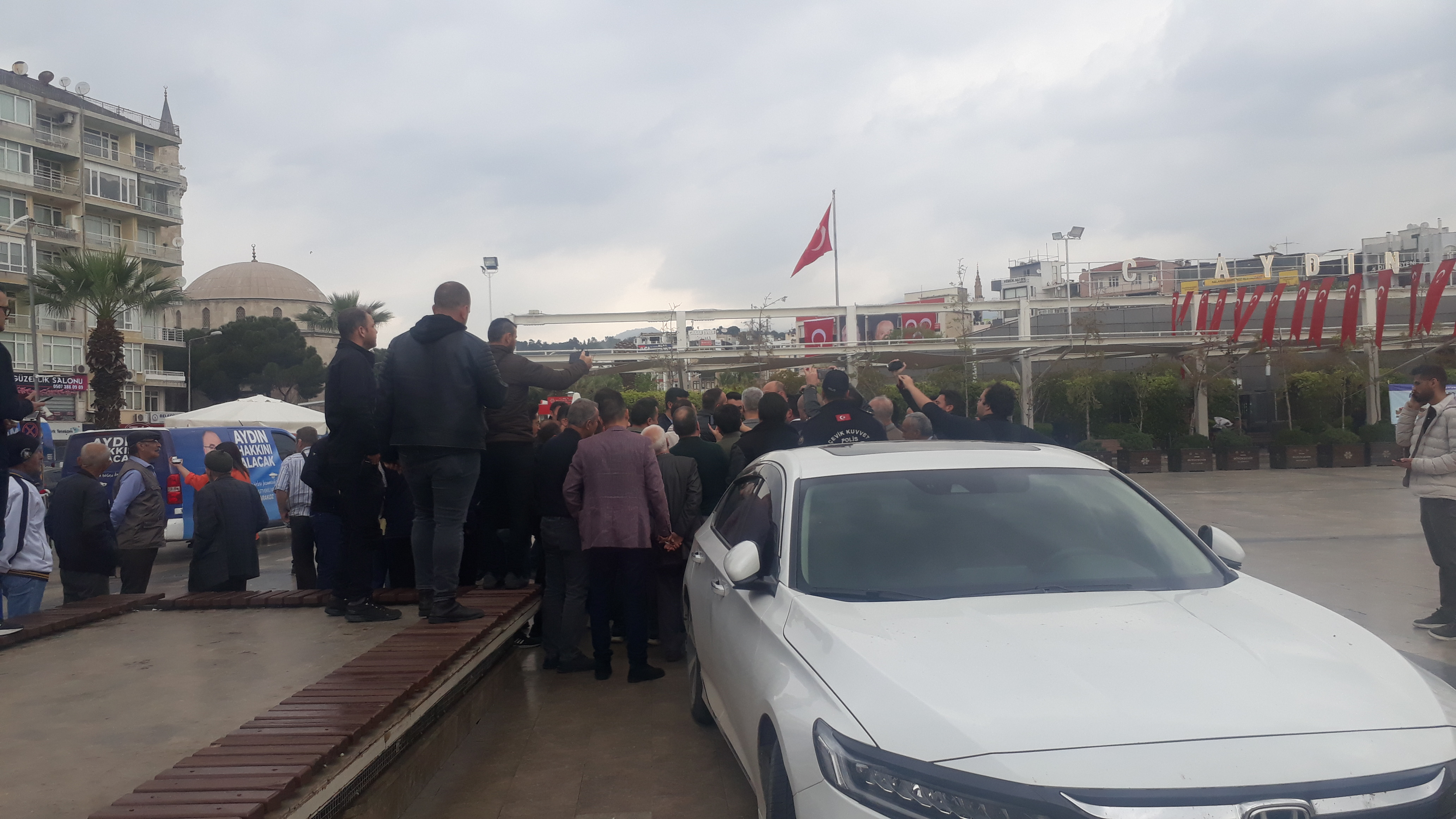 AK Parti Aydın İl Başkanlığı tarafından binanın yan cephesine asılan afiş vinç yardımıyla indirilmek istenince CHP'liler duruma karşı çıktı. Bölgeye gelen CHP Efeler İlçe Başkanı Polat Bora Mersin, konu ile ilgili sözleşmelerinin olduğunu ve afişin kaldırılamayacağını söyledi. İki taraf da olayı İl Seçim Kuruluna taşıdı.