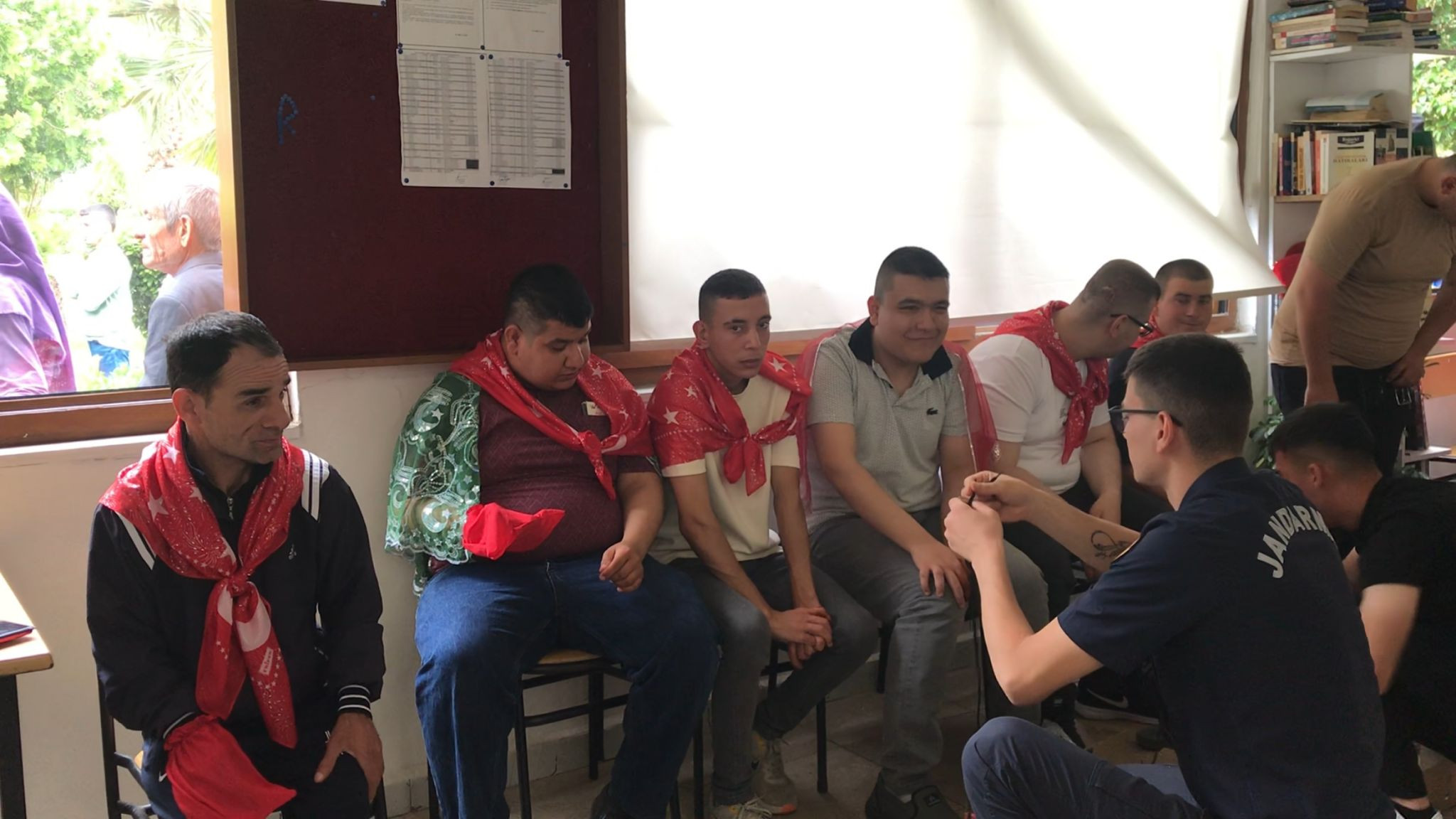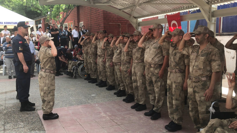 Aydın’da düzenlenen özel bir etkinlik, engelli bireyler için hayatlarında unutamayacakları bir askerlik deneyimi sundu. Jandarma konvoyu eşliğinde askeri üsse giriş yapan engelli bireyler, burada önce kayıt işlemlerini tamamladılar. Bu adımın ardından, geleneksel zeybek oyunu eşliğinde kına yakıldı ve askerlik sürecinin simgesi olan saç tıraşı yapıldı. Özenle tıraş edilen ve komutanları tarafından askeri kıyafetleri giydirilen engelliler, kısa bir askeri eğitim aldıktan sonra aileleriyle birlikte özel bir yemekte buluştular.