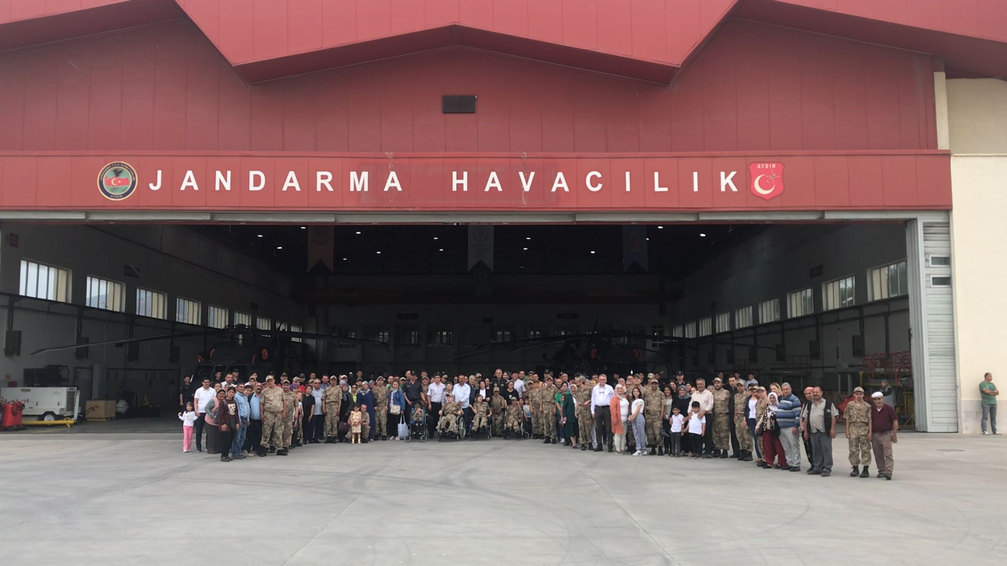 Günün ilerleyen saatlerinde, Aydın Jandarma Filo Komutanlığı'nı ziyaret eden engelliler, burada helikopterleri yakından görme fırsatı buldular. Kendileri için düzenlenen yemin töreninde askerlik yemini eden engelliler, törenden sonra terhis belgelerini aldı.