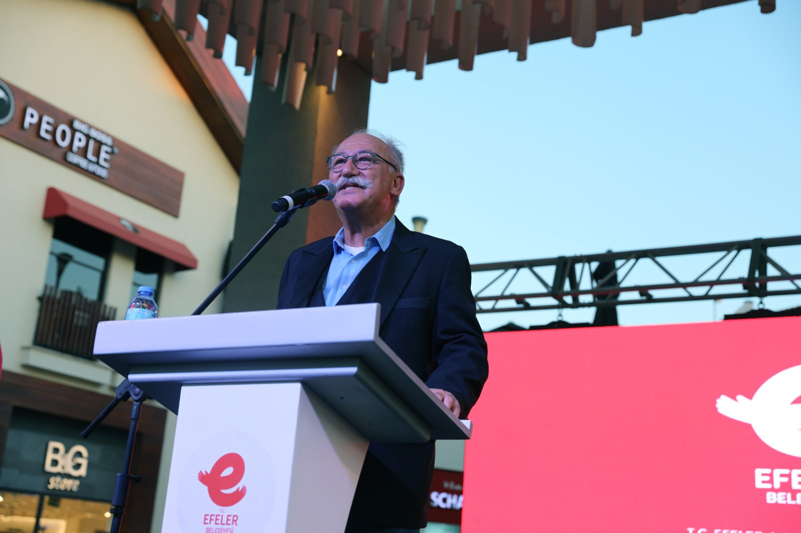 Festival boyunca rol aldığı filmler beyaz perdeye yansıtılacak olan usta oyuncu Altan Erkekli, konuşmasında şu ifadelere yer verdi; “Türkiye’nin bereketli topraklarında bu güzelliği bize yaşatan siz Efeler halkına minnet borçluyuz. Ulusal Kurtuluş Savaşı’nın kahramanları, bu topraklardan çıkıp nasıl ki vatanlarını savundularsa siz de şimdi yaşadığınız yeri o kadar güzel hale getirmeye çalışıyorsunuz. Bunun başında Efeler Belediyesi’nin çok değerli bir beyni var. Yüreğiyle, sevgisiyle küçüğe büyüğe, kadına erkeğe, ötekileştirilmeye çalışılan insanlara, herkese kucak açan, işte bu güzellikleri yaratan sayın başkanımız Mehmet Fatih Atay’a bir kez daha huzurlarınızda sonsuz teşekkürlerimi sunuyorum. Matematik Parkı, Hanımevleri, tamamı kadın personelden oluşan tarımsal ürün fabrikası… Burayı örnek bir kent haline getirmek gerçekten efelik isteyen bir şey. İşte ‘Efelerin Efesi’ Sayın Başkanımız ve saygıdeğer Efeler. ‘Cumhuriyeti biz kurduk onu yaşatacak ve yükseltecek olan sizlersiniz’ dedi Yüce Önder Mustafa Kemal Atatürk. İşte onun o güzel sözleriyle Cumhuriyete sahip çıkacağız, barışa sahip çıkacağız, sevgi dolu günleri hep birlikte yaşayacağız.”
