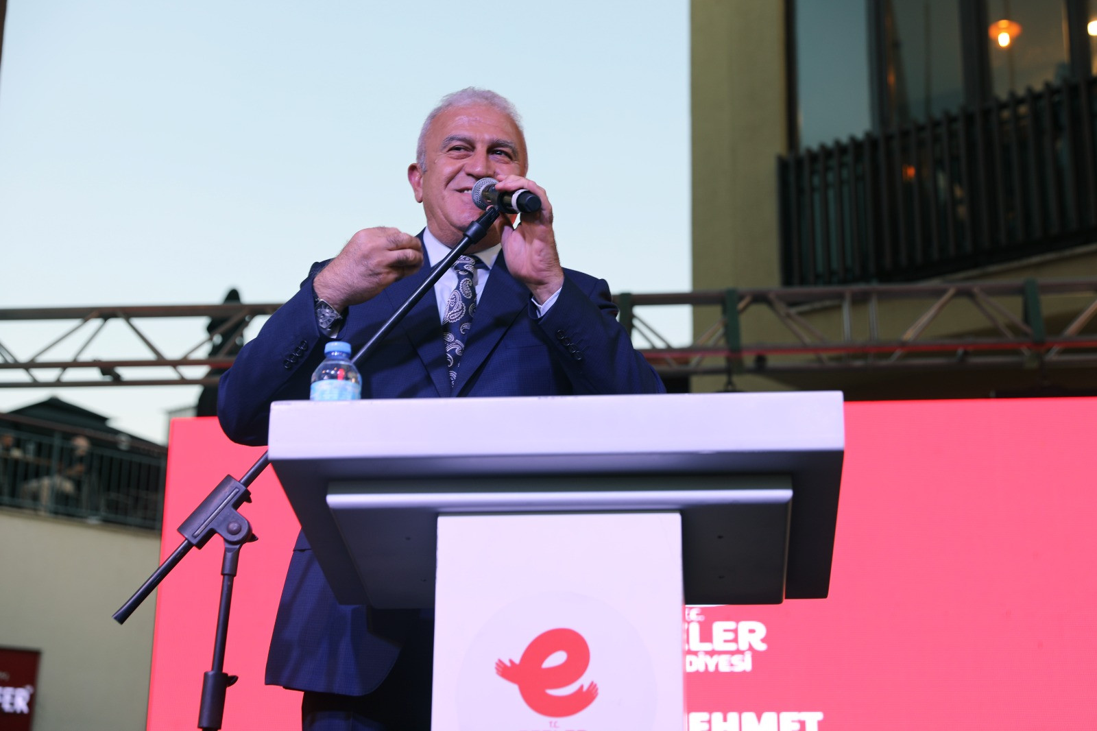 İlçede hayata geçirdiği ilkleri paylaşarak konuşmasına başlayan Efeler Belediye Başkanı Mehmet Fatih Atay, “Belediye hizmetlerimizi yaparken gençlerimize ve kadınlarımıza pozitif ayrımcılık yapıyoruz. 50 bin öğrencimizin hizmetinde olan 12 Kitap Kafe açtık. Sadece kadınlarımızın çalıştığı, emek sarf ettiği %100 Kadın Emeği Tarımsal Ürün Fabrikamızı açtık. Avrupa’nın en büyük ikinci ve adı Prof. Dr. Aziz Sancar Matematik ve Bilim Parkı olan bilimsel sahayı gerçekleştirdik. 600 öğrencimizin çok düşük ücretle eğitim gördükleri, dezavantajlı ailelerin çocuklarına eğitimde fırsat eşitliği sunduğumuz EFESEM’i açtık. 720 öğrencinin eğitim aldığı 5 gündüz bakımevini açtık. Daha çok şeyler yaptık. Bunlara ek olarak da en son hepinizin bildiği Doğa Otelimizi faaliyete açtık. Yaptığımız hizmetlerin karşılığını görmek bir belediye başkanı olarak beni sonsuz mutlu ediyor. Bu mutluluğu siz yaşatıyorsunuz hepinize sonsuz şükranlarımı sunuyorum” diyerek duyduğu memnuniyeti dile getirdi.