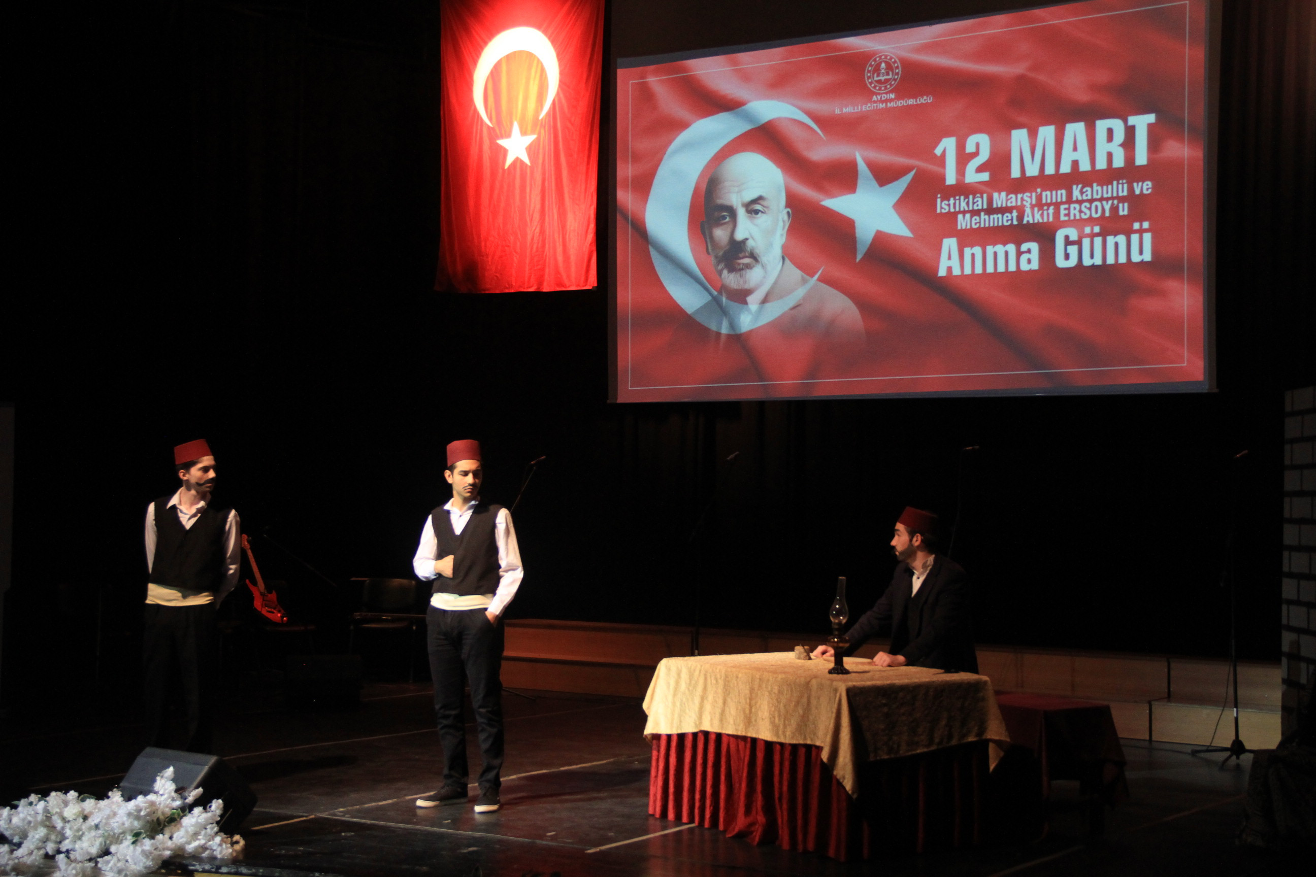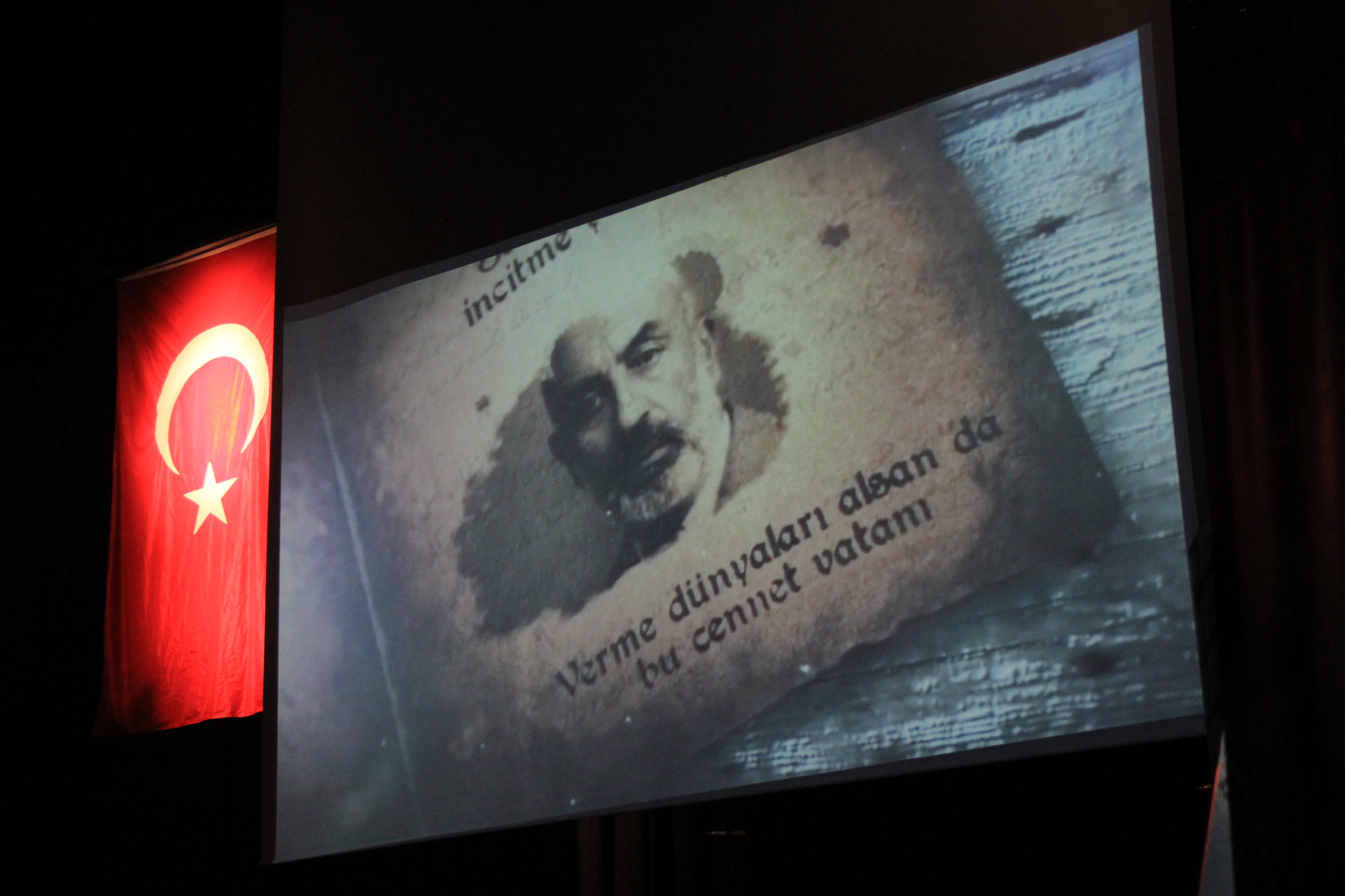 Türk milletinin kahramanlık destanı İstiklal Marşı'nın kabulü ve ebediyete intikal etmiş büyük şairimiz Mehmet Akif Ersoy'u anma günü coşkusu, Dr. Hidayet Sayın Kültür Merkezi'nde bir kez daha anıldı.