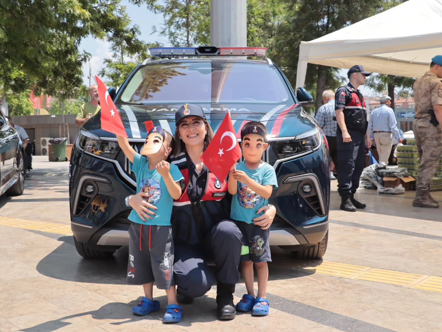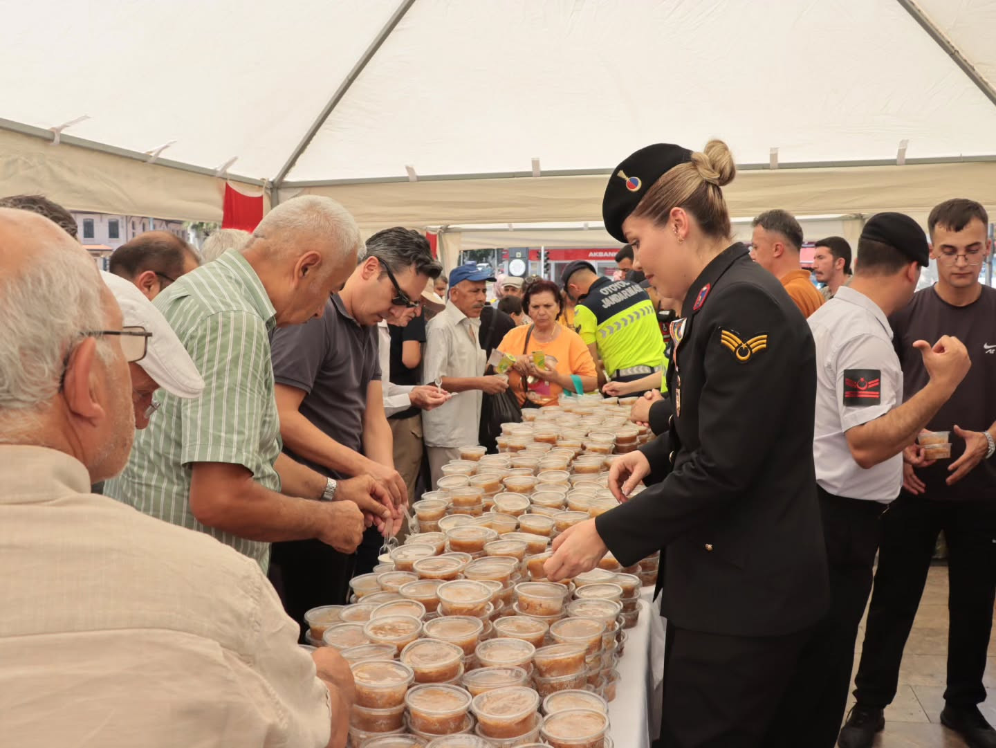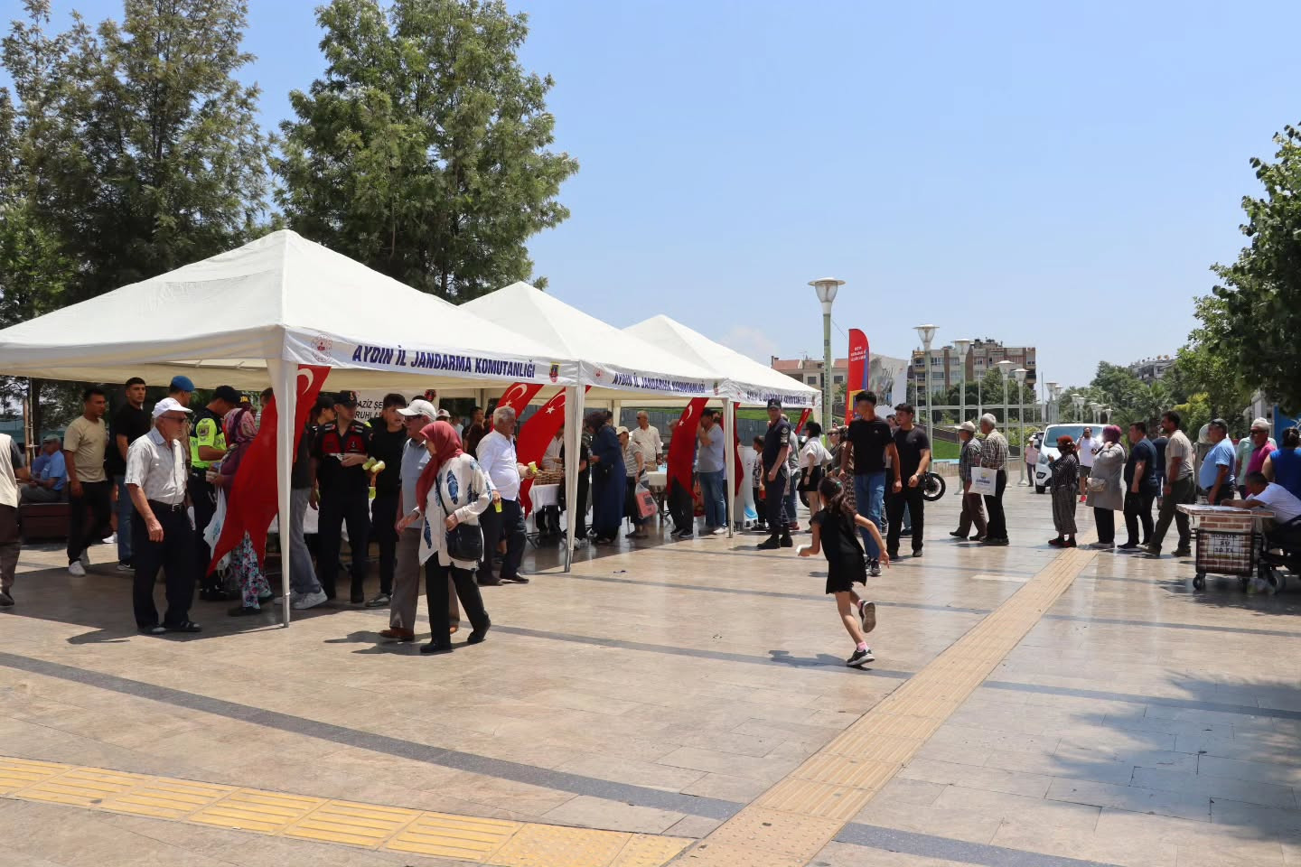 Aydın İl Jandarma Komutanı Ali Naci Aldemir’in de katılımıyla Atatürk Kent Meydanı’nda kurulan stantlarda, sıcaktan bunalan vatandaşlara serinletici limonata ve geleneksel irmik tatlısı ikram edildi.