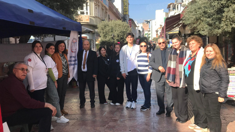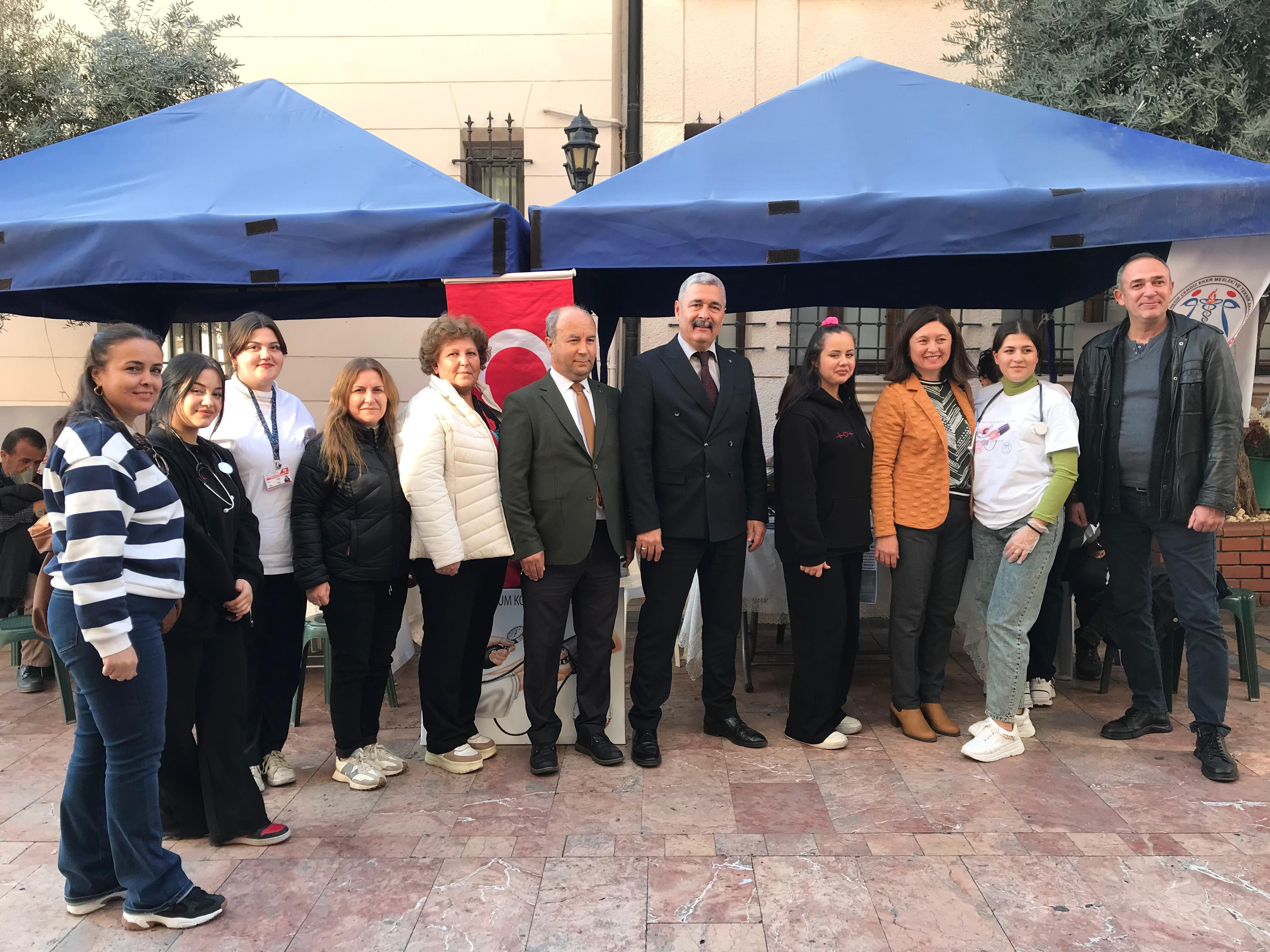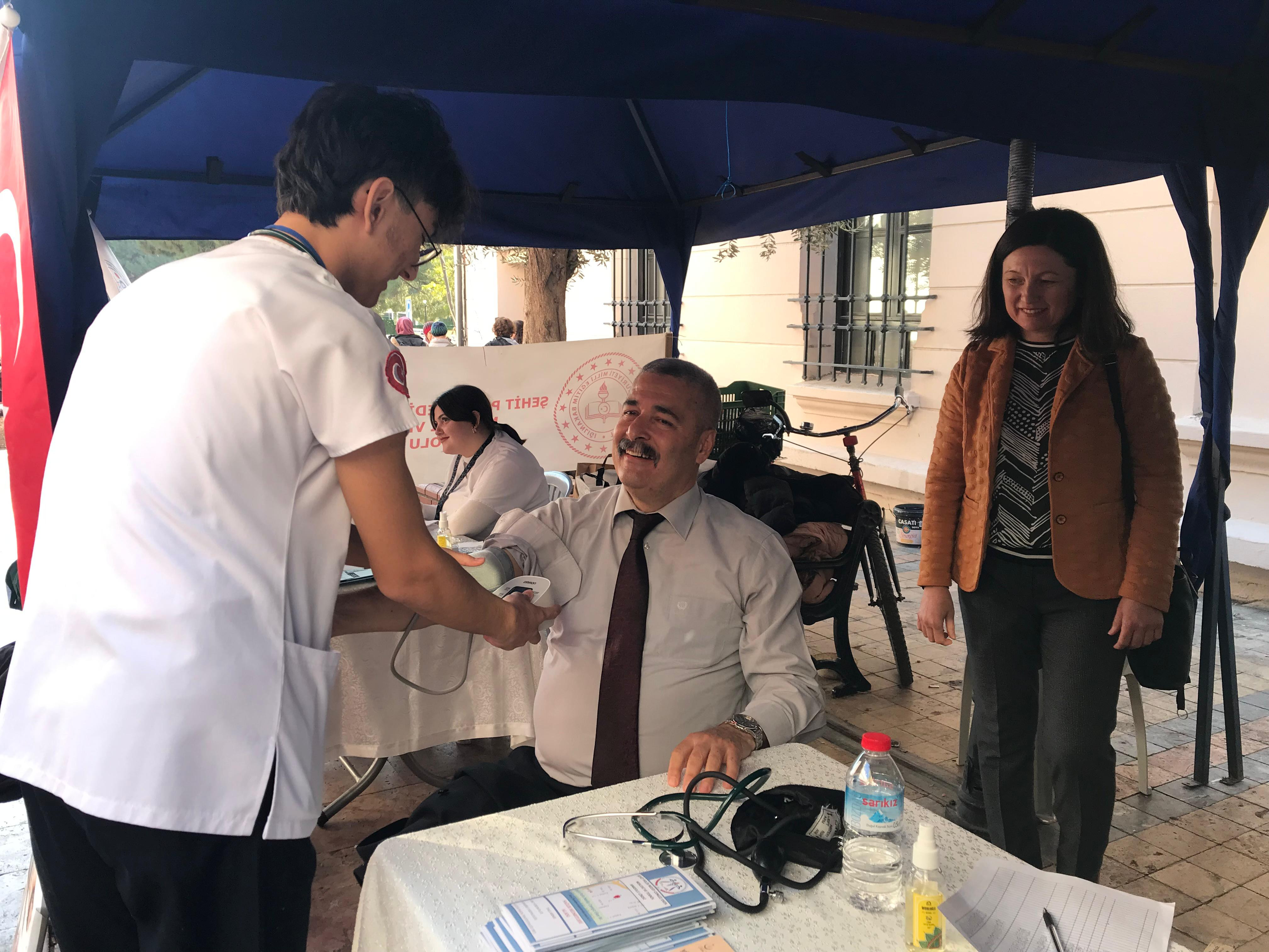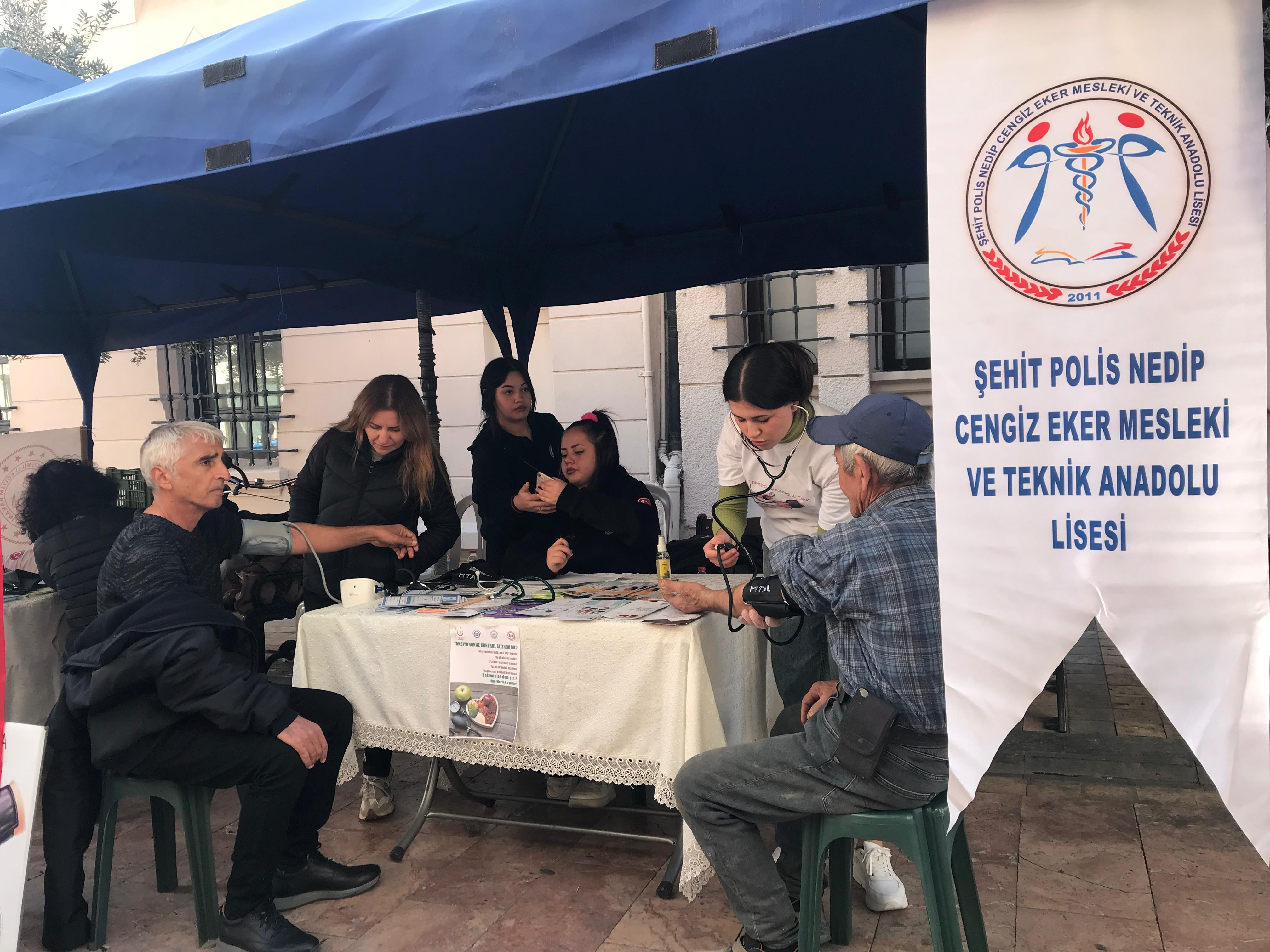 Aydın’da Şehit Polis Nedip Cengiz Eker Mesleki ve Teknik Anadolu Lisesi öğrencileri, Sevgi Yolu’nda açtıkları stantla “Tansiyonum Kontrol Altında” projesi kapsamında, tansiyon ölçümleri yapılarak vatandaşlara sağlık bilgilendirmesi yapıldı.