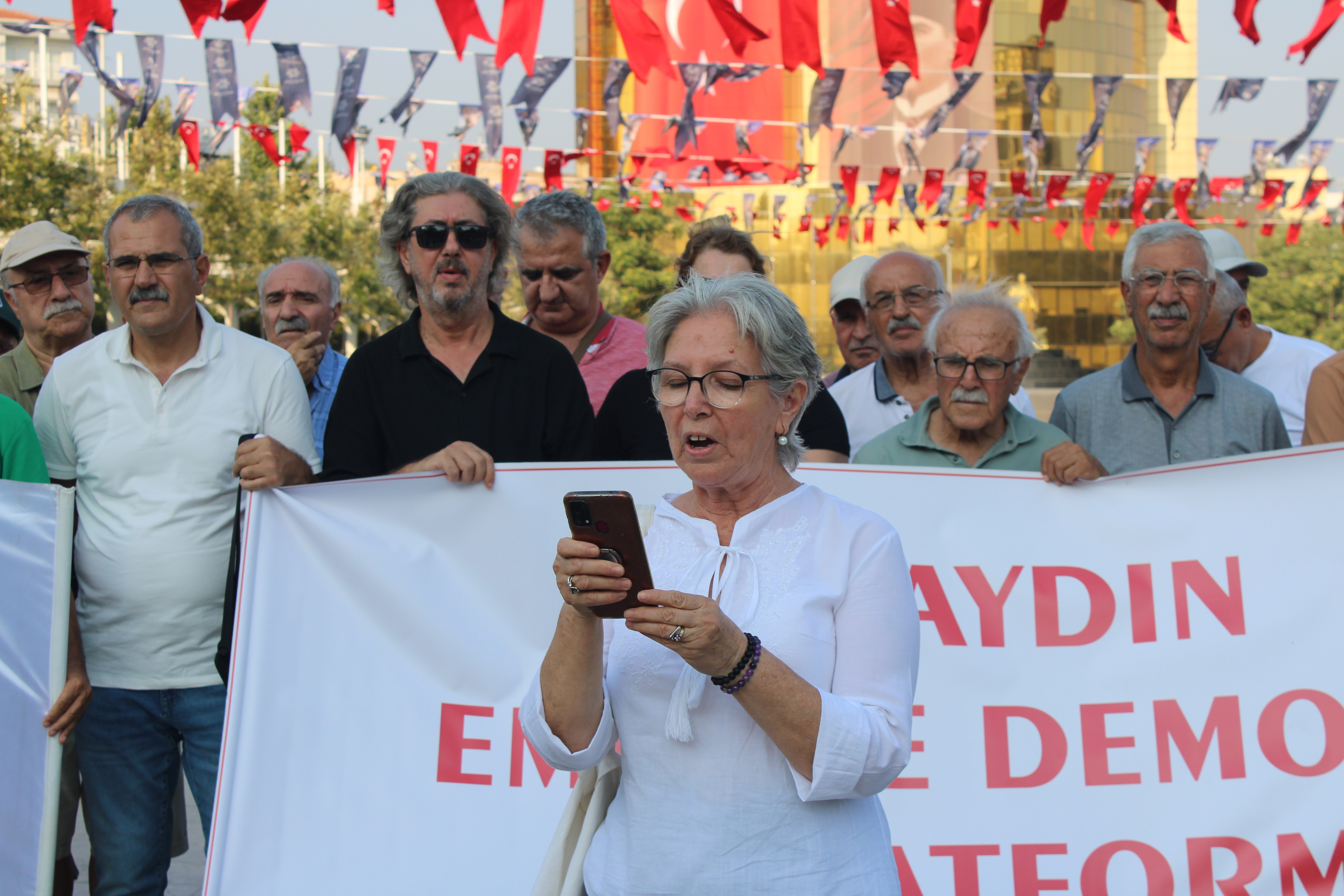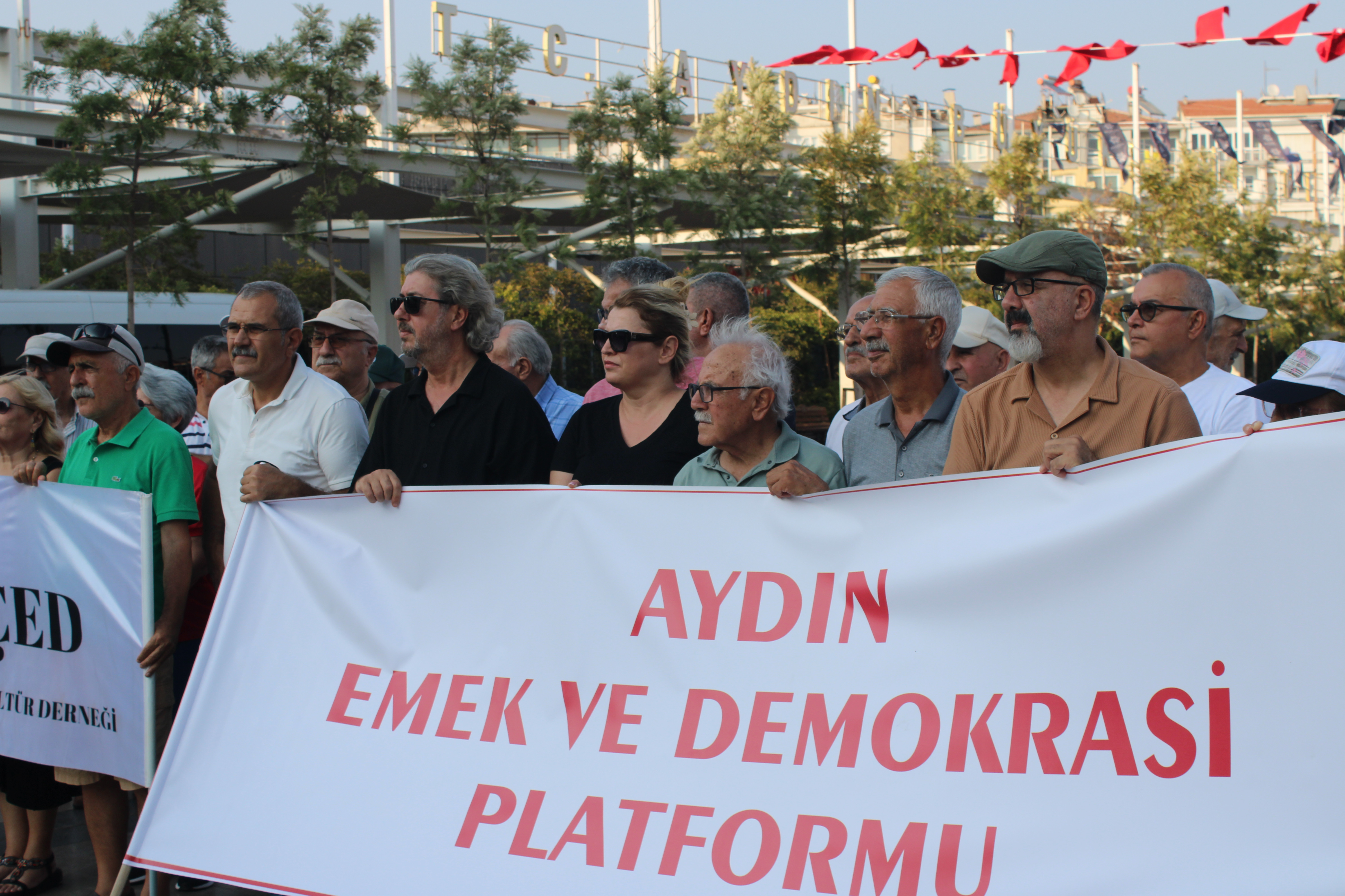 Aydın Emek ve Demokrasi Platformu adına AYÇED Yönetim Kurulu Üyesi Hatice Şahin, Atatürk Kent Meydanı’nda STK temsilcileriyle birlikte basın açıklaması yaptı.