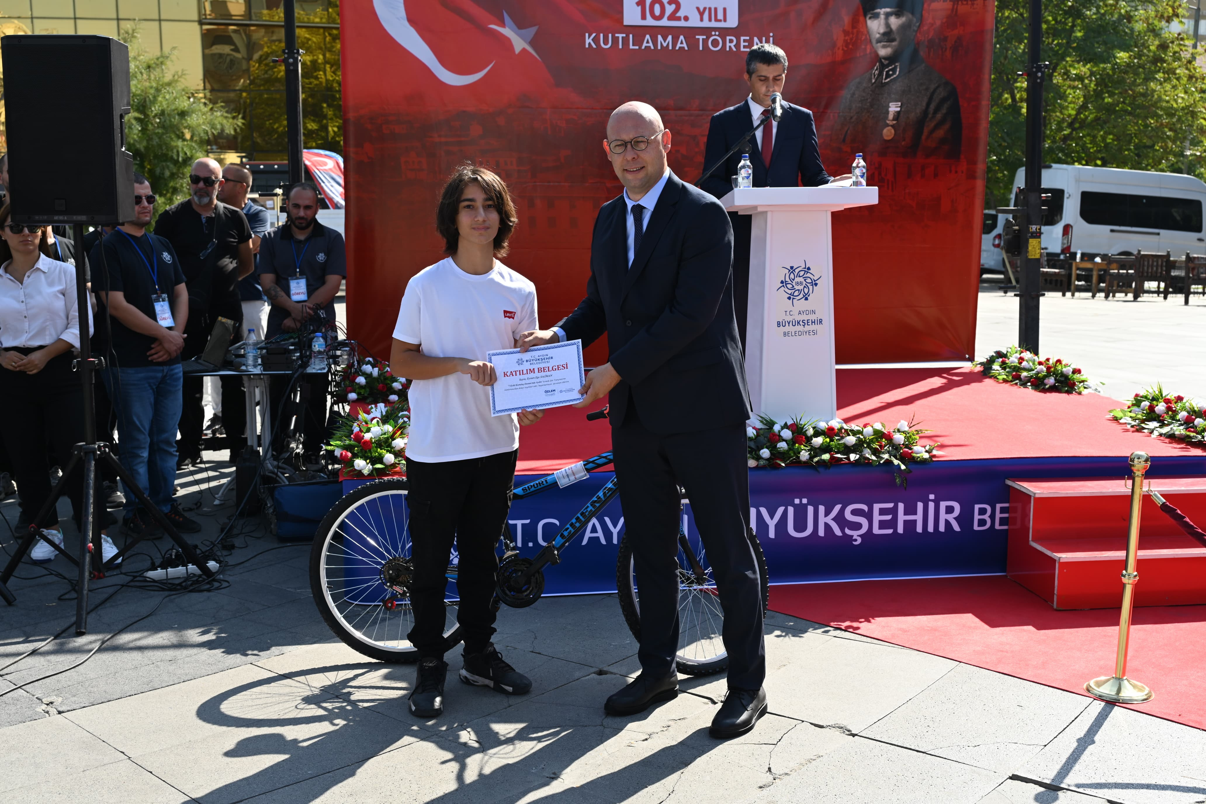 Mersin, bayrak çeken efelere şehir adına hediyelerini takdim etti. Düzenlenen resim, şiir ve kompozisyon yarışmalarında başarılı olarak dereceye giren öğrencilere de hediyeleri Aydın Valisi Yakup Canbolat, Aydın Büyükşehir Belediye Başkan Vekili Polat Bora Mersin ve protokol üyeleri tarafından takdim edildi. Aydın Büyükşehir Belediyesi Konservatuarı bandosu tarafından verilen mini konserin ardından halk oyunları gösterisi büyük bir coşkuyla izlenirken, programın sonunda Vali Canbolat, Başkan Vekili Mersin ve protokol üyeleri Kent Meydanı’nda bulunan şehitlik abidesine karanfil bıraktı.