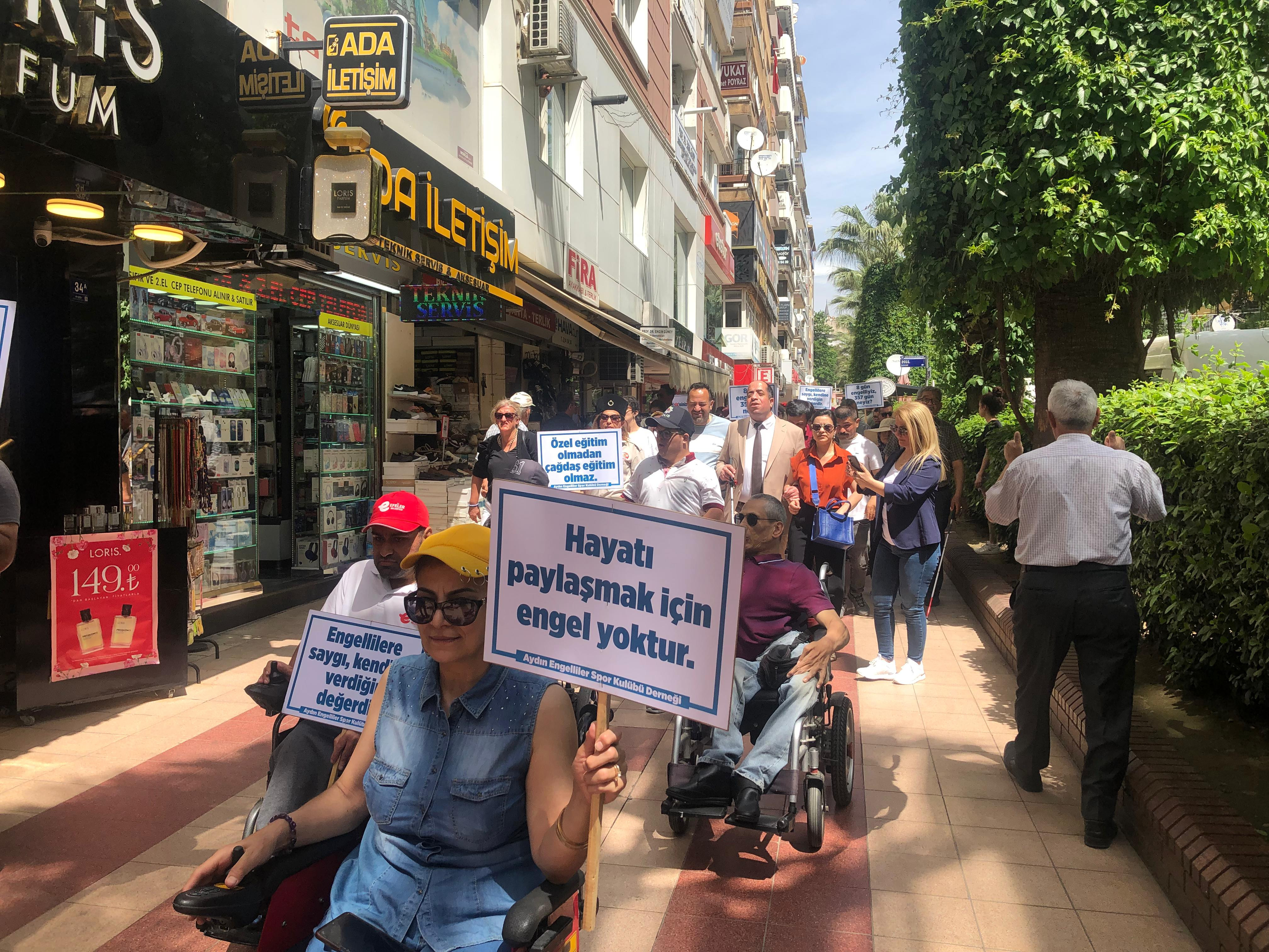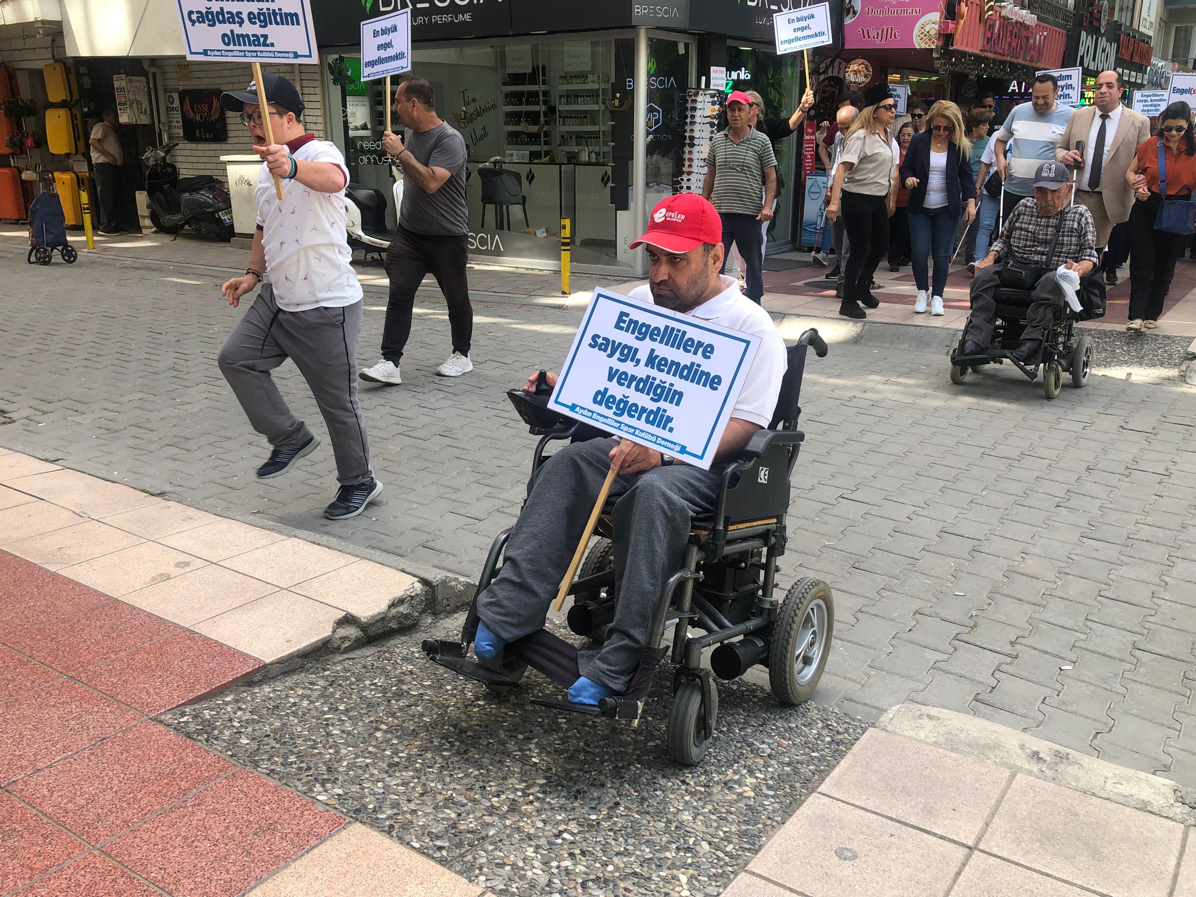 Törenin ardından engelli bireyler, ellerinde pankartlarla Adnan Menderes Bulvarı'nda yürüyüşe geçti. "Engelsiz Bir Yaşam İstiyoruz", "Haklarımız Var, Görmezden Gelmeyin" gibi sloganlar atan engelliler, sorunlarına dikkat çekmek istedi.