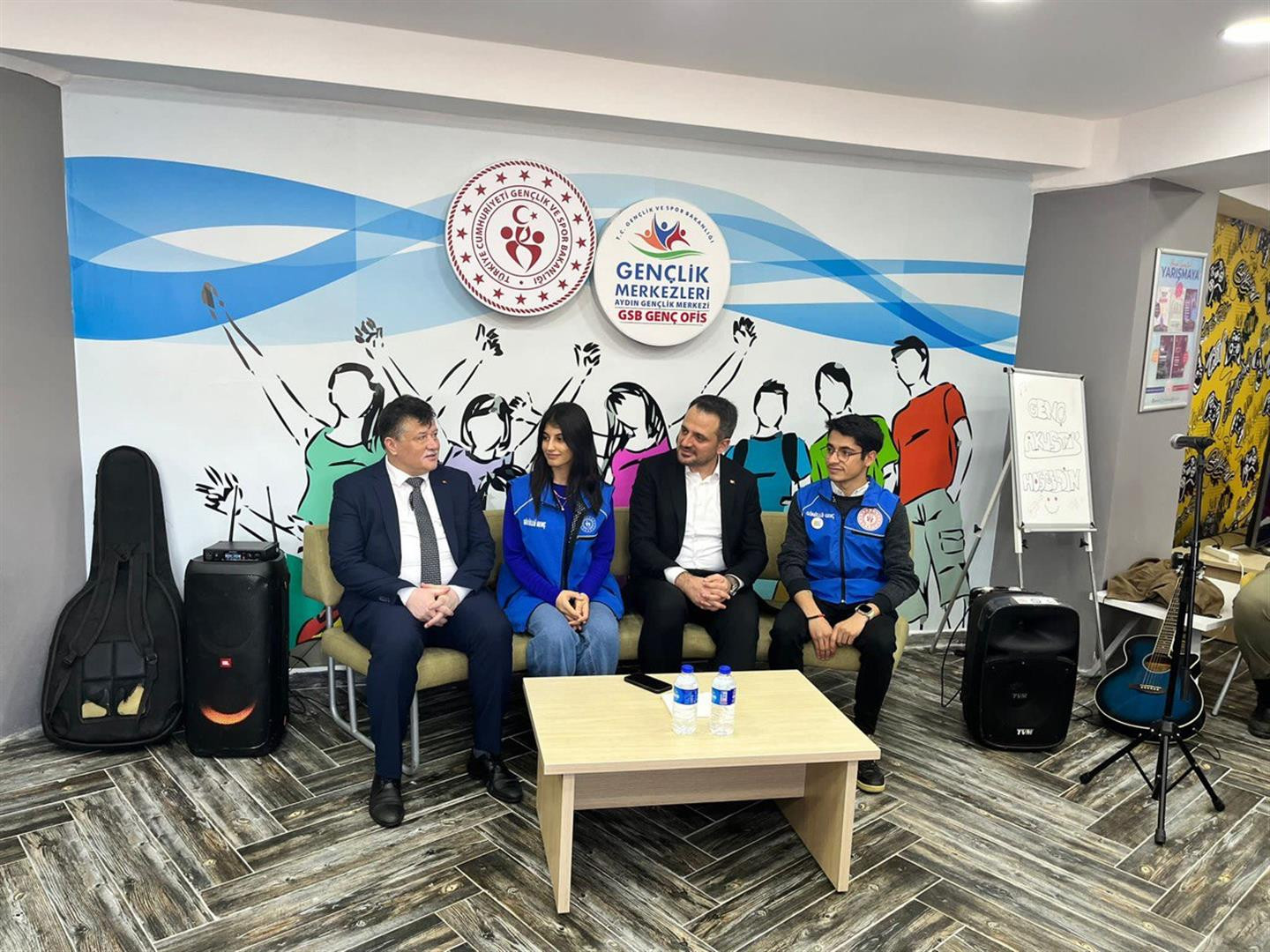 Ardından, Bakan Yardımcısı Dr. Enes Eminoğlu, Aydın Adnan Menderes Üniversitesi (ADÜ) Genç Ofisi’ni ziyaret etti. Genç ofis ziyareti sırasında üniversite gençleriyle samimi bir ortamda bulunan Dr. Eminoğlu, gençlerin düşüncelerini dinleyerek, onların beklenti ve önerilerini değerlendirdi. Üniversite gençleriyle gerçekleştirdiği sohbet, gençlerin sosyal, kültürel ve sportif aktivitelere daha fazla katılımını teşvik etmeyi amaçlayan bir platform sağladı.