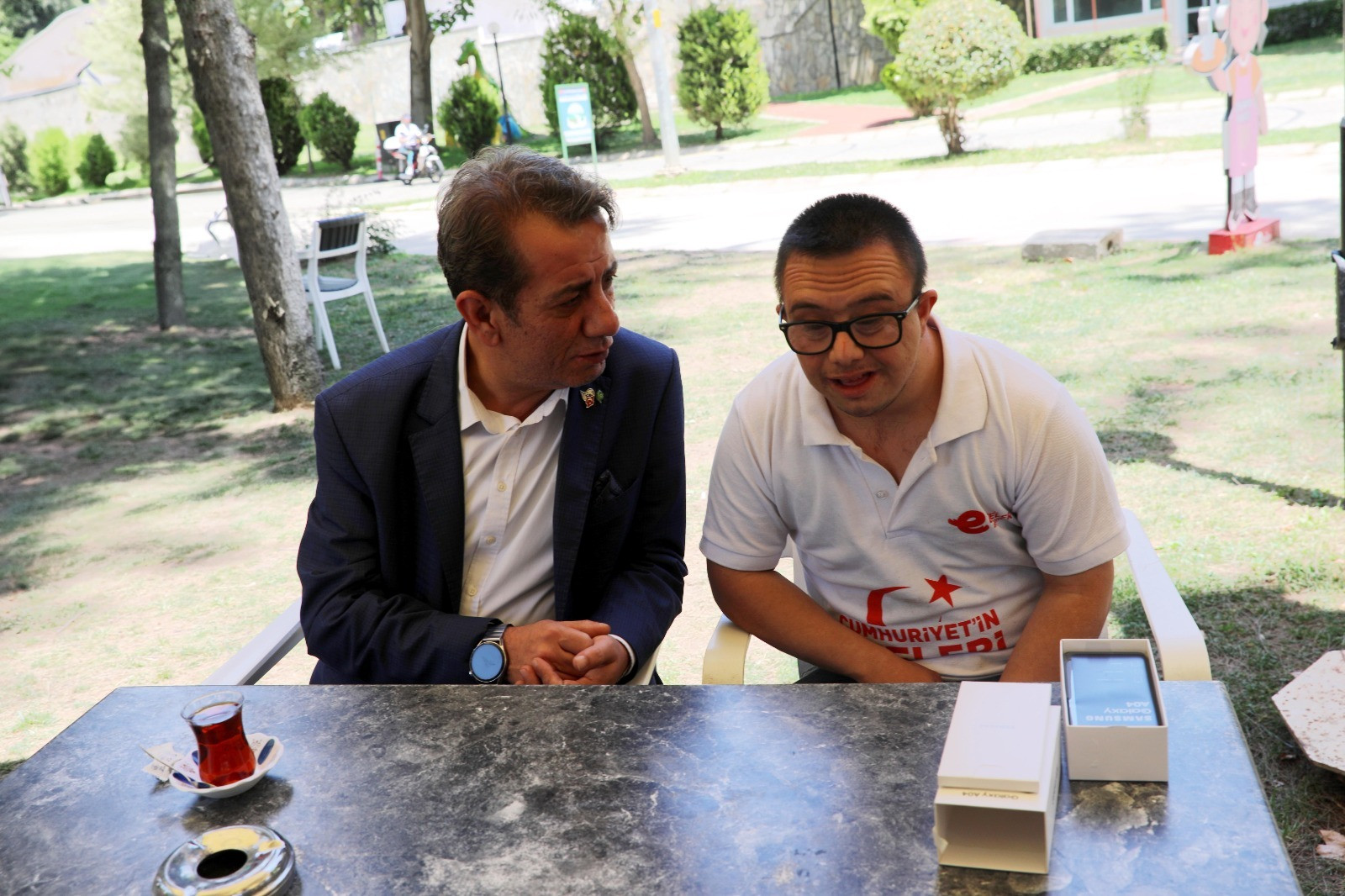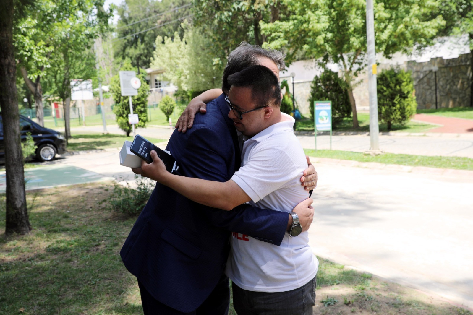 Pınarbaşı Mesire Alanı’nda hizmet veren Down Kafe’de gerçekleşen buluşmada, Başkan Yetişkin, Ozan Çobanoğlu’na istediği akıllı telefonu teslim etti. Ozan, Başkan Yetişkin’i karşısında telefonu ile birlikte görünce büyük bir sevinç yaşadı. Duygusal anların yaşandığı bu buluşmada, Ozan mutluluğunu Başkan Yetişkin’e teşekkür ederek ve sarılarak gösterdi.