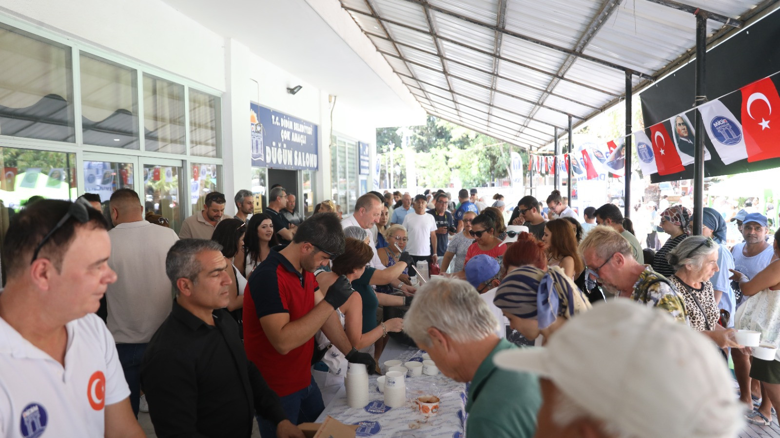 Aşure ikramı, Didim Belediye Düğün Salonu'nda gerçekleştirildi ve etkinliğe kalabalık bir katılım oldu. Belediye Başkanı A. Deniz Atabay, vatandaşlara aşure ikramında bulunarak, etkinliğin anlam ve önemine vurgu yaptı. Didim Belediyesi, böyle anlamlı günlerde vatandaşlarıyla bir araya gelerek kaynaşmayı, dayanışmayı ve paylaşımı ön planda tutuyor.