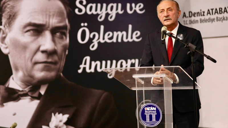 Anma programında konuşma yapan Didim Belediye Başkanı A. Deniz Atabay, “Ulu önderimiz Mustafa Kemal Atatürk’ün aramızdan ayrılışının 85.yılı bugün. Kendisinin de söylediği gibi “Benim naçiz vücudum elbet bir gün toprak olacaktır. Ama yüce Atatürk’ümüzün kurduğu çağdaş, laik Türkiye Cumhuriyetimiz ilelebet payidar kalacak.” dedi.
