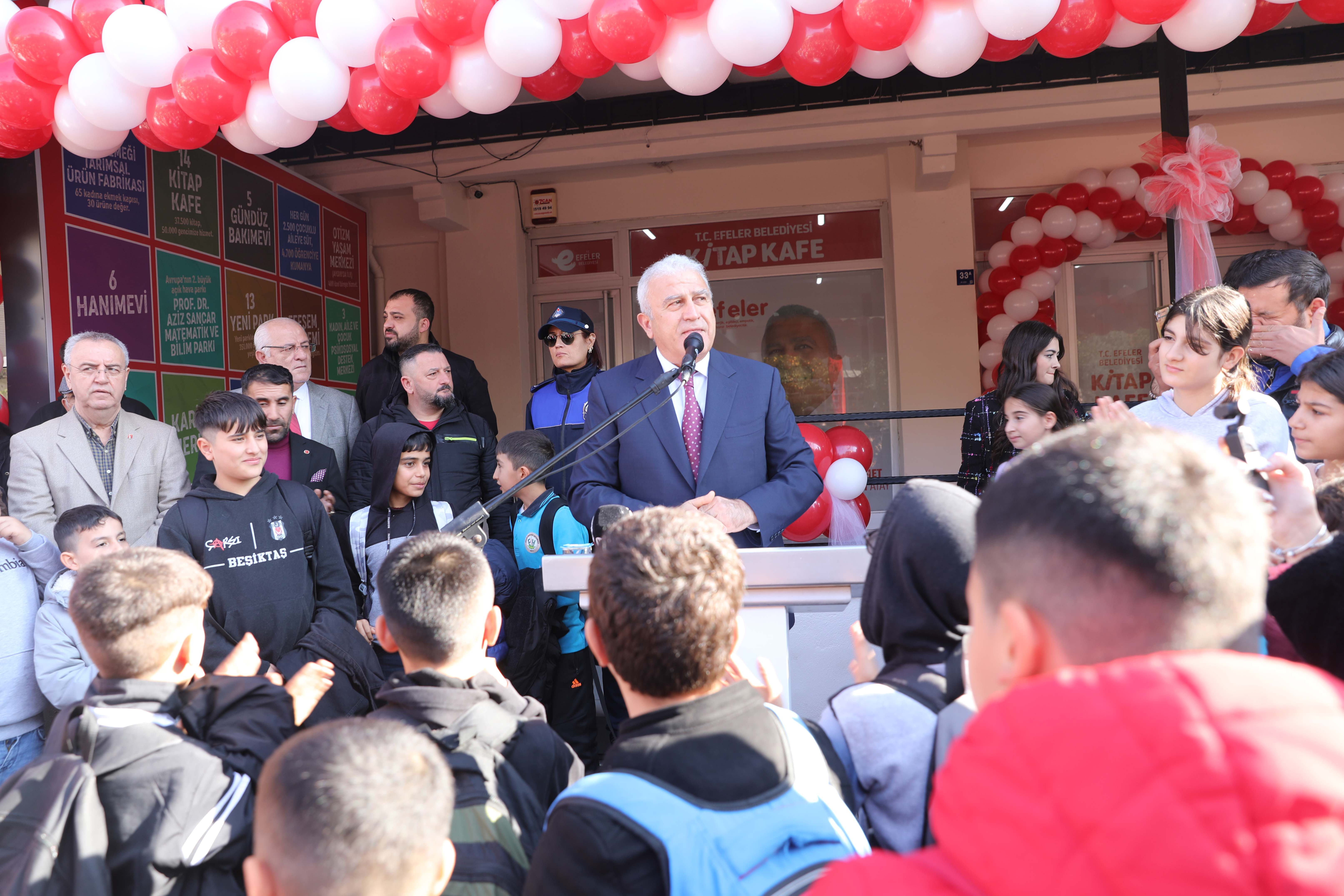 Efeler Belediye Başkanı Mehmet Fatih Atay, eğitimde fırsat eşitliğine katkı sağlamak amacıyla başlattığı projelerden biri olan Kitap Kafeler'in 14'üncüsünü Oveymir Mahallesi'nde düzenlenen bir törenle açtı. Ders çalışma, kitap okuma ve araştırma yapma amacı güden herkesin rahatlıkla kullanabileceği bu mekanlar, şehrin dört bir yanına yayılarak bilgiye erişimi kolaylaştırıyor.