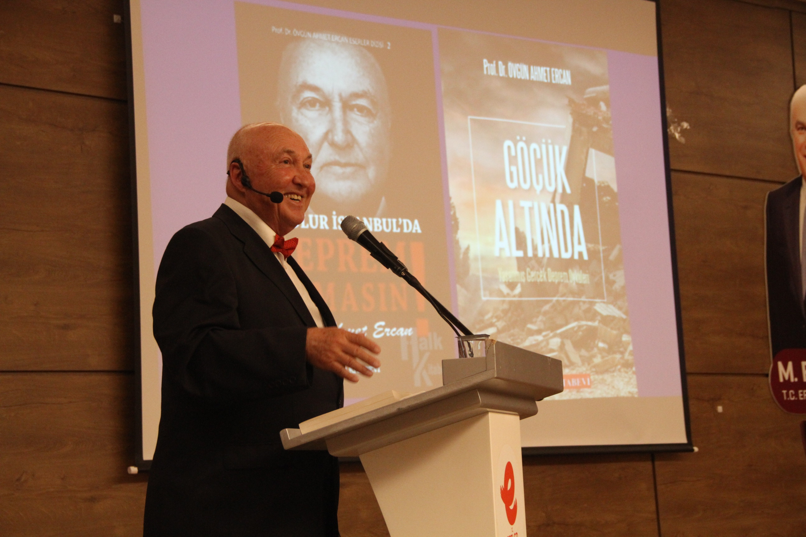 Depremin bazı siyasetçilerin söylemlerinde olduğu gibi ilahi takdir ve kader olmadığını belirten Prof. Dr. Ercan, “Deprem; siyasi, ekonomik ve yönetim sorunudur. Bu sorunlar giderilmedikçe ne yazık ki depremlerde çok kişi hayatını kaybeder” dedi. Aydın’da yaşanabilecek depremler hakkında bilgi veren Ercan, “Aydın deprem bölgesinde yer alıyor ve zemini çok dayanıksız. Aydın’da yaşanabilecek olan depremlerin 7 büyüklüğünde olmasını bekliyoruz. Burada depremler 200 ya da 250 yılda bir oluyor. Efeler’de yapı yüksekliği 6 katı geçmemeli. Yapılaşma tepelik yerlere yönelmeli. Antik çağ şehir yerleşimleri tepelik alanlarda bulunuyor. Aydın’da kuzey- güney yönündeki yapıların sayısı artıyor. Yapılaşma doğu-batı yönünde olmalı” diye konuştu.