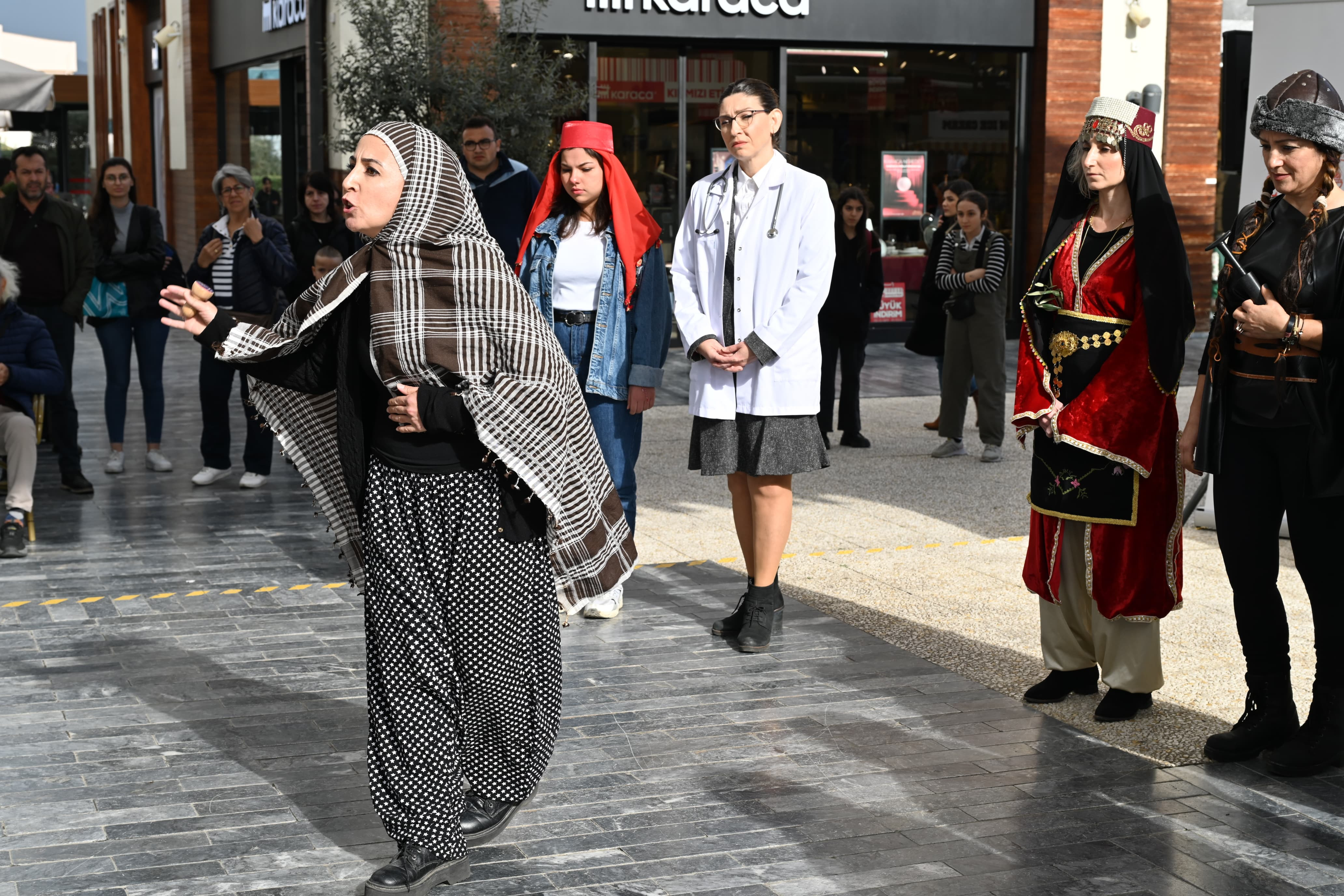 Efeler İlçe Milli Eğitim Müdürlüğü tarafından düzenlenen "Ben Türk Kadını" adlı tiyatro gösterisi, 8 Mart Dünya Kadınlar Günü'nde Aydın Forum AVM Amfi Meydanı'nda renkli bir kutlamaya ev sahipliği yaptı. Gösteri, kadınların güçlü, özgür ve başarılı kimliklerini vurgulayarak toplumsal cinsiyet eşitliği ve kadın haklarına önemli bir vurgu yaptı. Sahnedeki etkileyici performanslar, izleyicilere kadınların tarih boyunca ve kültürler arasında nasıl önemli bir rol oynadığını hatırlattı ve kadınların toplum içindeki yerini güçlendirmeyi amaçladı.