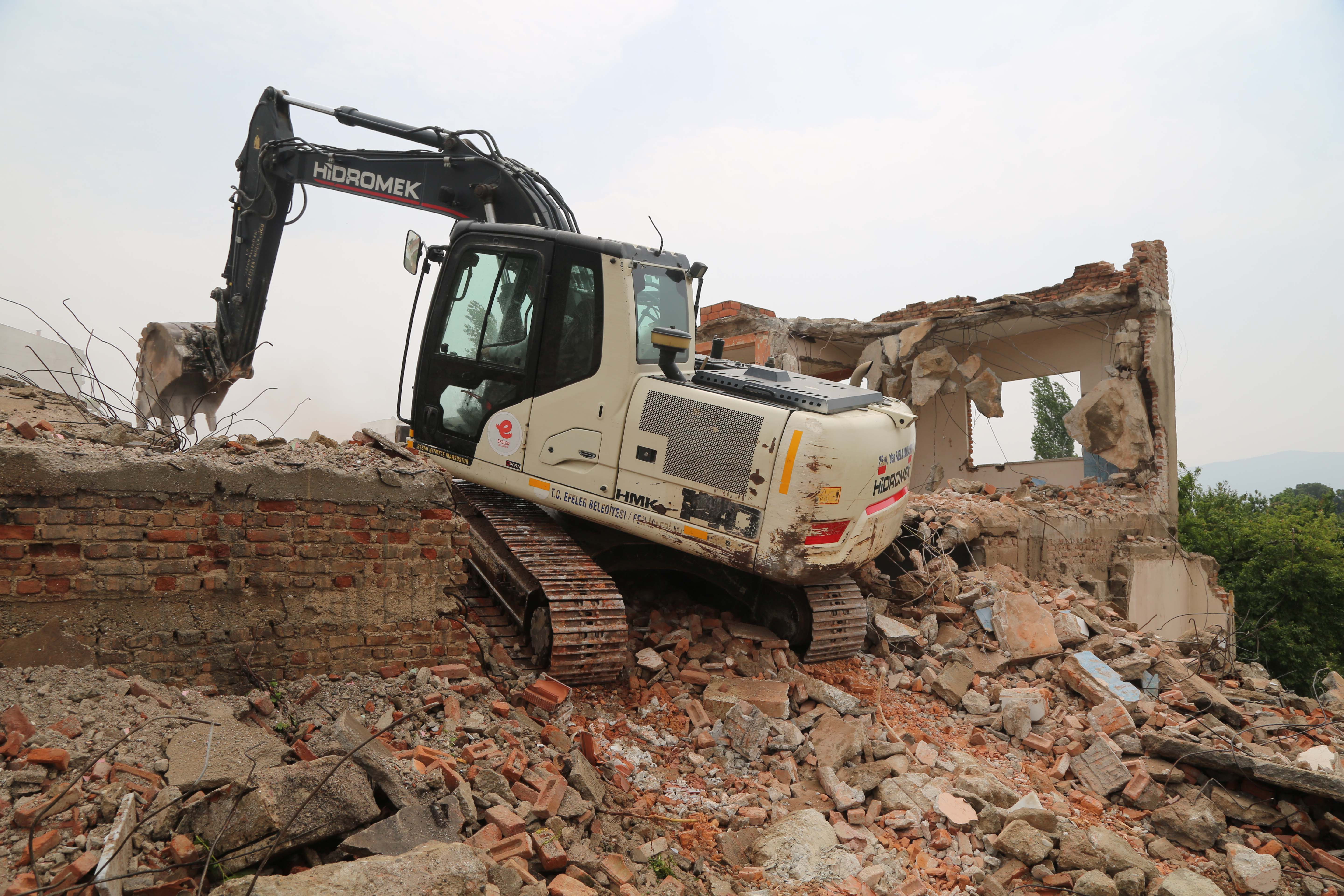 Efeler Belediyesi Fen İşleri Müdürlüğü ekipleri, Umurlu Mahallesi’ndeki metruk bir binanın yıkımını gerçekleştirerek bölgeyi güvenli hale getirdi.