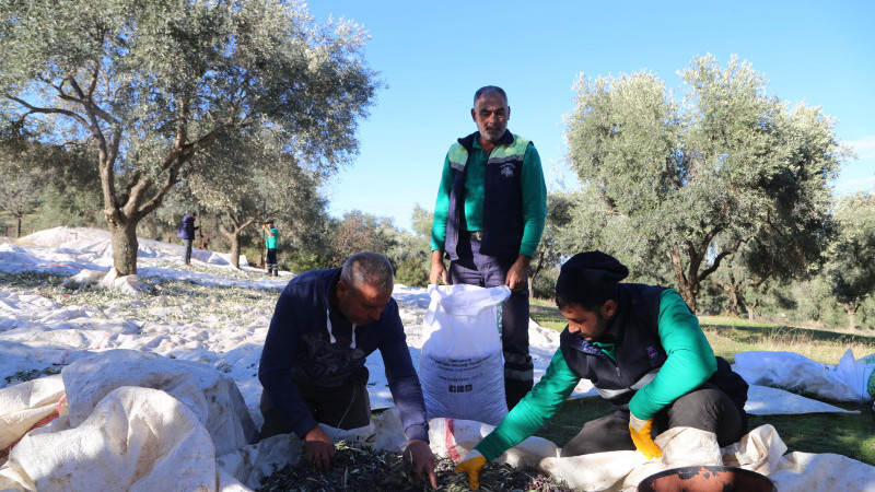 Efeler Belediyesi sorumluluk alanındaki park, bahçe ve yeşil alanlarda yetişen zeytinlerin hasadına başladı.