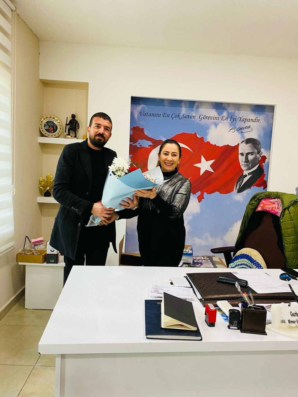 Fatih Mahallesi Muhtar Adayı Ferdi Pektaş, 8 Mart Dünya Emekçi Kadınlar Günü dolayısıyla Efeler Muhtarlar Derneği Başkanı ve Mimar Sinan Mahalle Muhtarı Gurbet Çamoğlu'nu ziyaret ederek çiçek takdim etti.