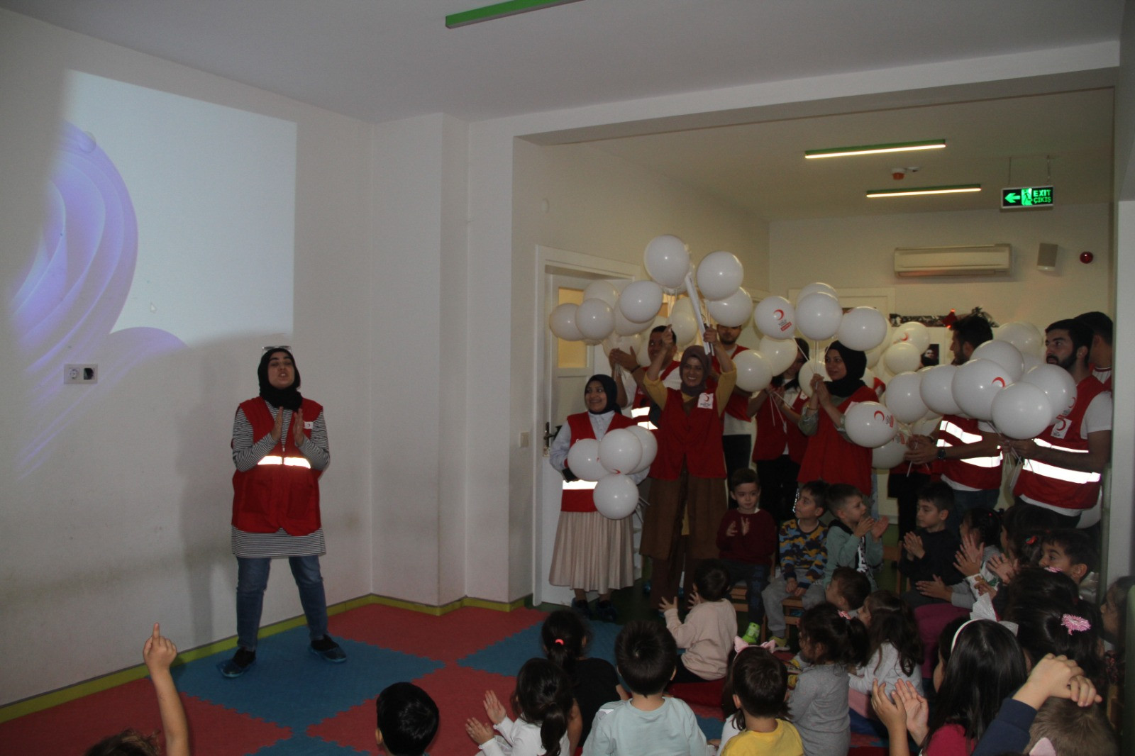 Etkinlik, Aydın Tekstil Park Alanı içinde bulunan Elma Şekerleri Çocuk Gelişim Kulübü'nde gerçekleşti. Genç Kızılay gönüllüleri, çocuklara Kızılay ile ilgili animasyonlar izletip, hem eğlenceli hem de öğretici bir atmosfer yarattılar. Bu etkinlikle, çocuklar, iyilik, paylaşma, yardımseverlik ve dayanışma gibi değerlerin kalıcı olarak öğrenilmesine katkı sağlandı.