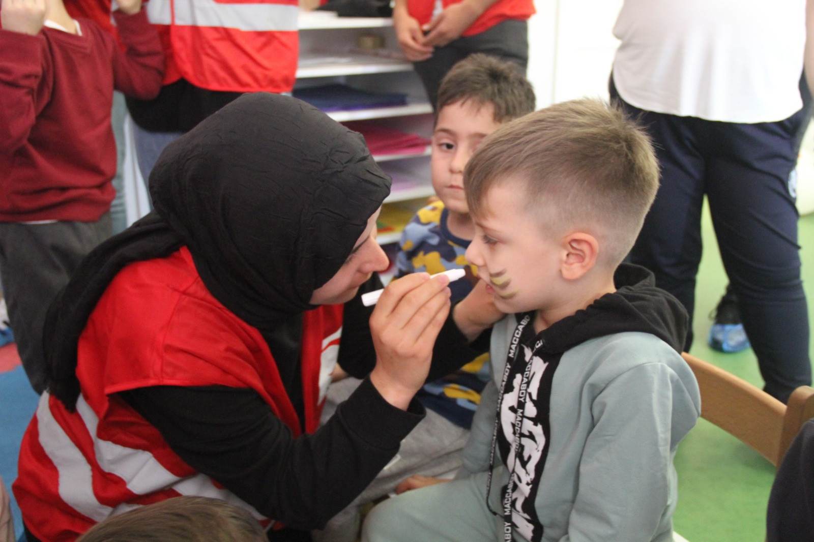 Eğlencenin doruk noktası yüz boyama faaliyetiydi. Çocuklar, istedikleri şekillerde yüzlerini boyatıp kendi hayal dünyalarına renk kattılar. Ardından gelen sürpriz ise Kızılay balonlarıydı. Çocuklar, bu renkli balonları sevinçle kabul ederken, Kızılay Haftası kutlamasını coşkuyla tamamladılar.