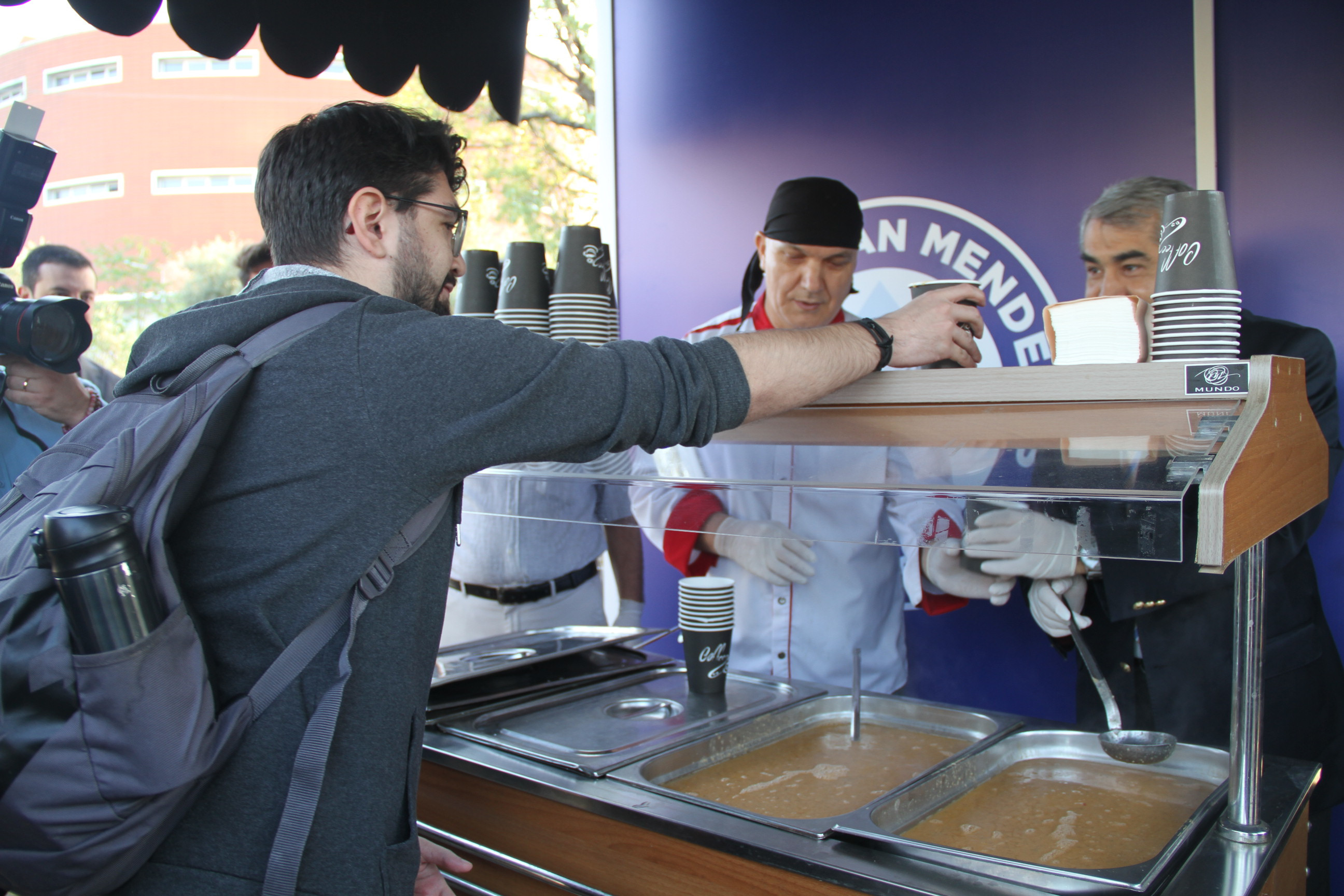 Aydın Adnan Menderes Üniversitesi (ADÜ), öğrencilere yönelik düzenlediği sıcak çorba ikramı etkinliği ile birlik ve beraberlik mesajı verdi. 6 Ekim 2023 tarihinde Tıp Fakültesi Kantini önünde gerçekleşen etkinliğe, Üniversite yönetimi, Rektör Prof. Dr. Bülent Kent, Rektör Yardımcıları Prof. Dr. Cemal İyem ve Prof. Dr. Nuh Kılıç, Genel Sekreter V. Doç. Dr. Bertan Akyol, Rektör Danışmanı Dr. Öğr. Üyesi Ahmet Fatih Hacıyusufoğlu ile birlikte akademik ve idari personel ile öğrenciler yoğun ilgi gösterdi.