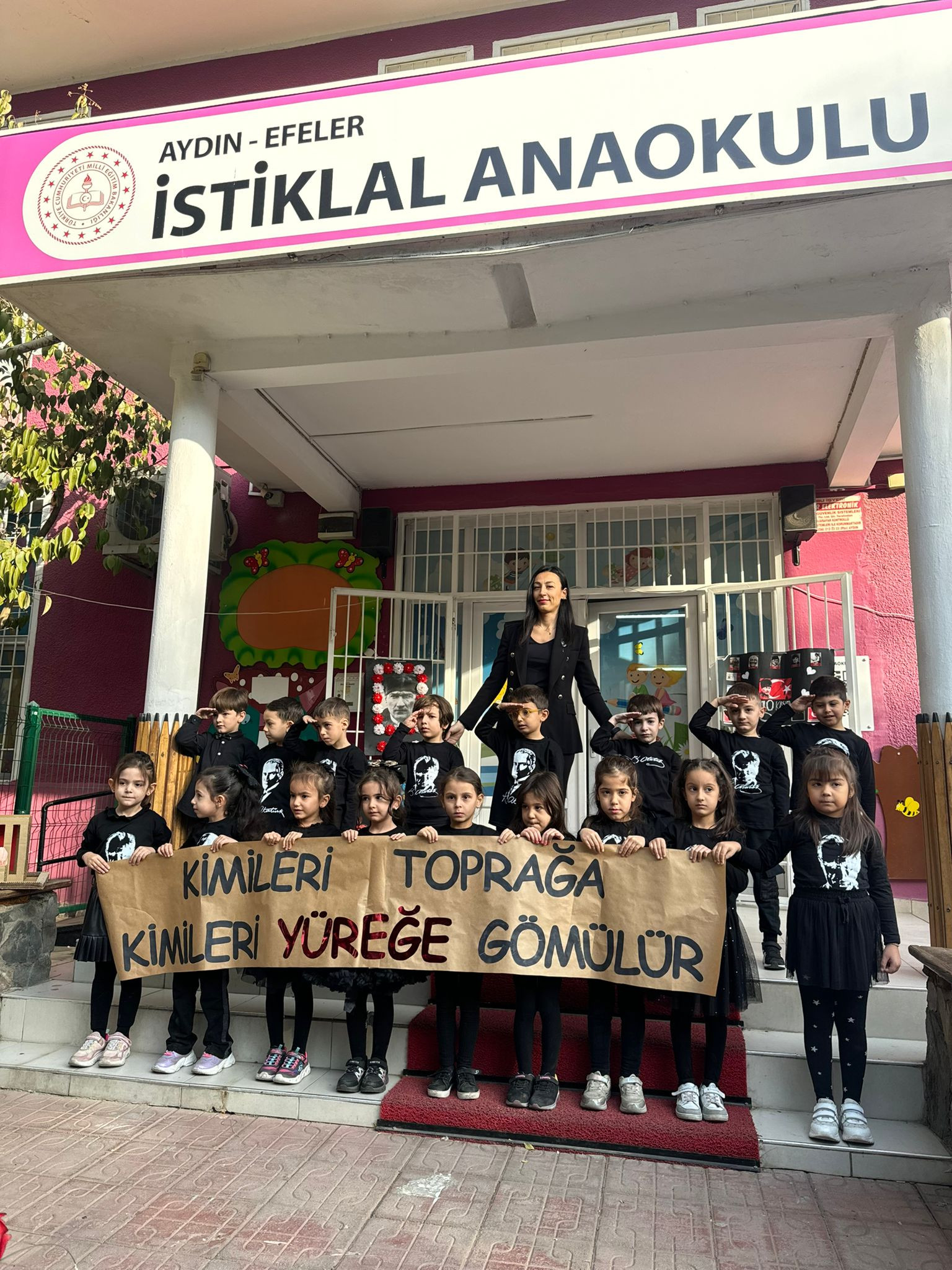 İstiklal Anaokulu öğrenciler ve öğretmenleri, 10 Kasım’da Gazi Mustafa Kemal Atatürk’ü anmak için anlamlı bir tören düzenledi. Tören, İstiklal Marşı’nın okunması ve okul müdürünün anlamlı konuşmasıyla devam etti.